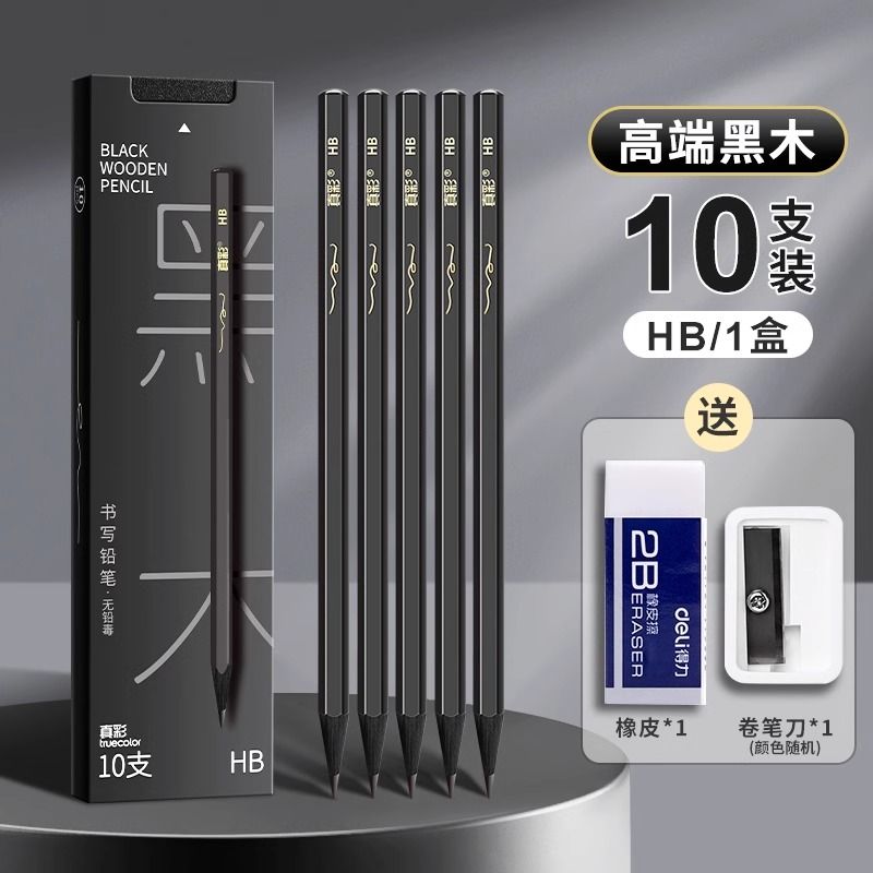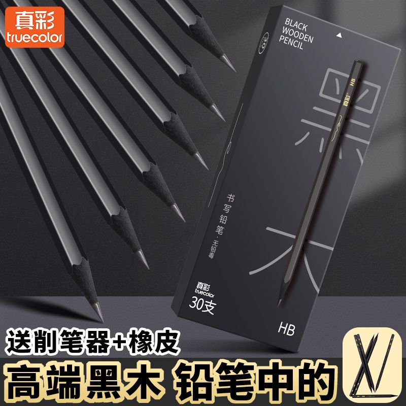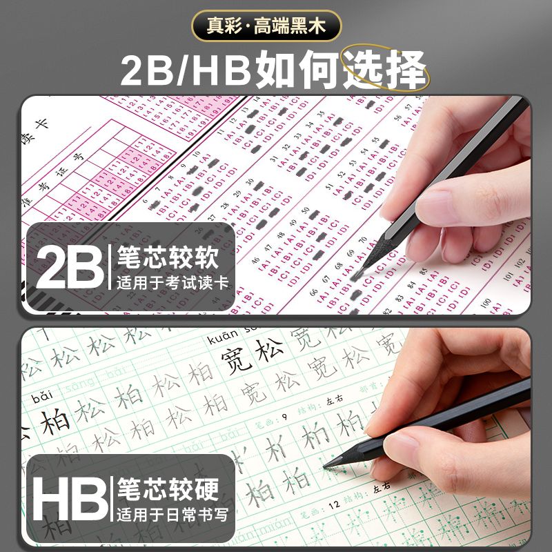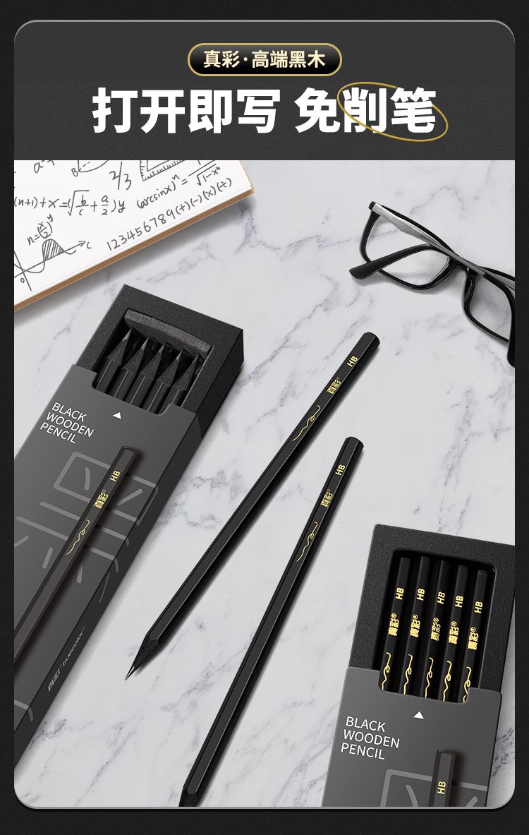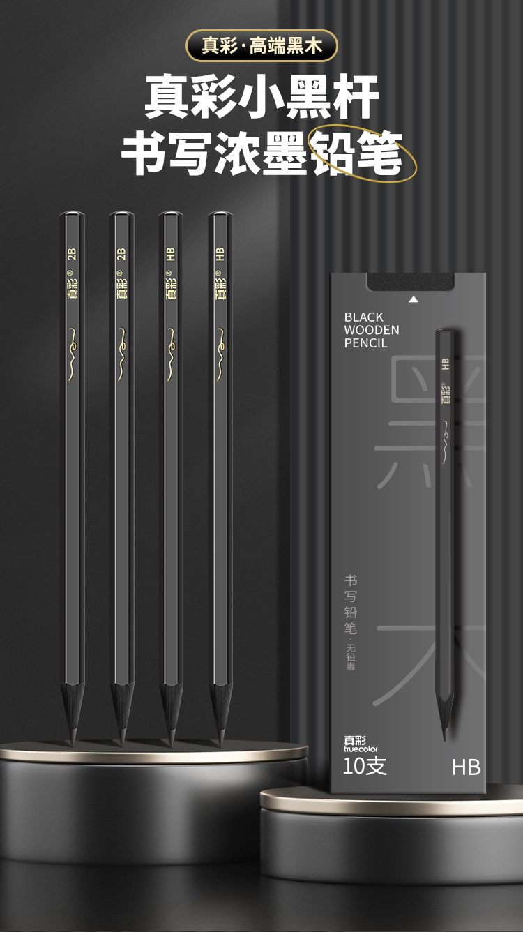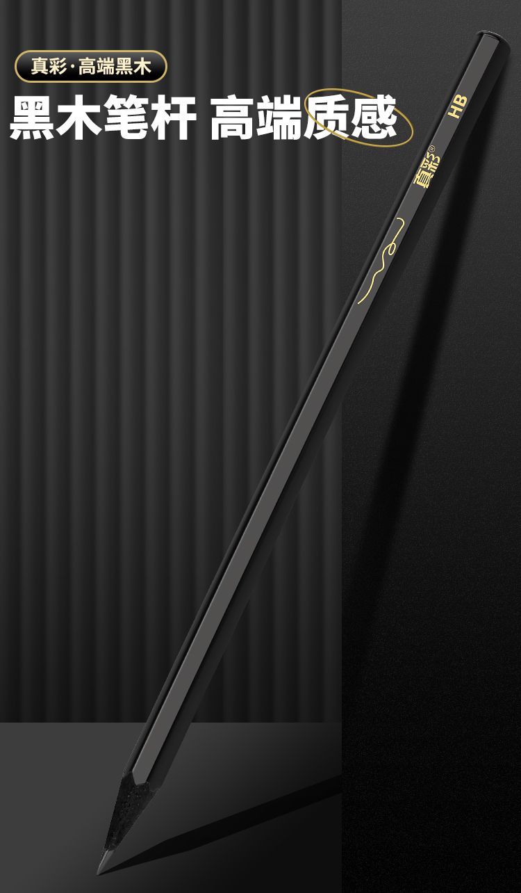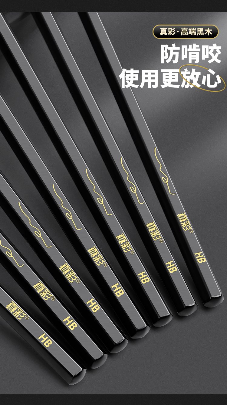 真彩高端黑木铅笔小学生一二年级写字画图耐用考试涂卡黑色铅笔