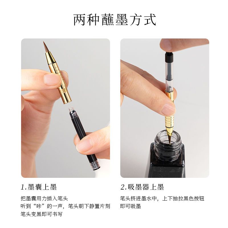 莫兰迪新款钢笔式毛笔小楷书法笔便携式墨囊可加墨毛笔软笔秀丽笔