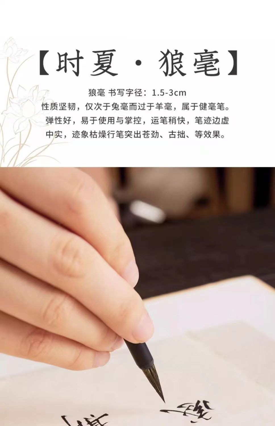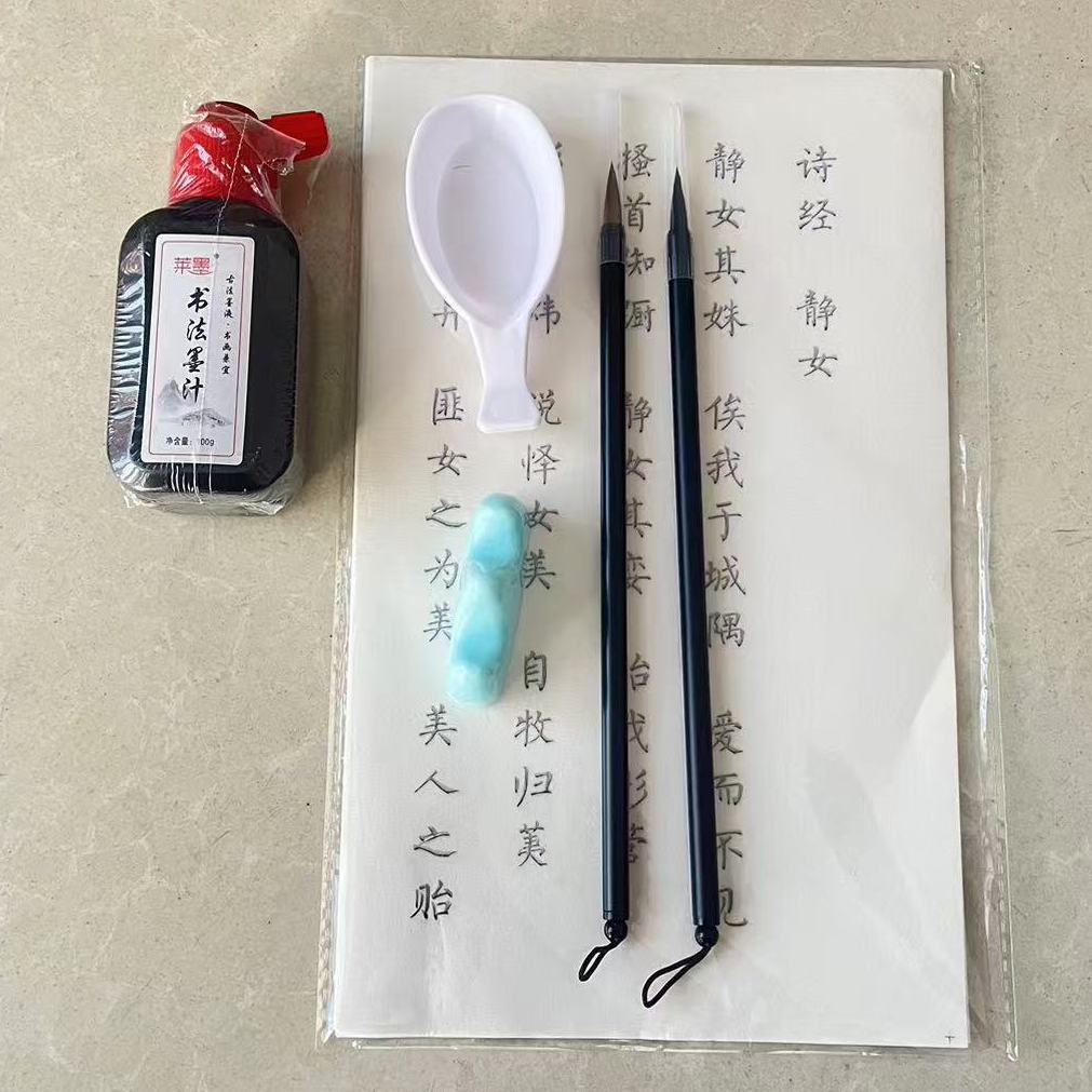 | 狼毫套装【笔+墨汁+墨蝶+笔架+字帖10张】 | USD $5.06 | 999999 piece available |