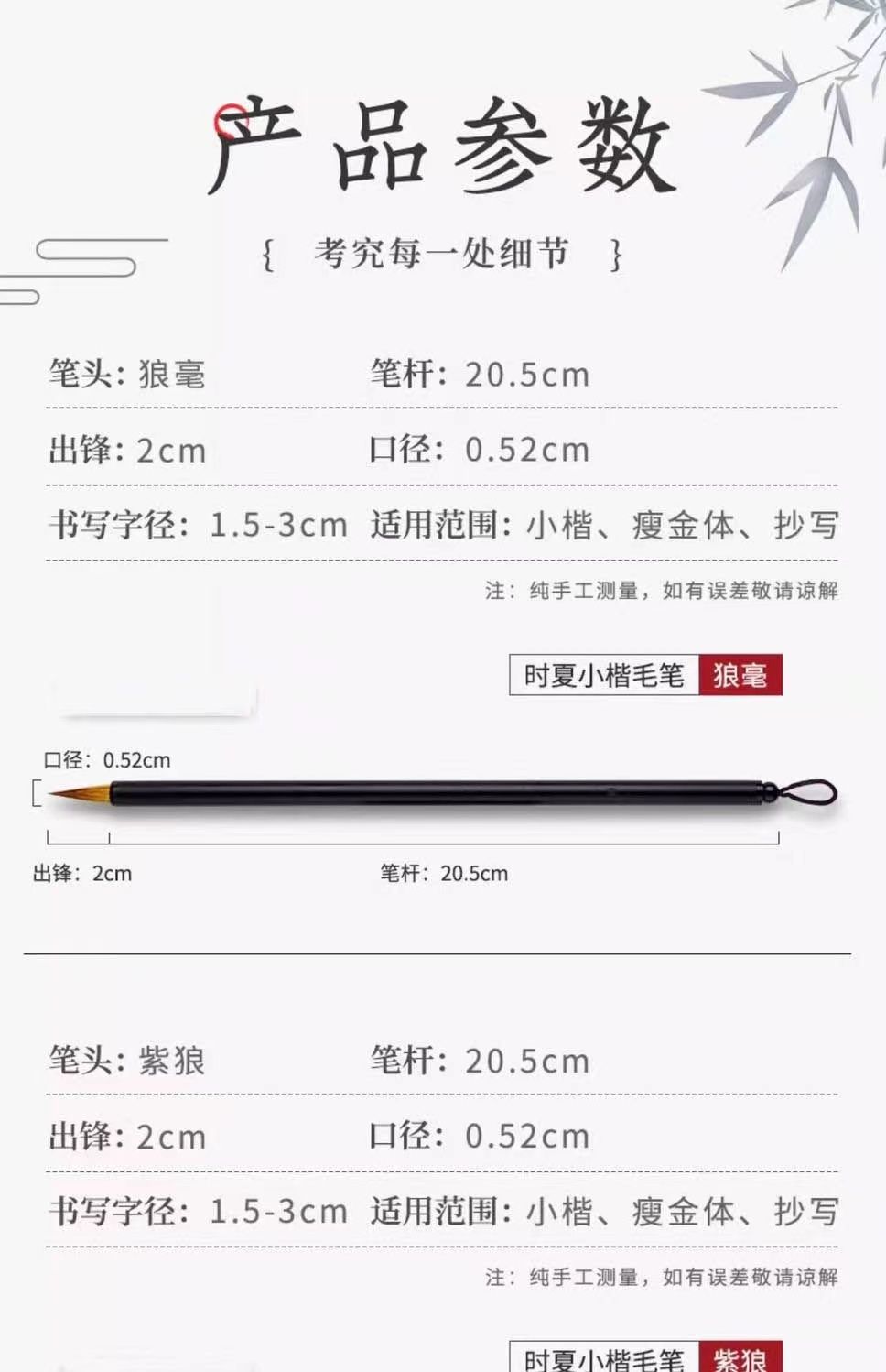 时夏小楷毛笔新款书法专用初学者入门成人正品紫狼毫簪花小号湖笔