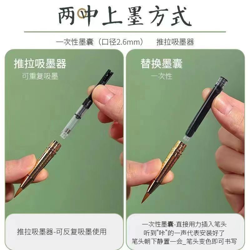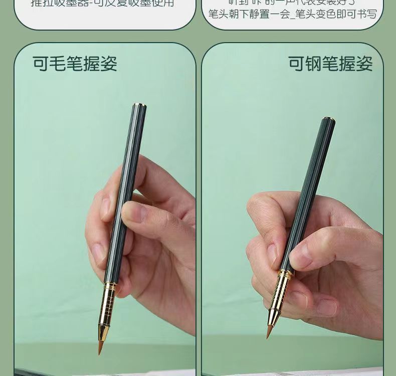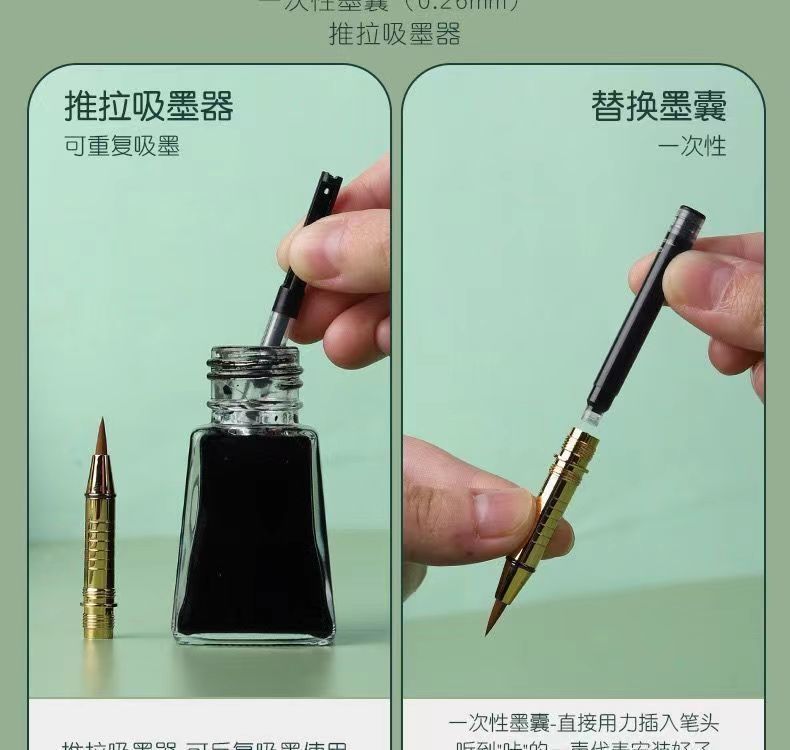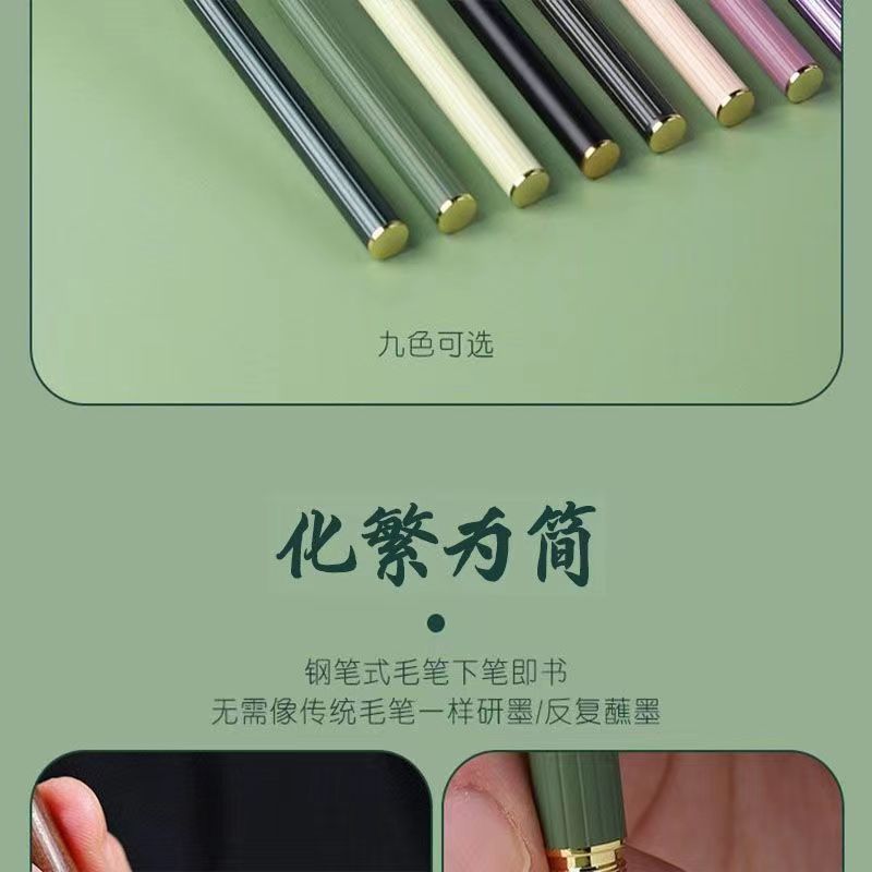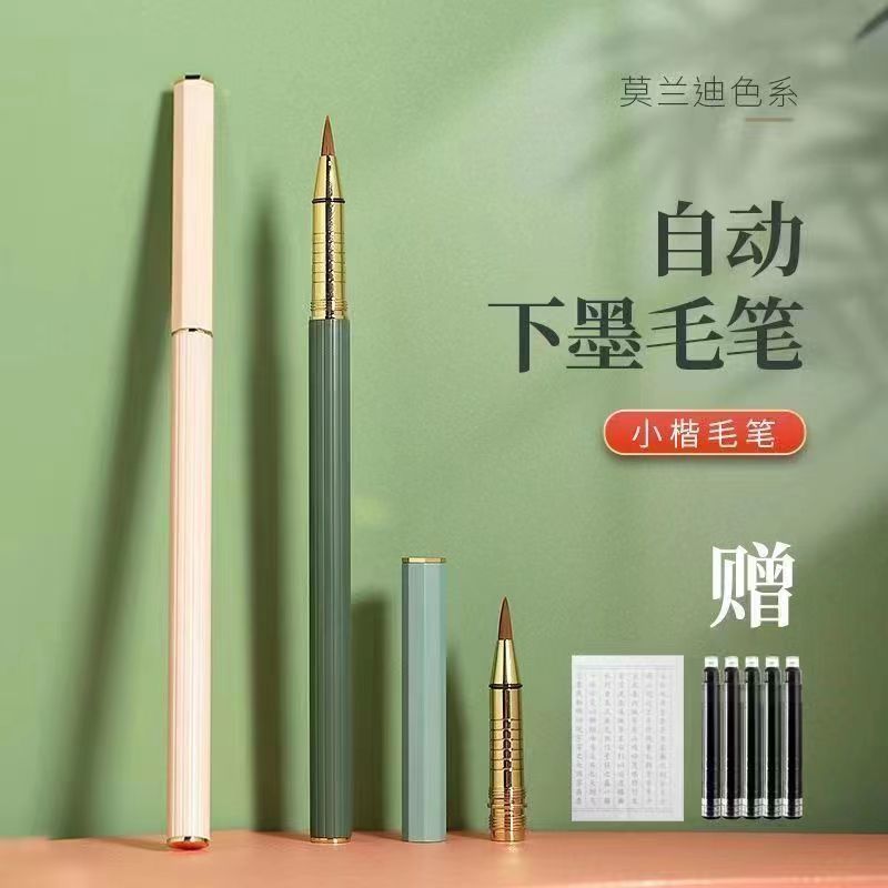 新款莫兰迪钢笔式毛笔小楷抄字书法笔便携式可加墨毛笔软笔秀丽笔