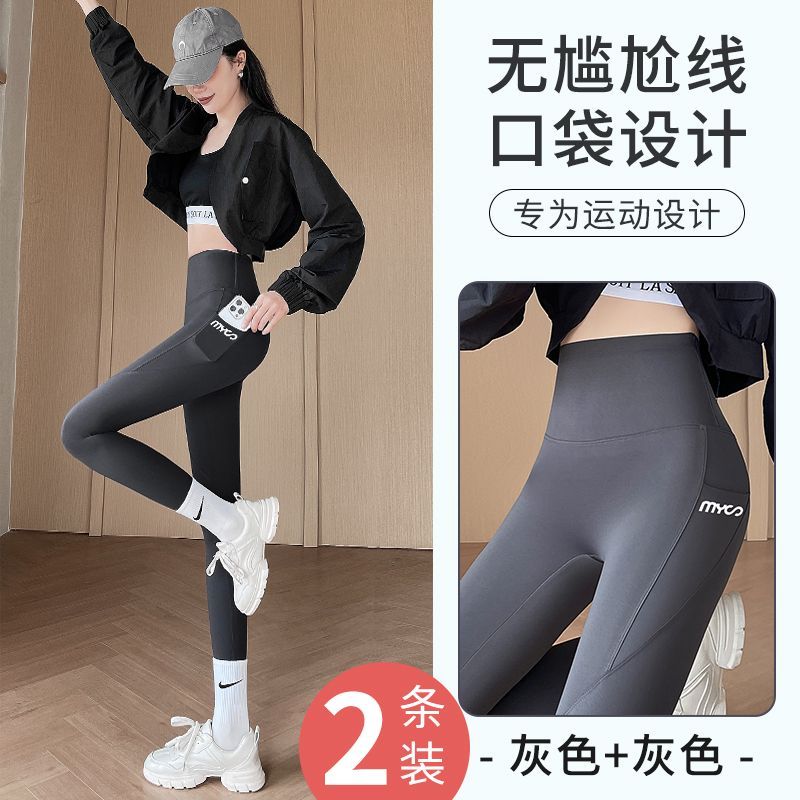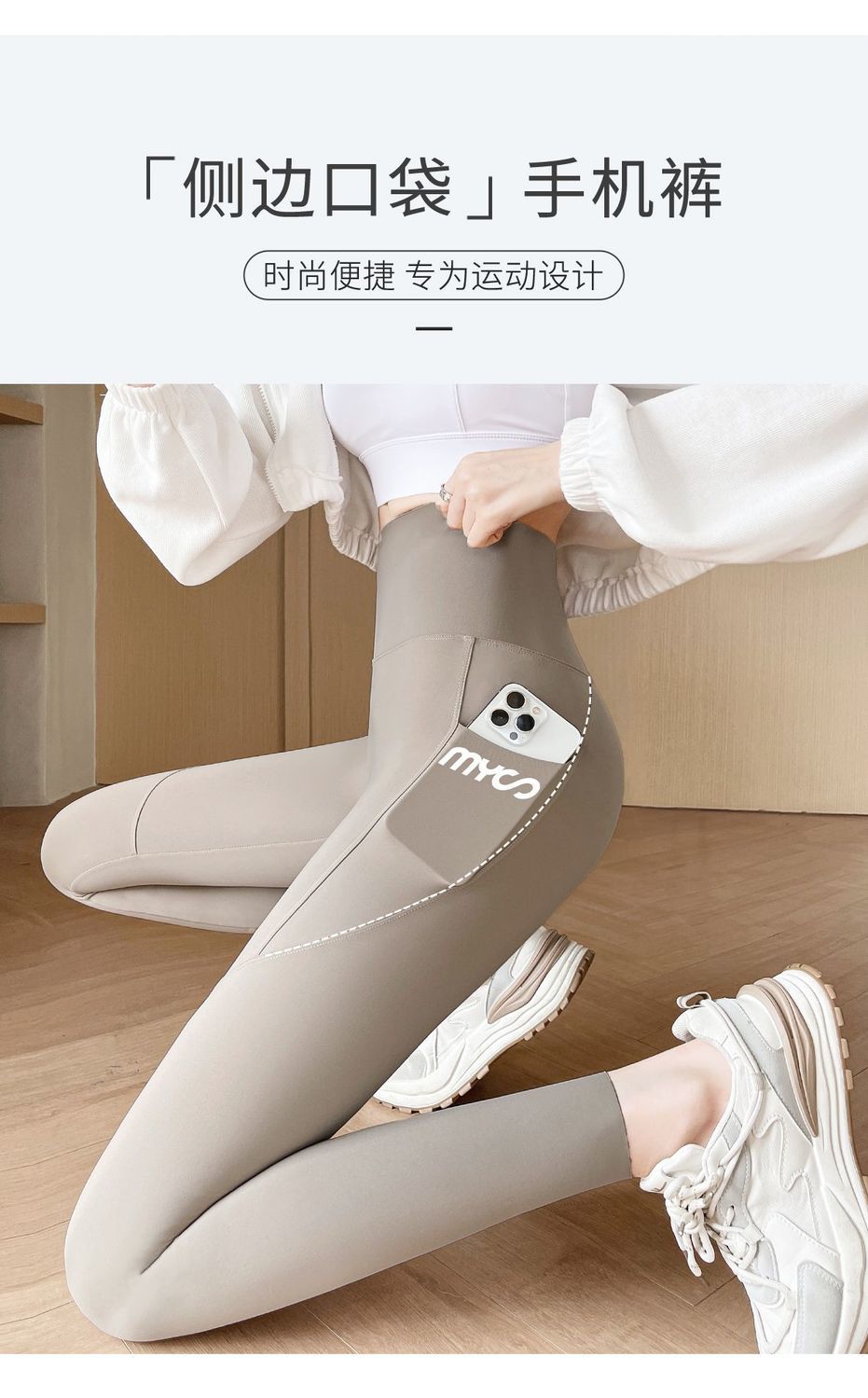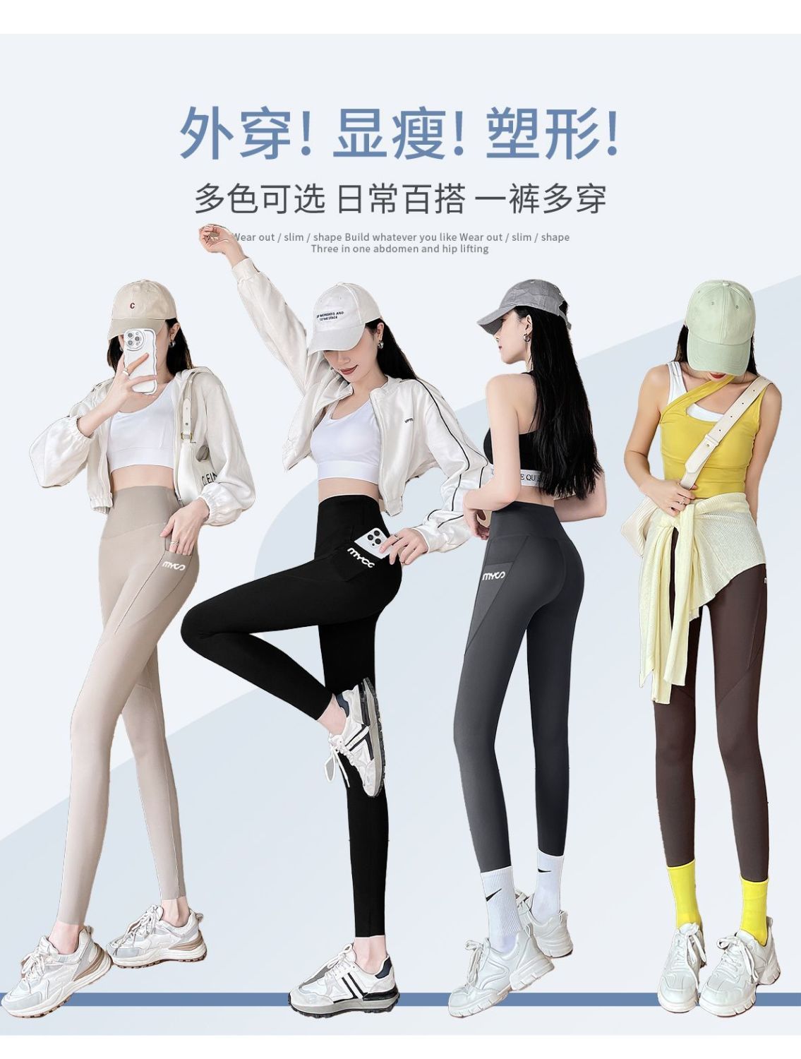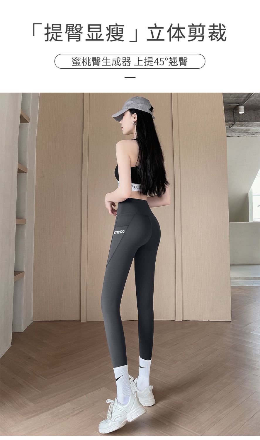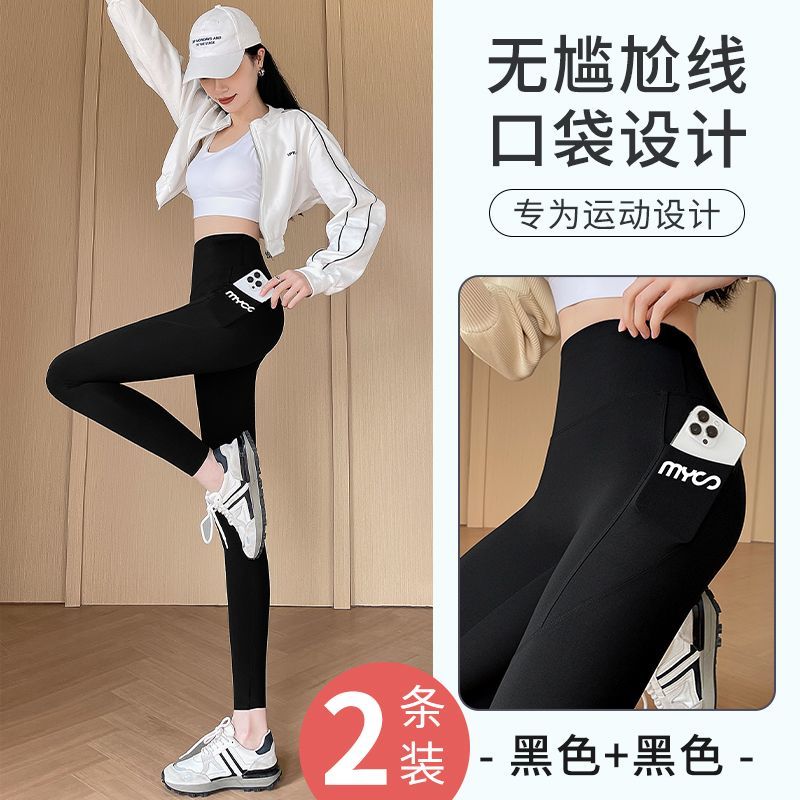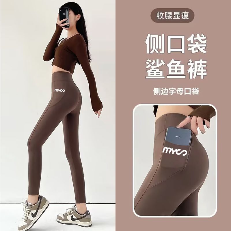 侧边口袋鲨鱼裤女外穿春秋季薄款2023高腰运动紧身瑜伽芭比打底裤