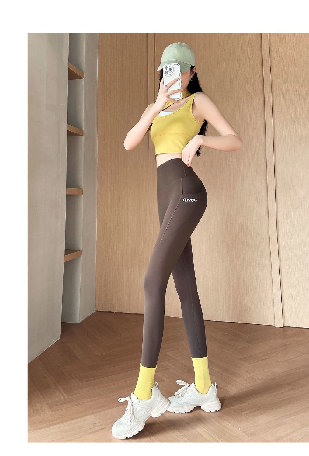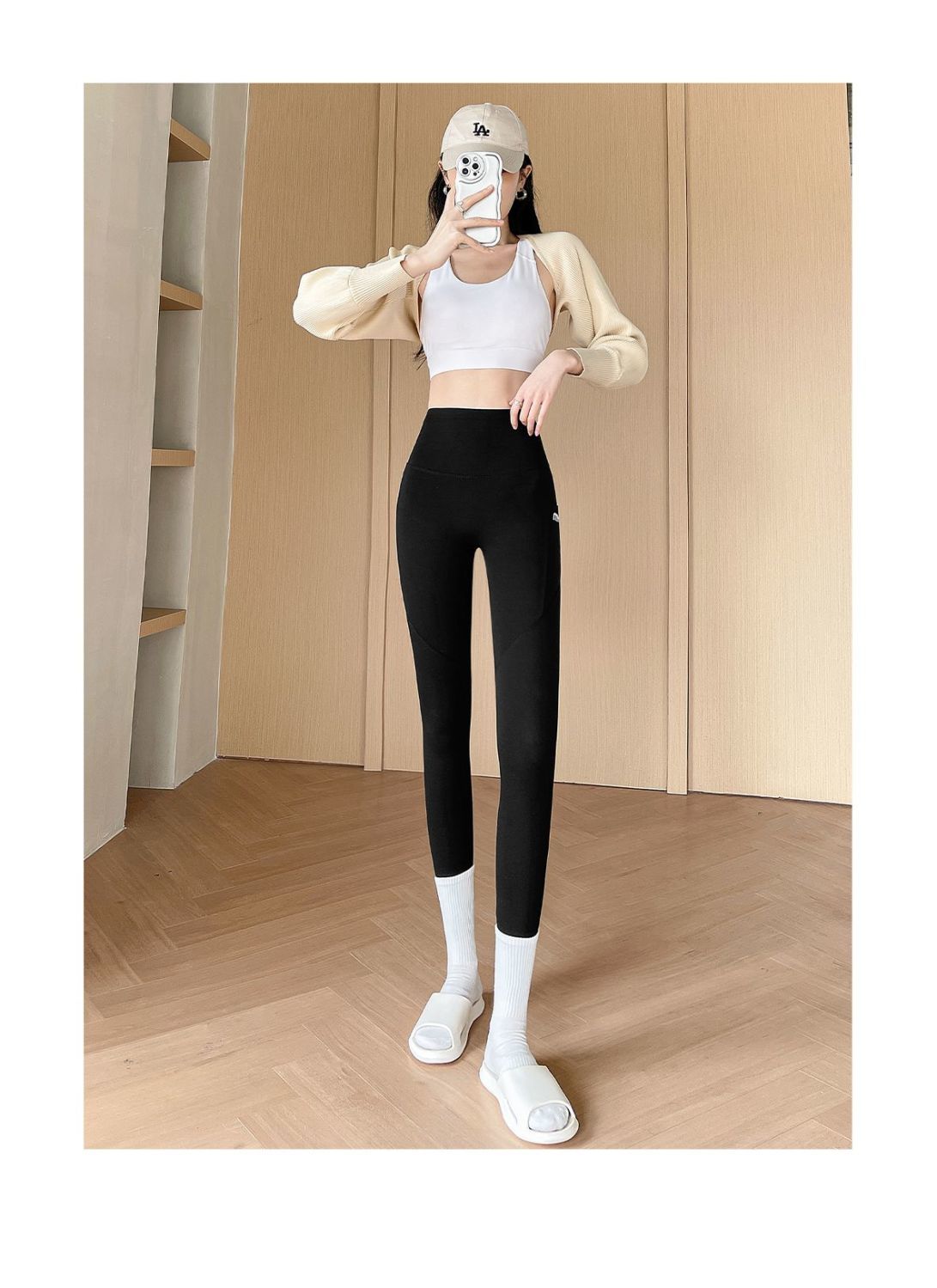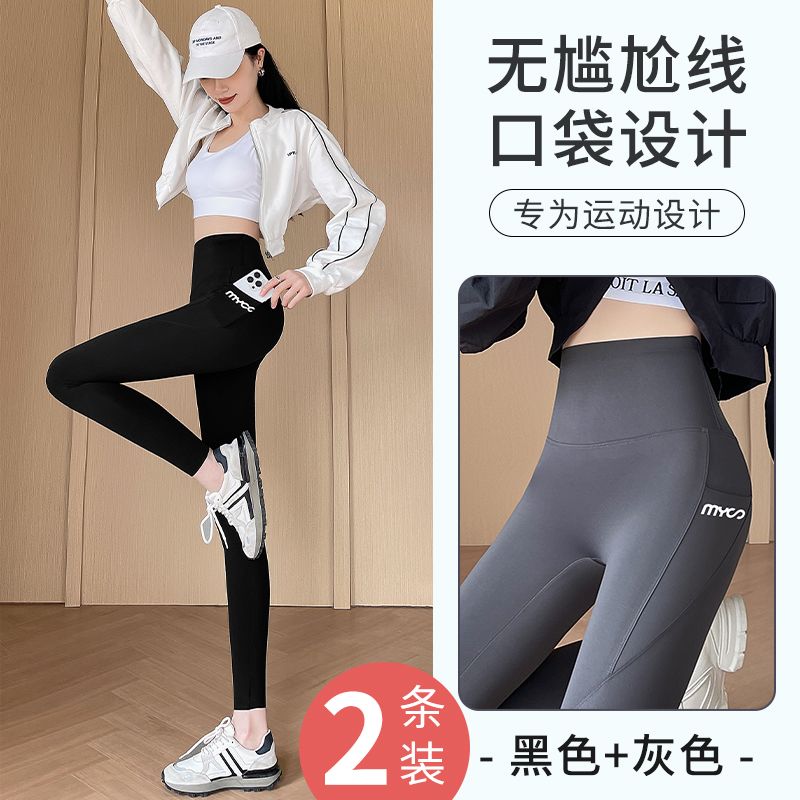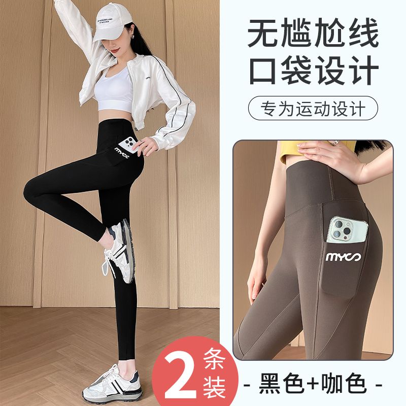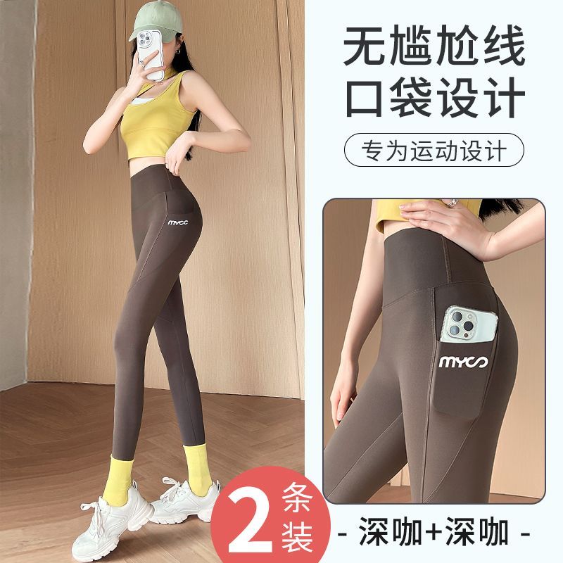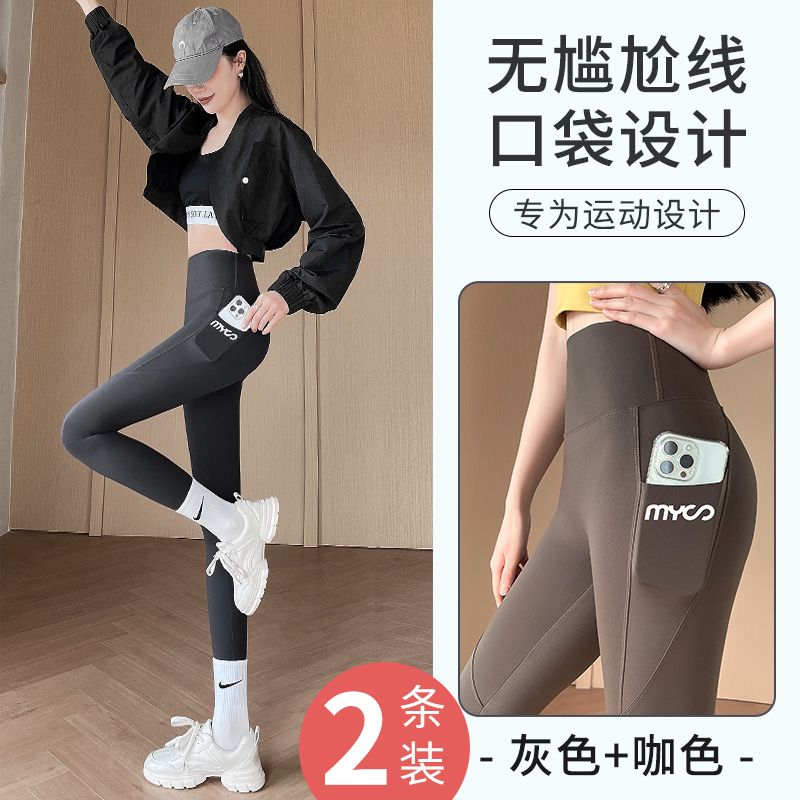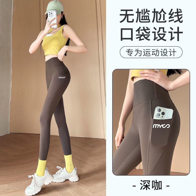 侧边口袋鲨鱼裤女外穿春秋季薄款2023高腰运动紧身瑜伽芭比打底裤