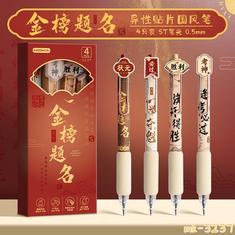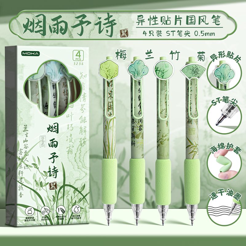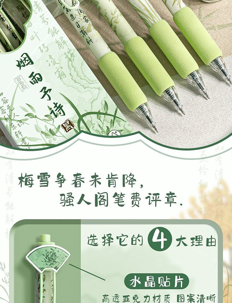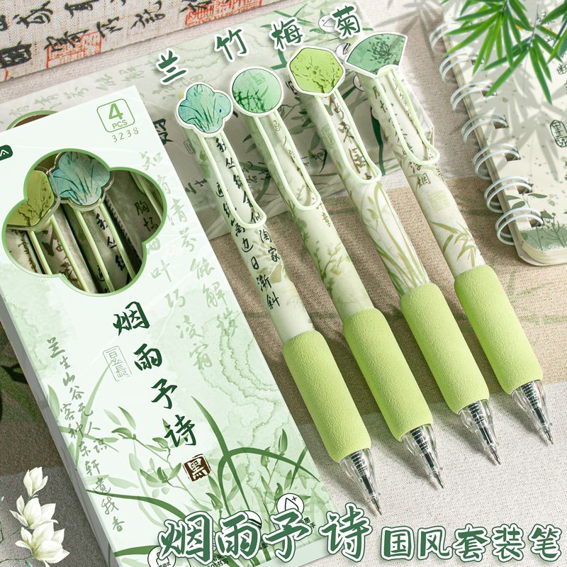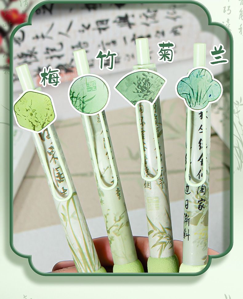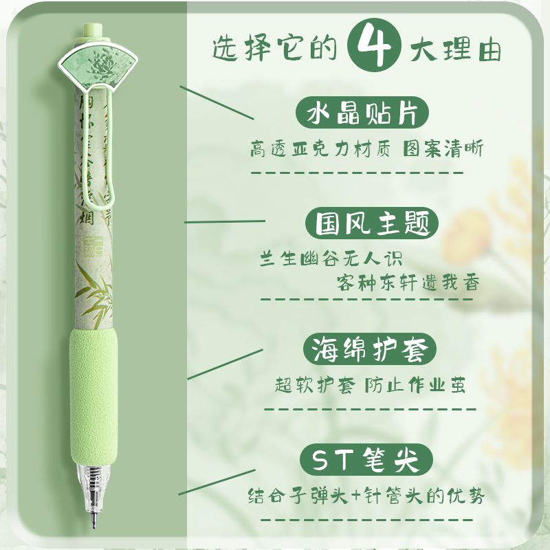 创意国风按动式中性笔学生文具ins高颜值顺滑笔0.5mm考试用绵绵笔