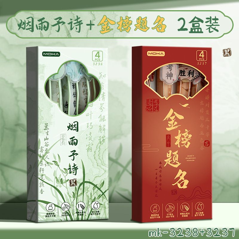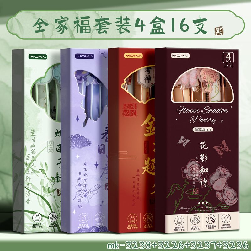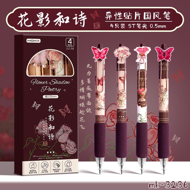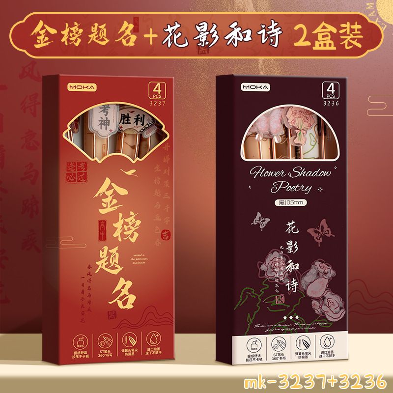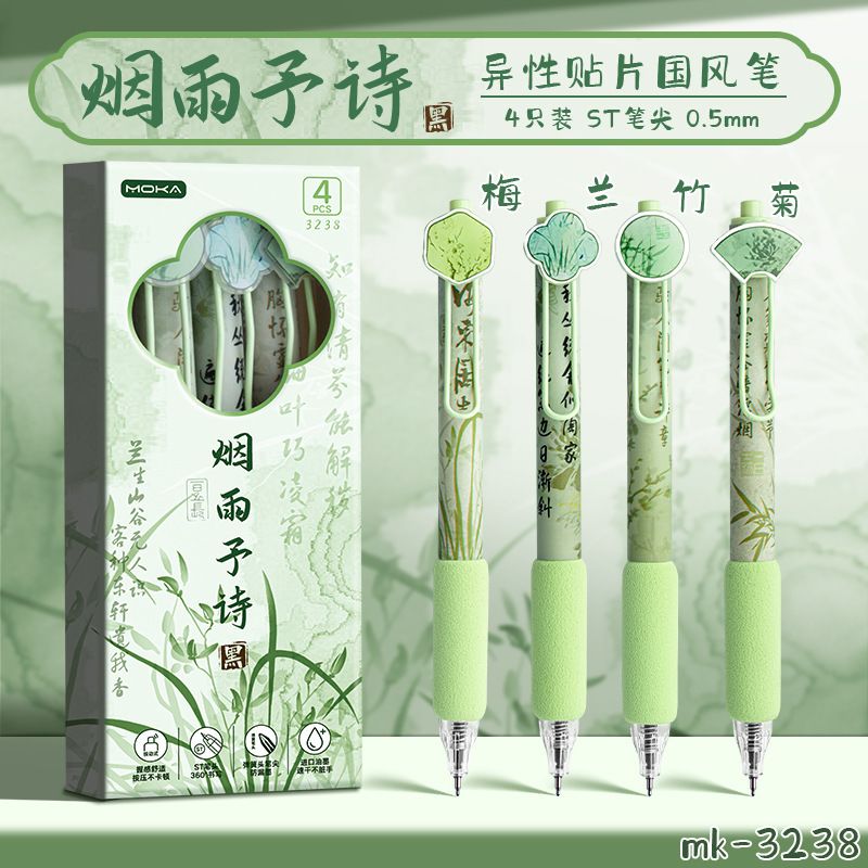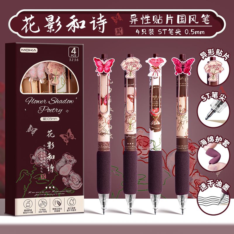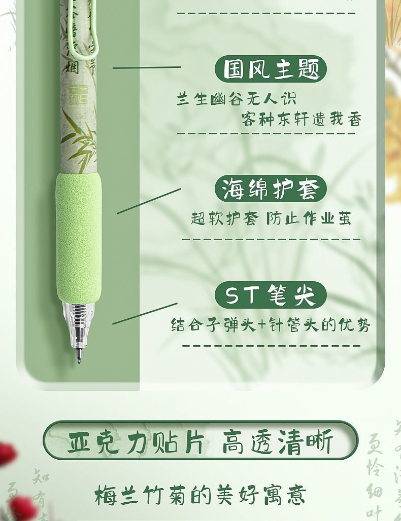 创意国风按动式中性笔学生文具ins高颜值顺滑笔0.5mm考试用绵绵笔