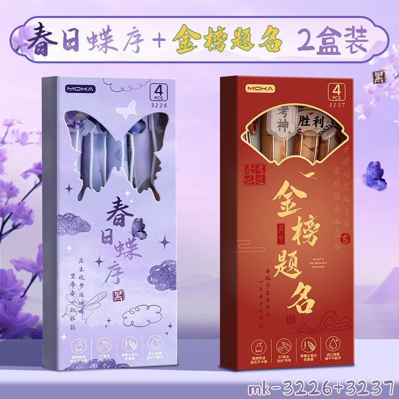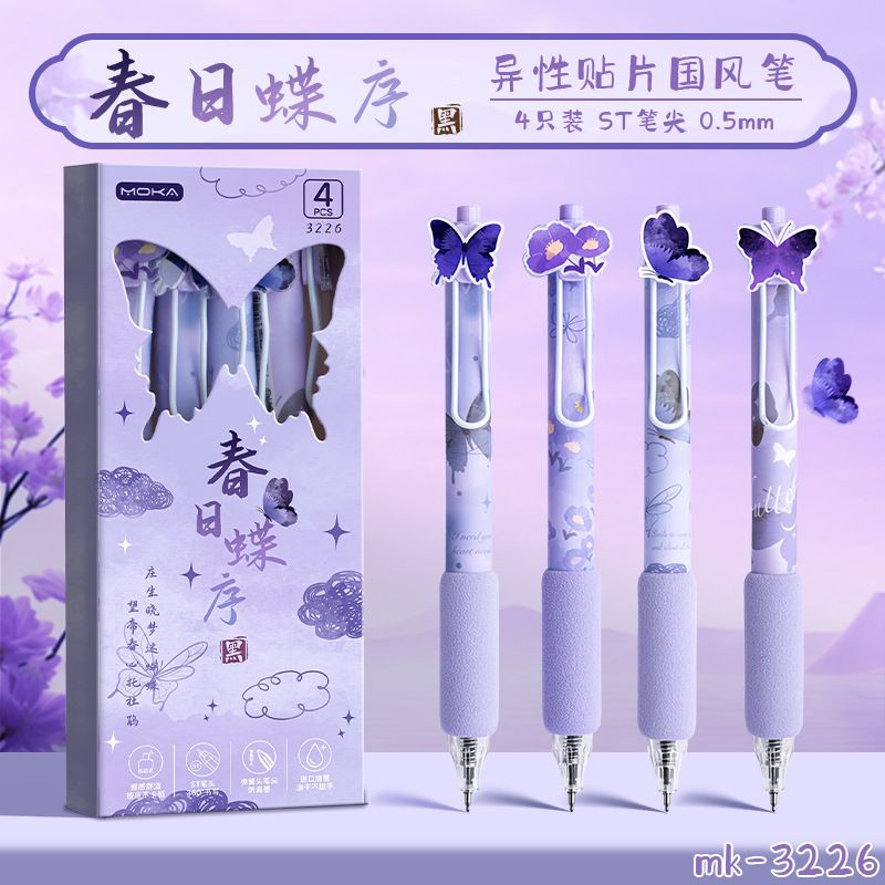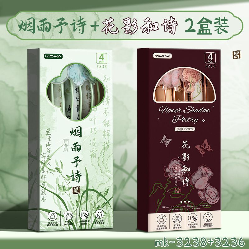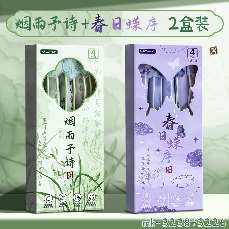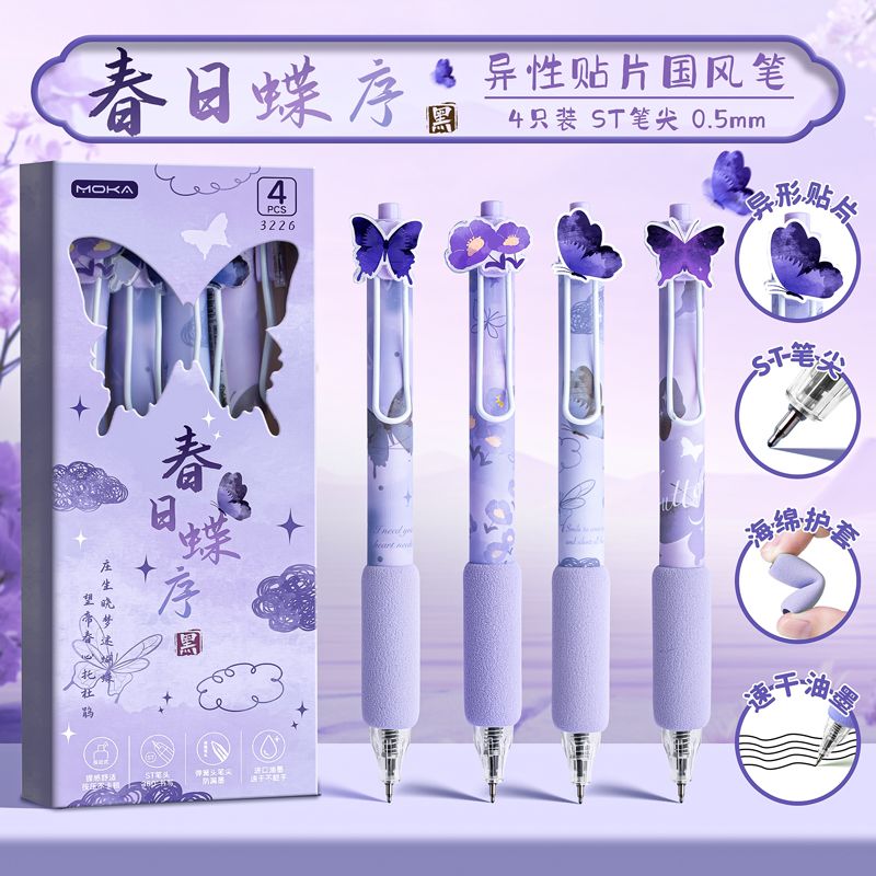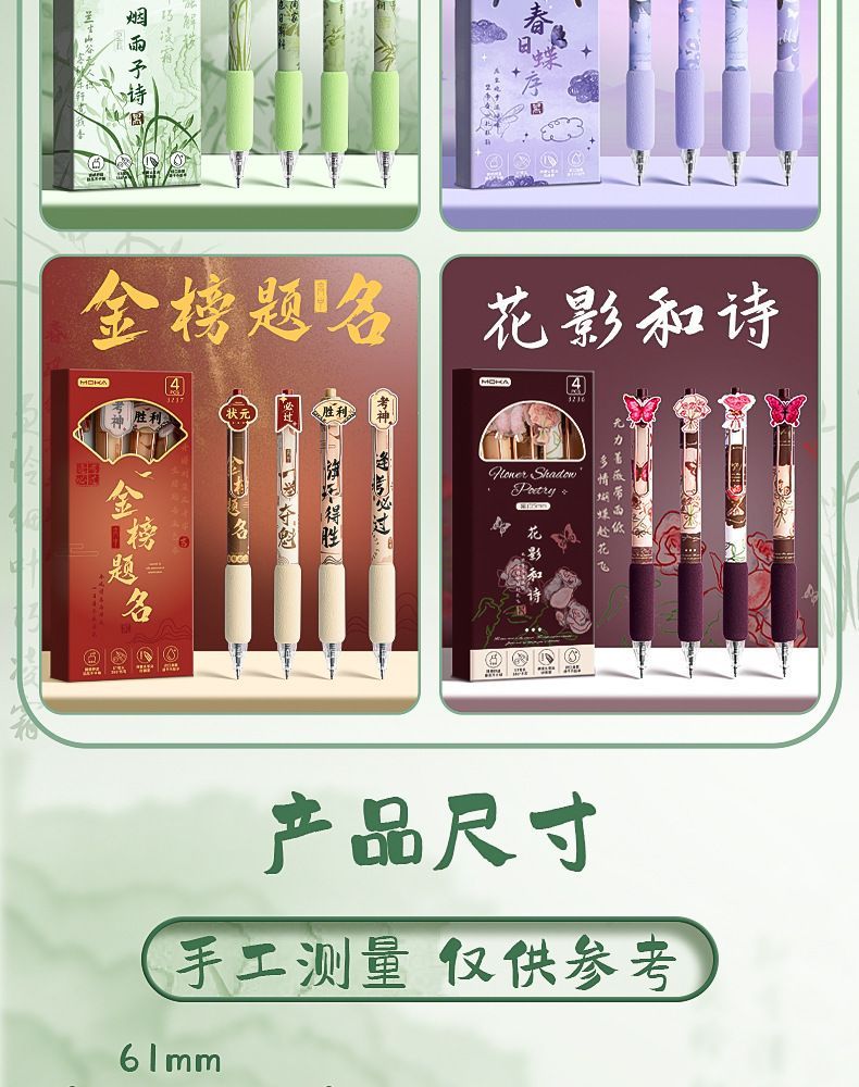 创意国风按动式中性笔学生文具ins高颜值顺滑笔0.5mm考试用绵绵笔