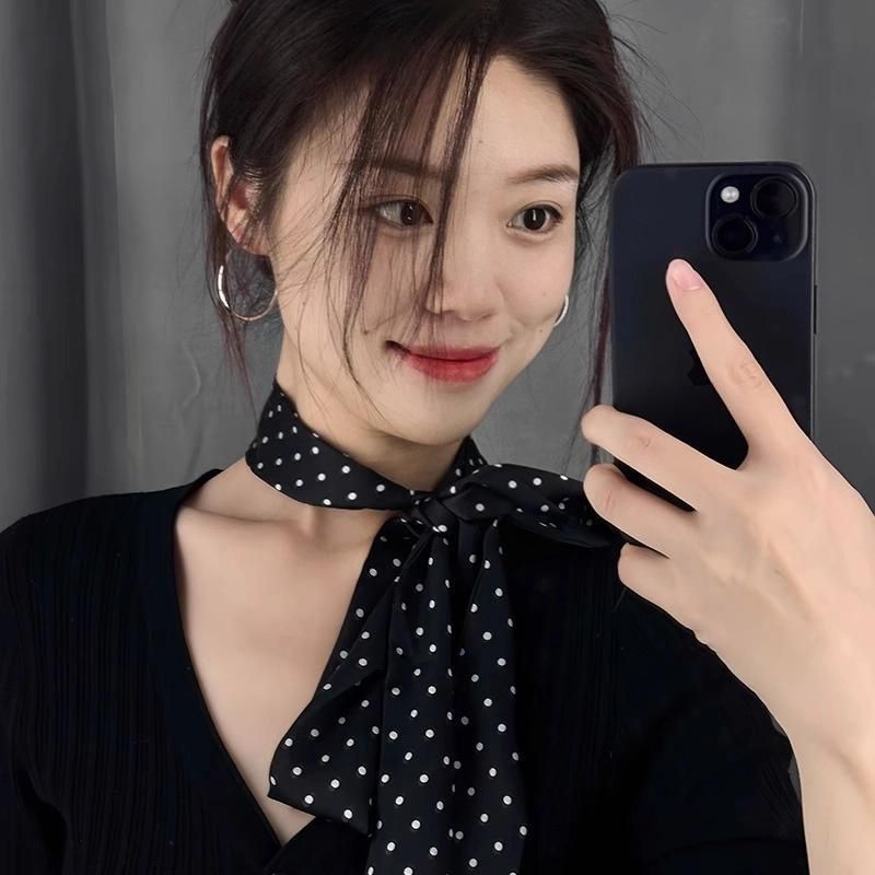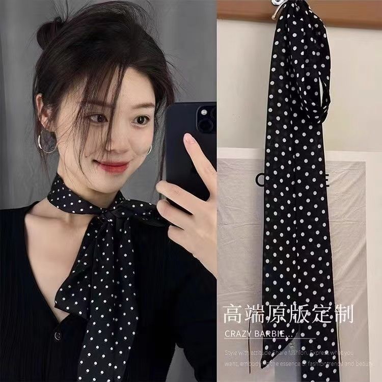黑色波点丝巾轻奢方巾高档女系脖发带秋季新款百搭时尚搭配衬衫