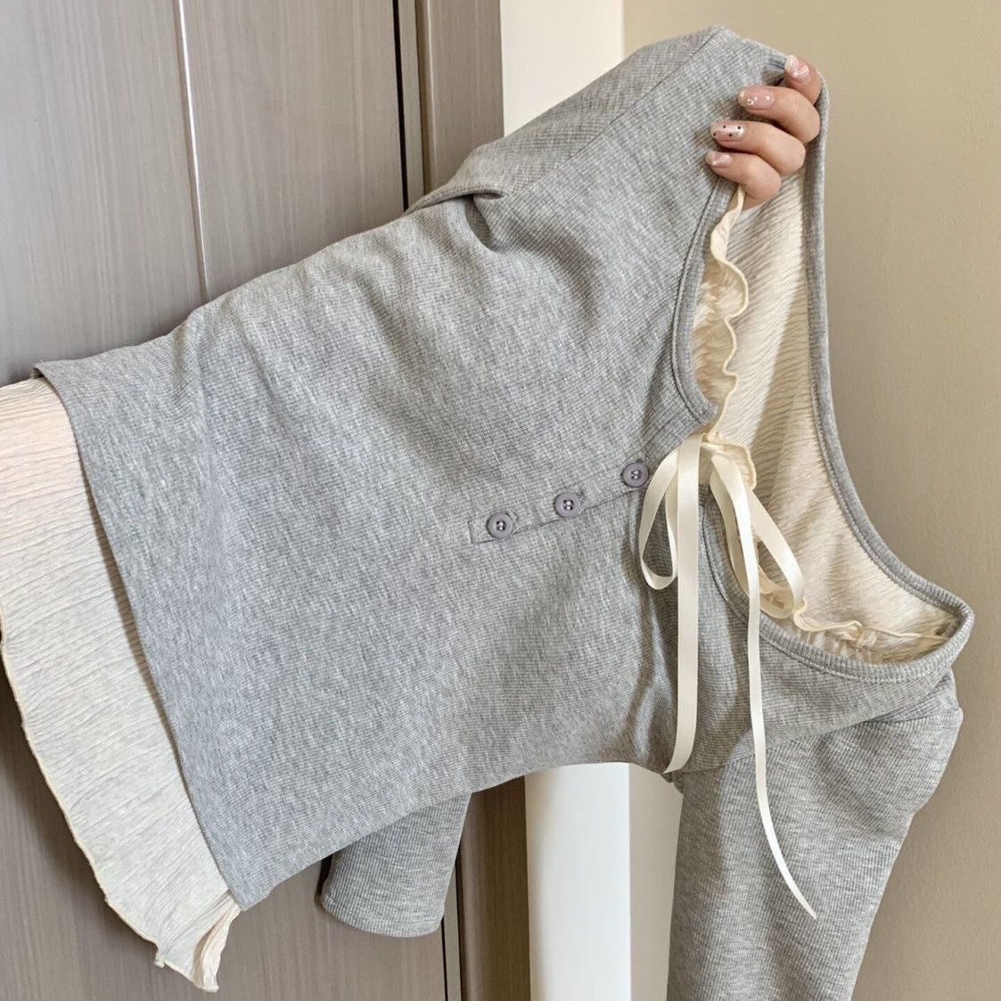 纯欲天花板保暖内衣假两件打底衫木耳边内搭长袖T恤女上衣潮流ins