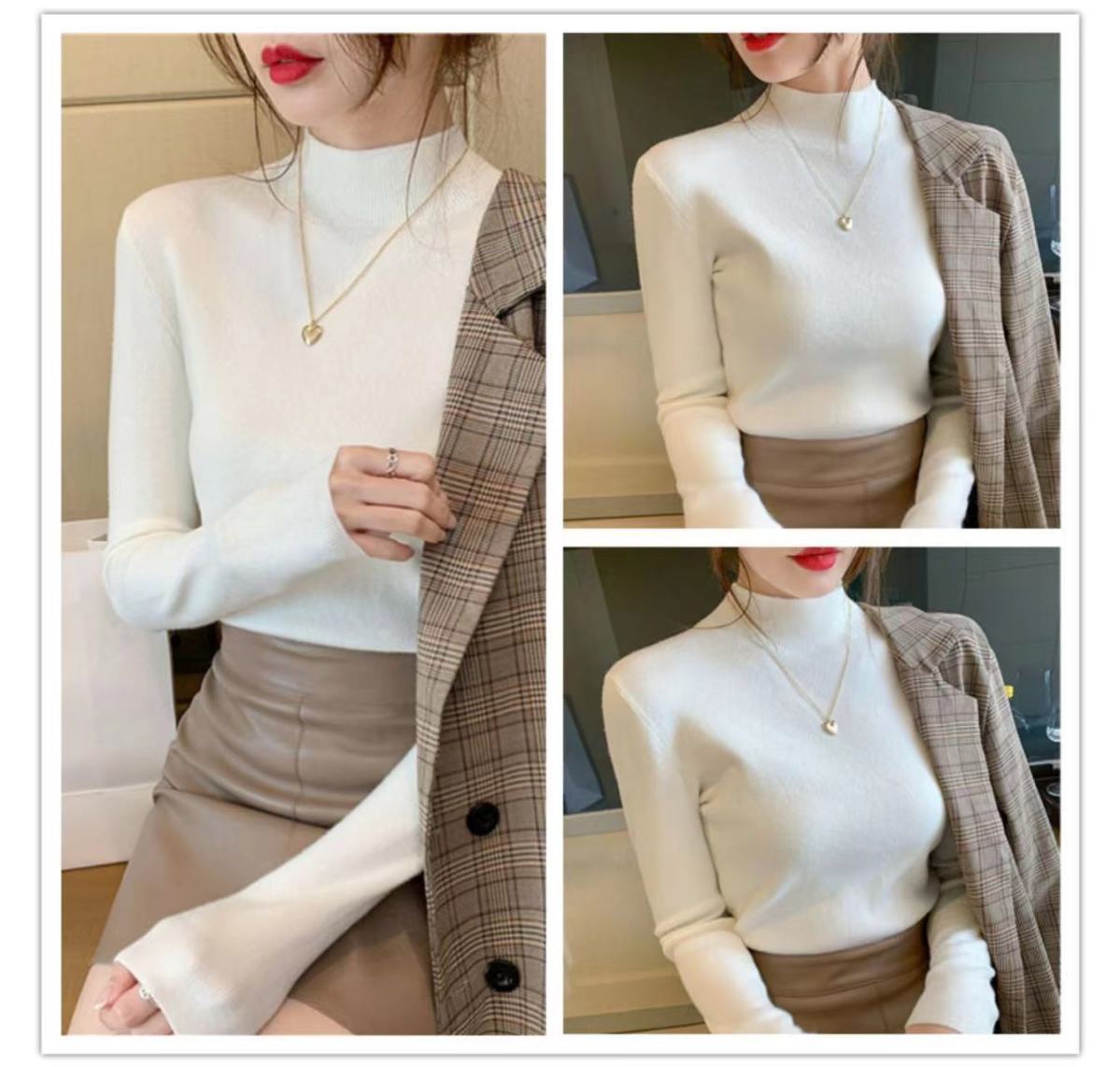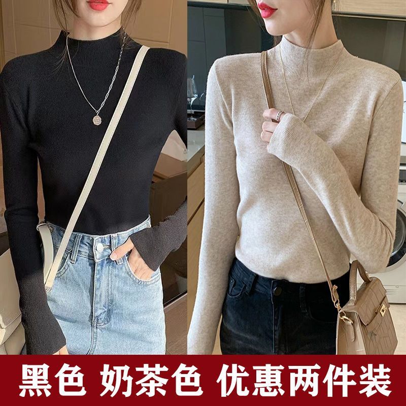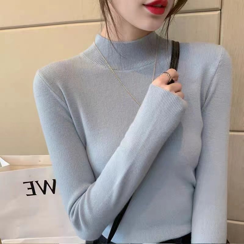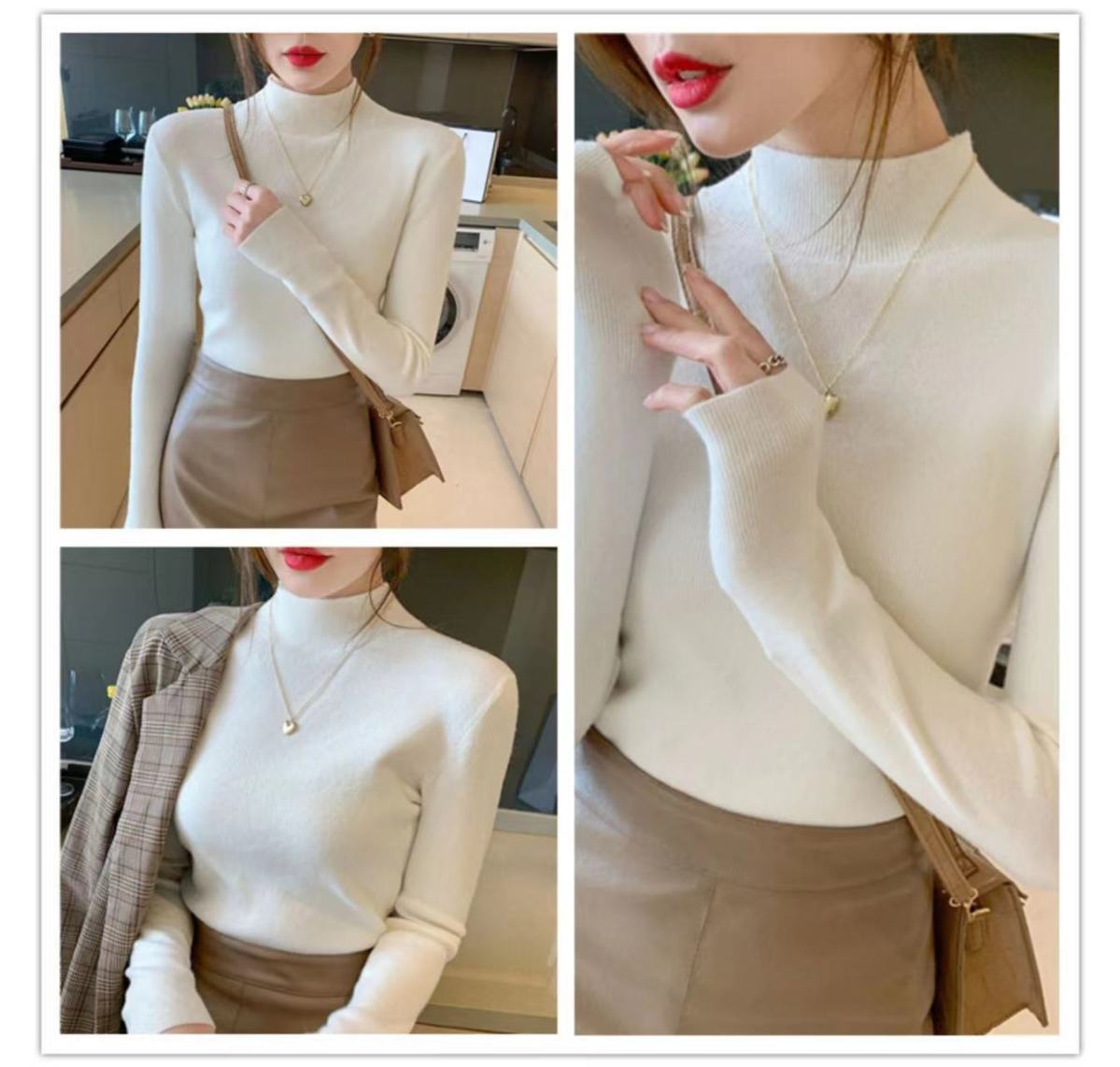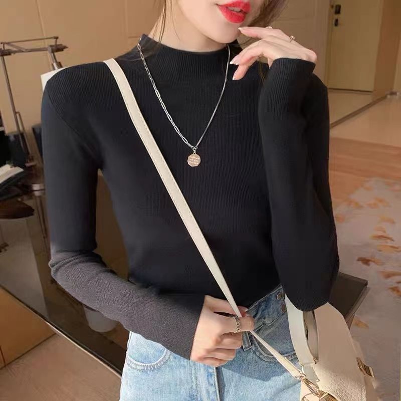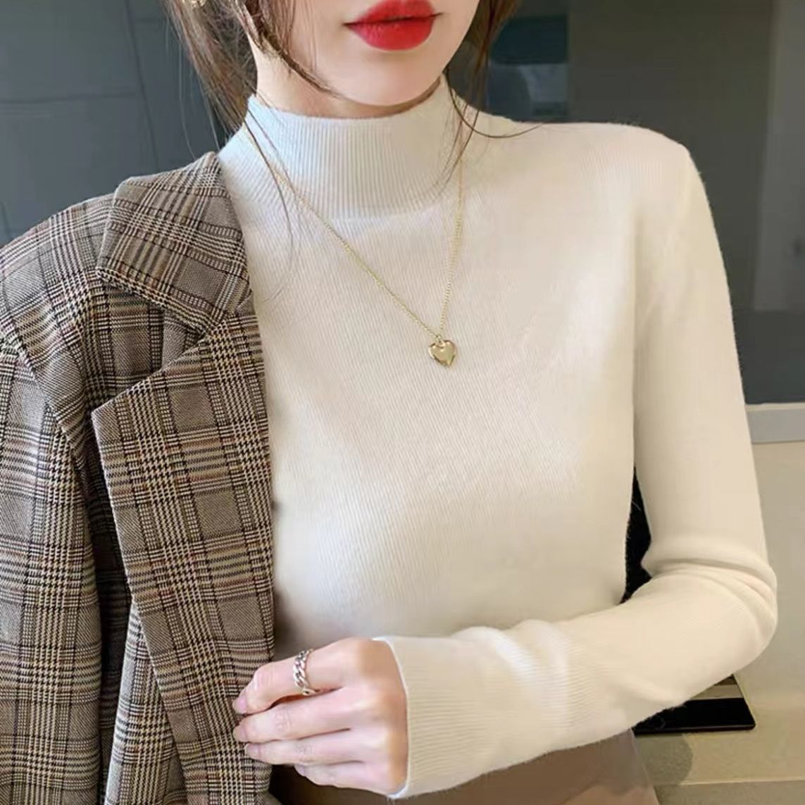 PSTL 2025新款秋冬半高领长袖针织衫毛衣女打底衫百搭毛衣女内搭