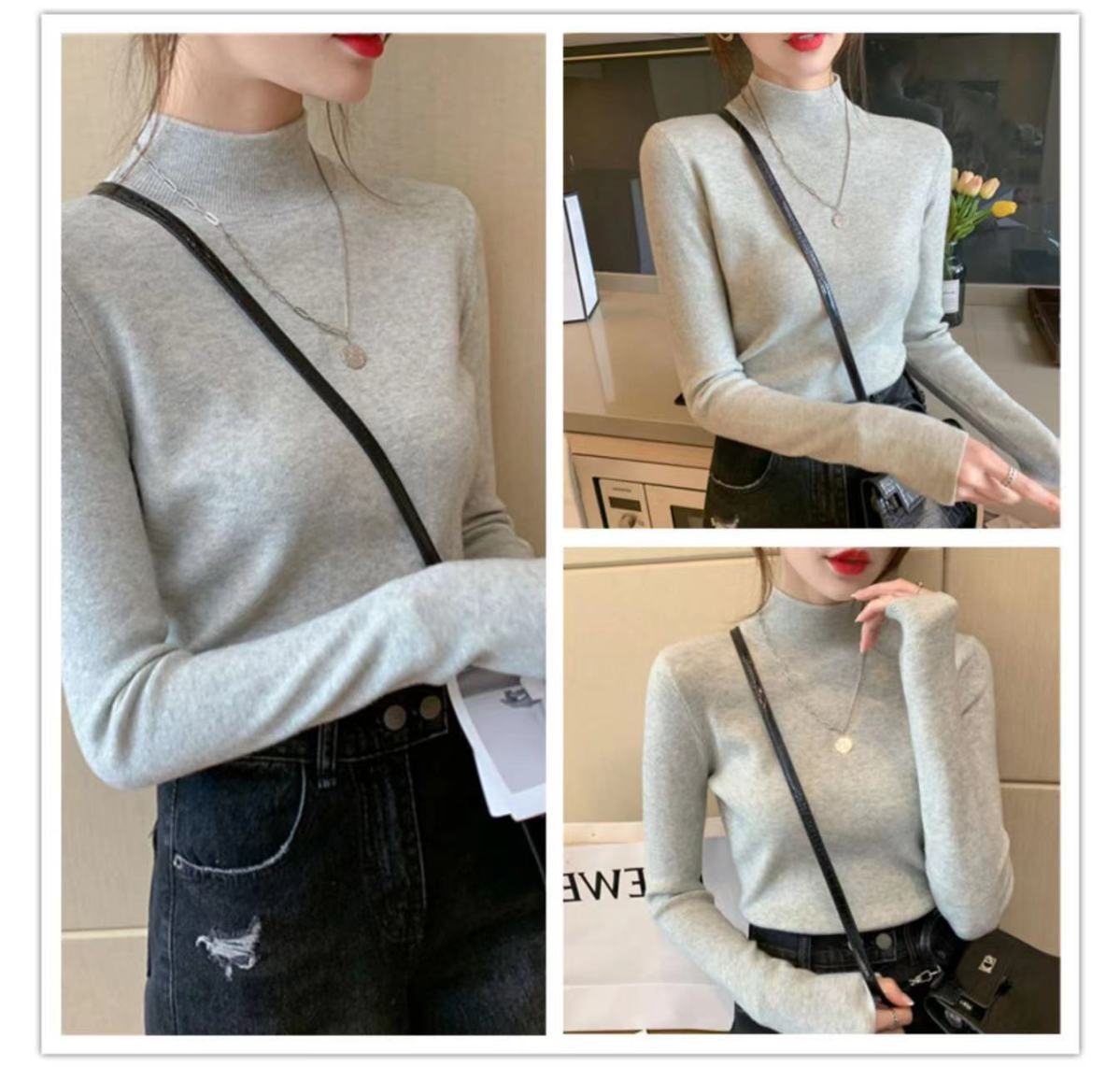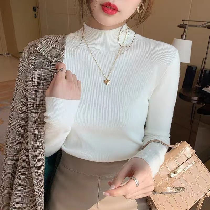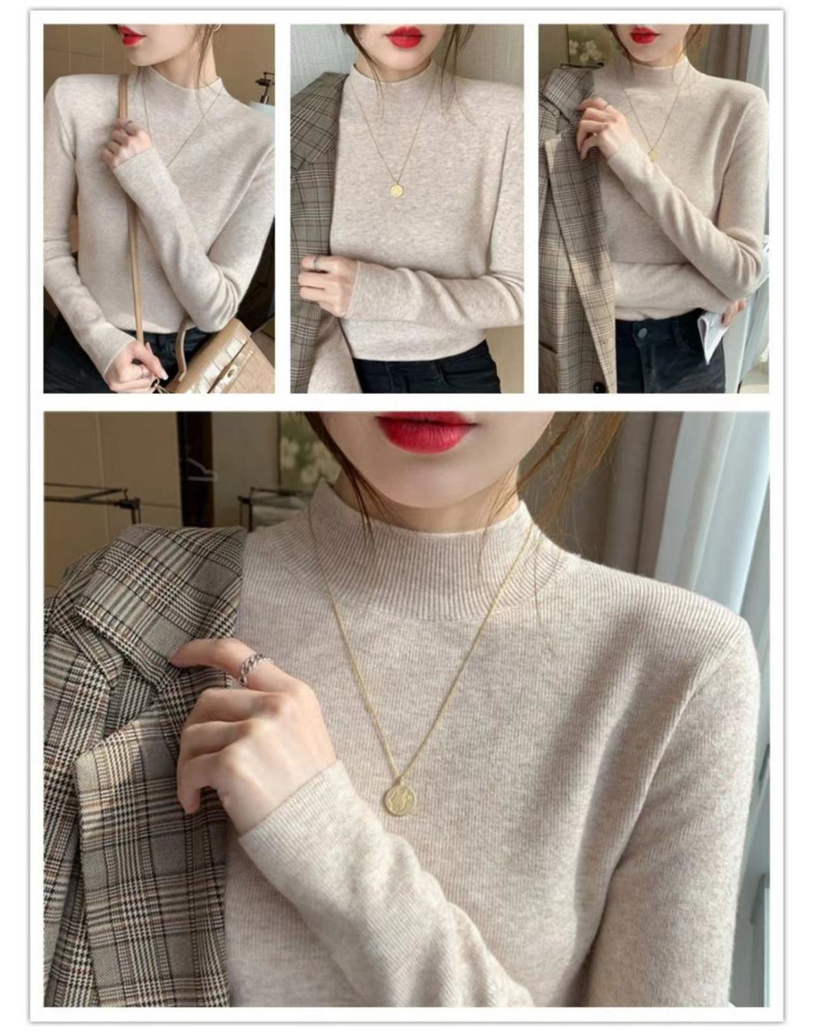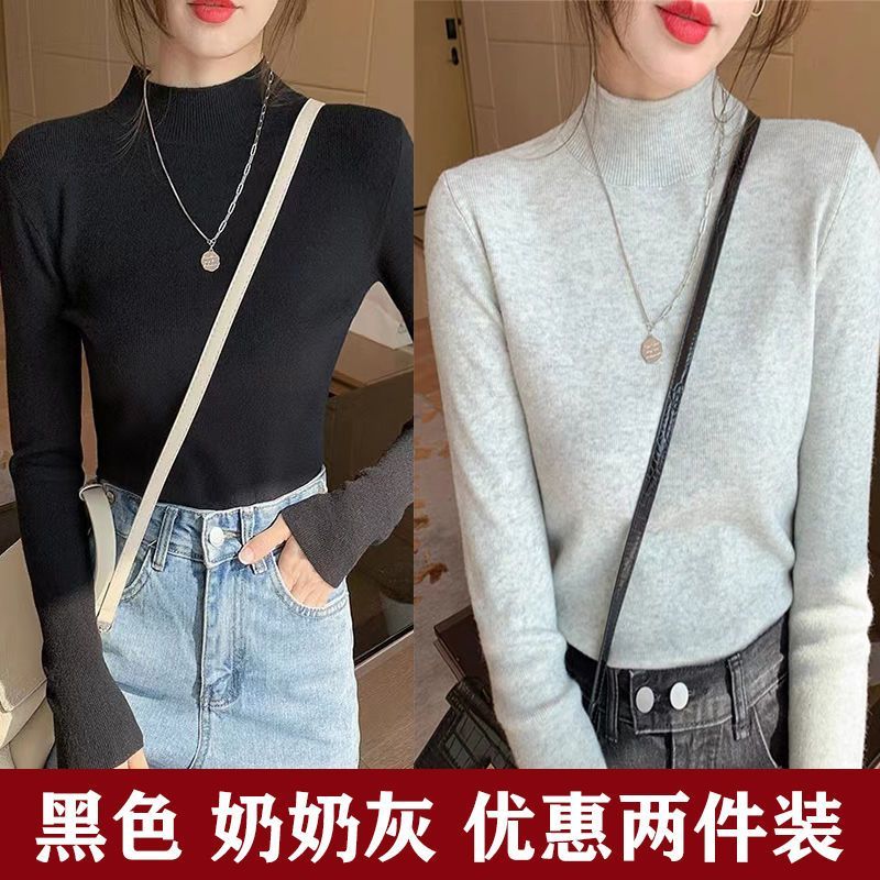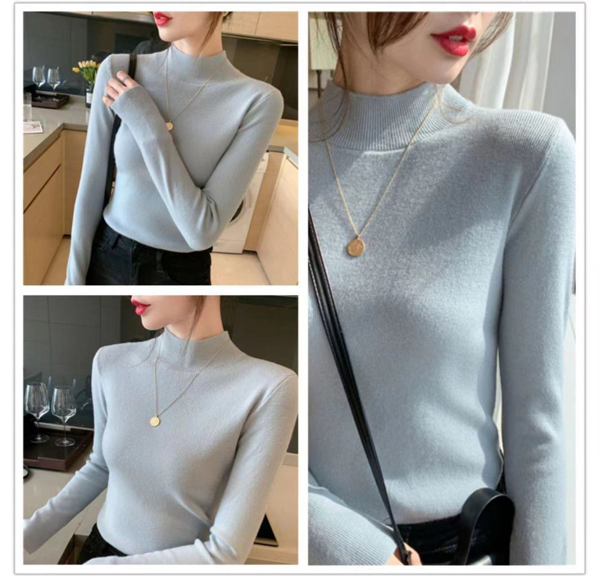 PSTL 2025新款秋冬半高领长袖针织衫毛衣女打底衫百搭毛衣女内搭