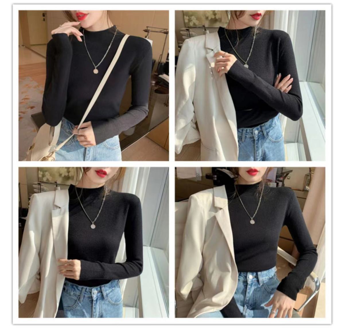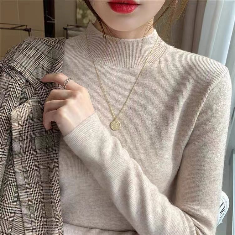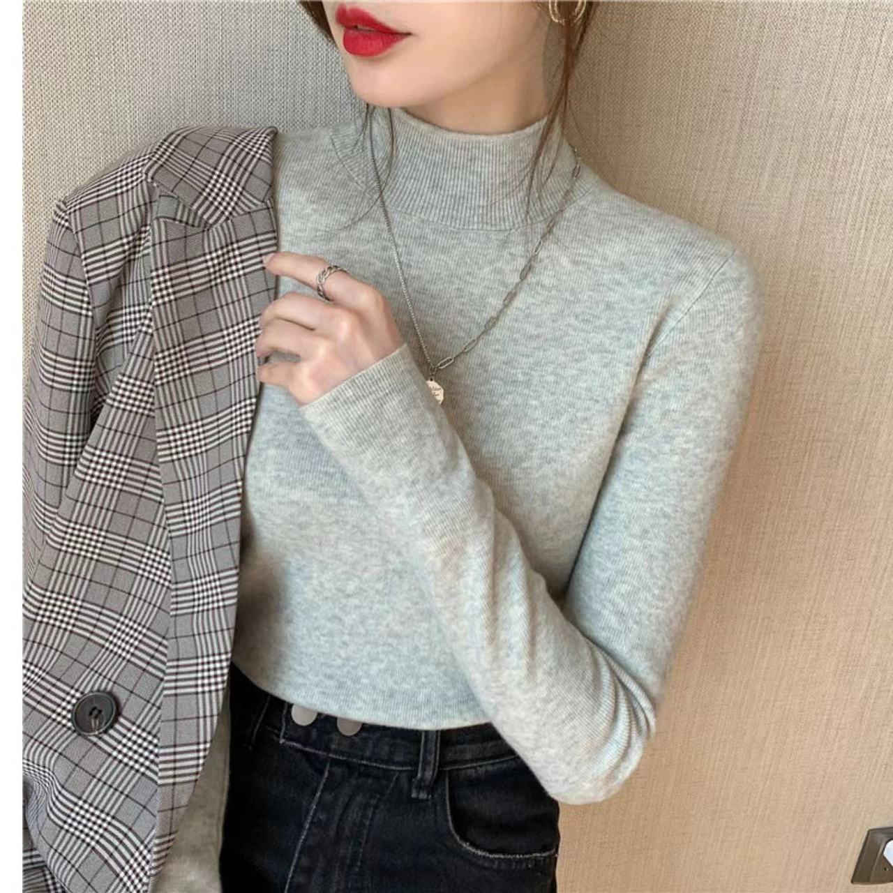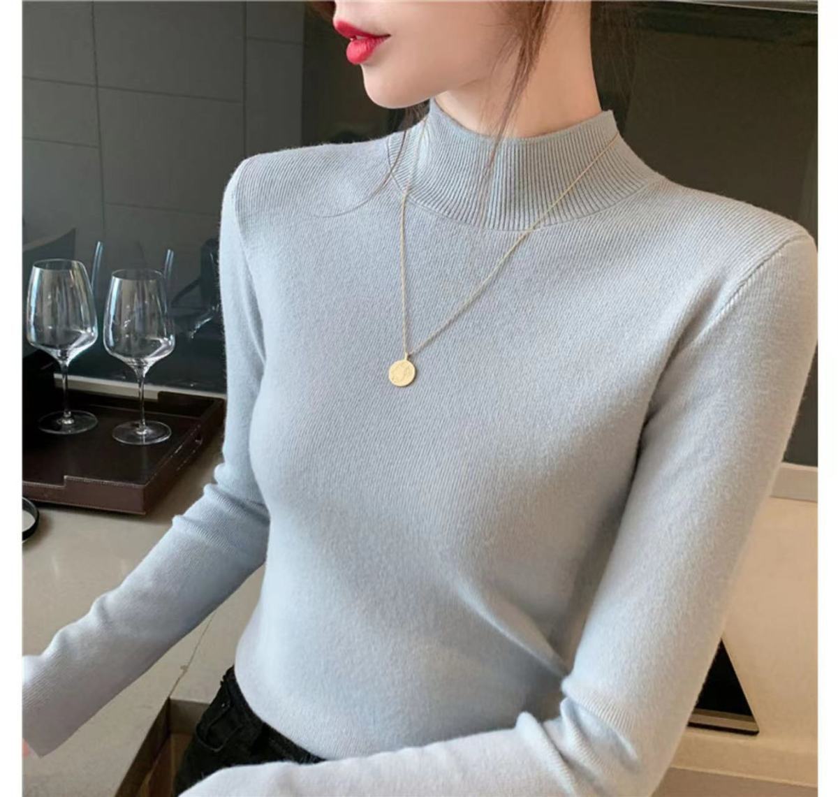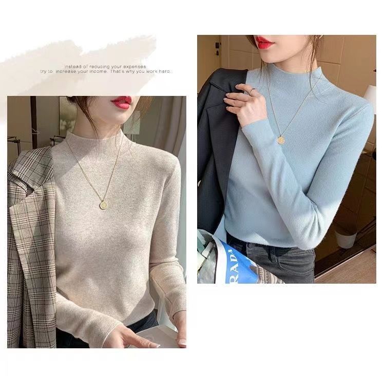 PSTL 2025新款秋冬半高领长袖针织衫毛衣女打底衫百搭毛衣女内搭