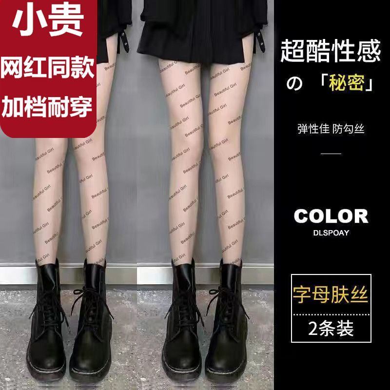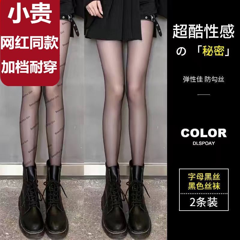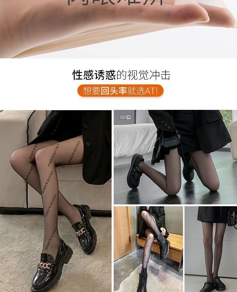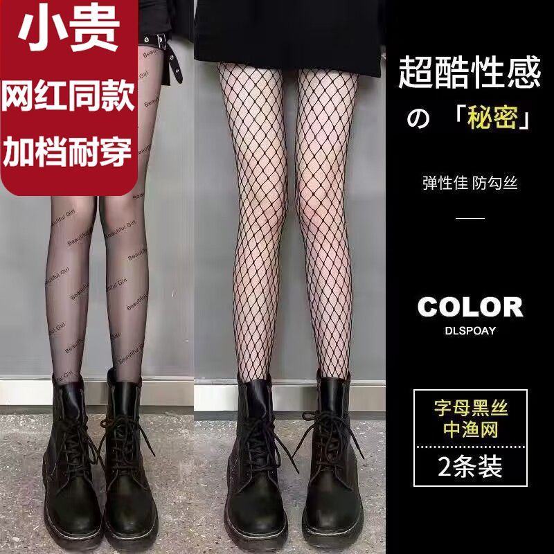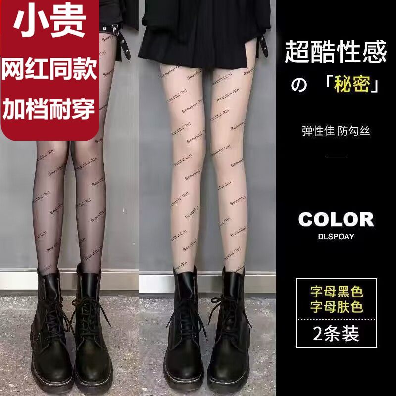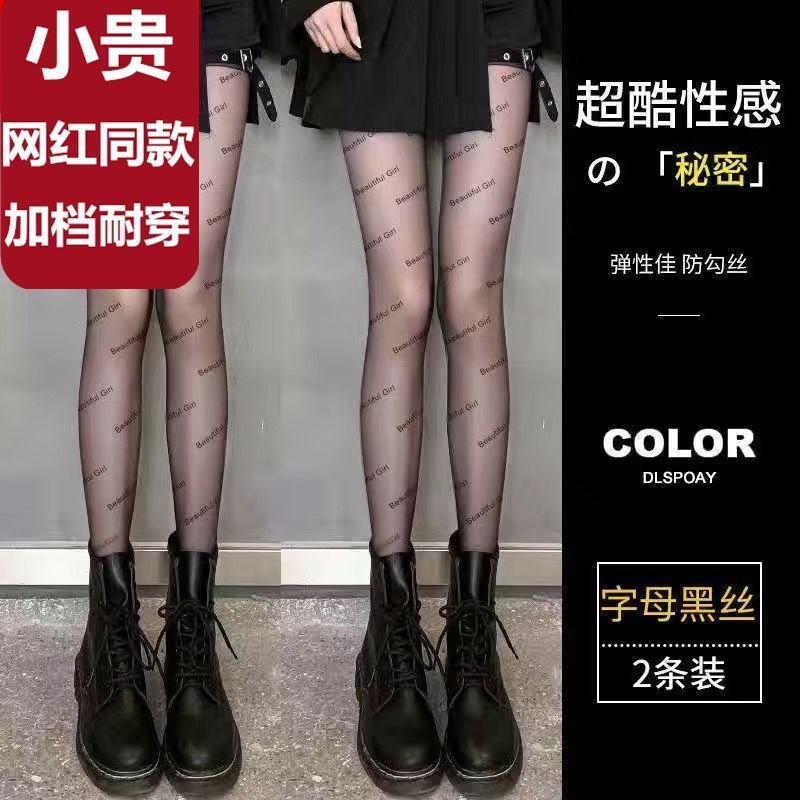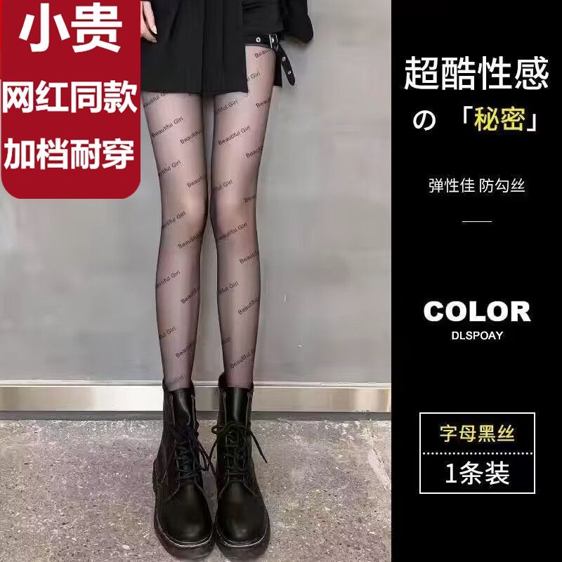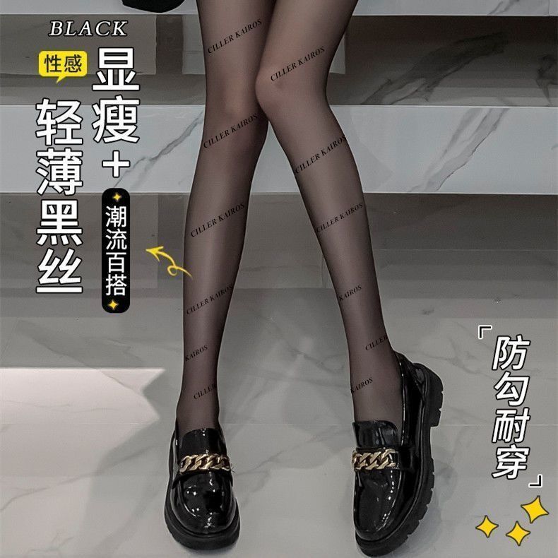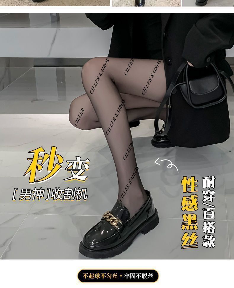 字母黑丝袜女薄款防勾丝夏季超薄不掉档渔网袜纯欲风连裤袜ins潮