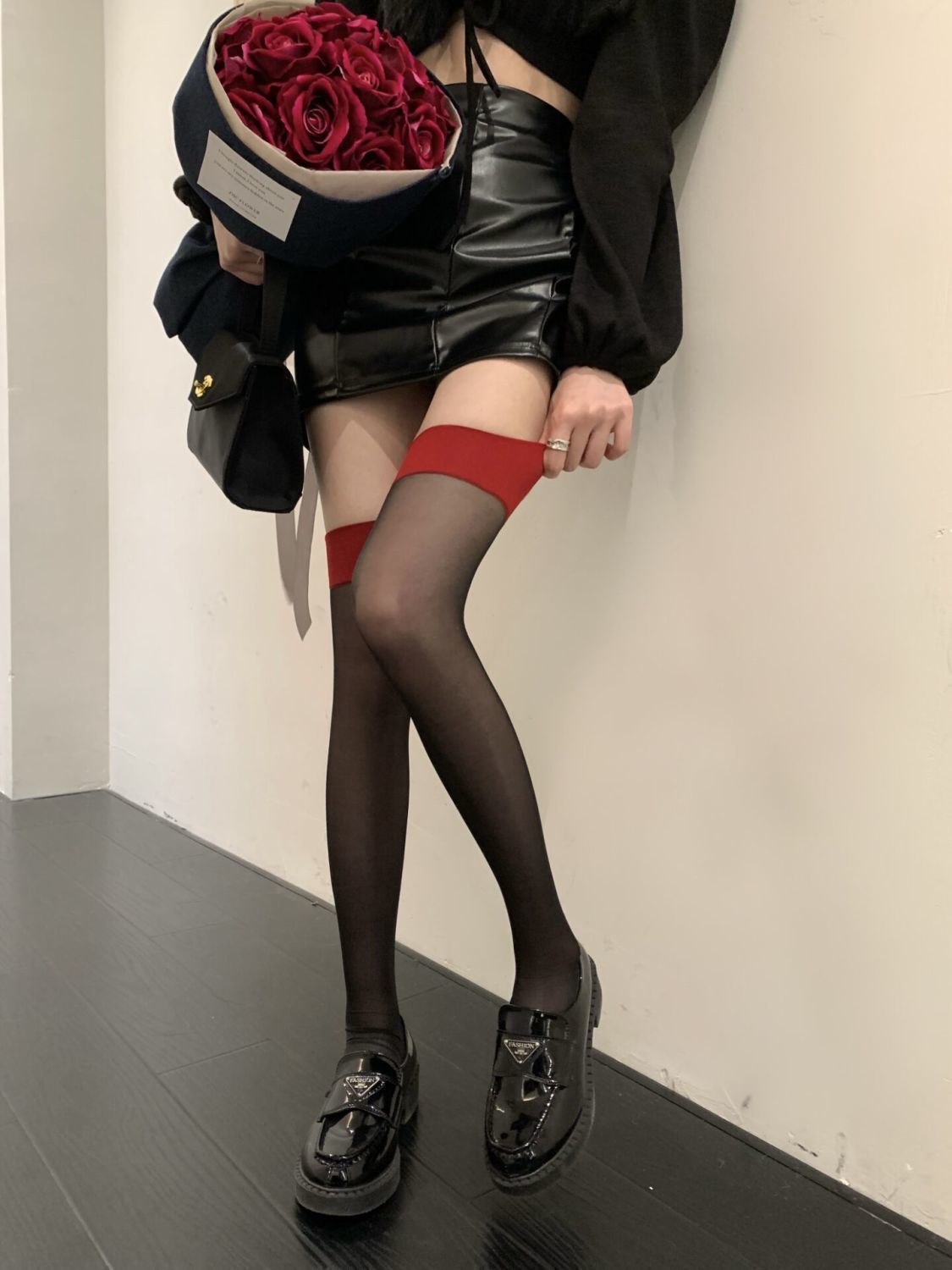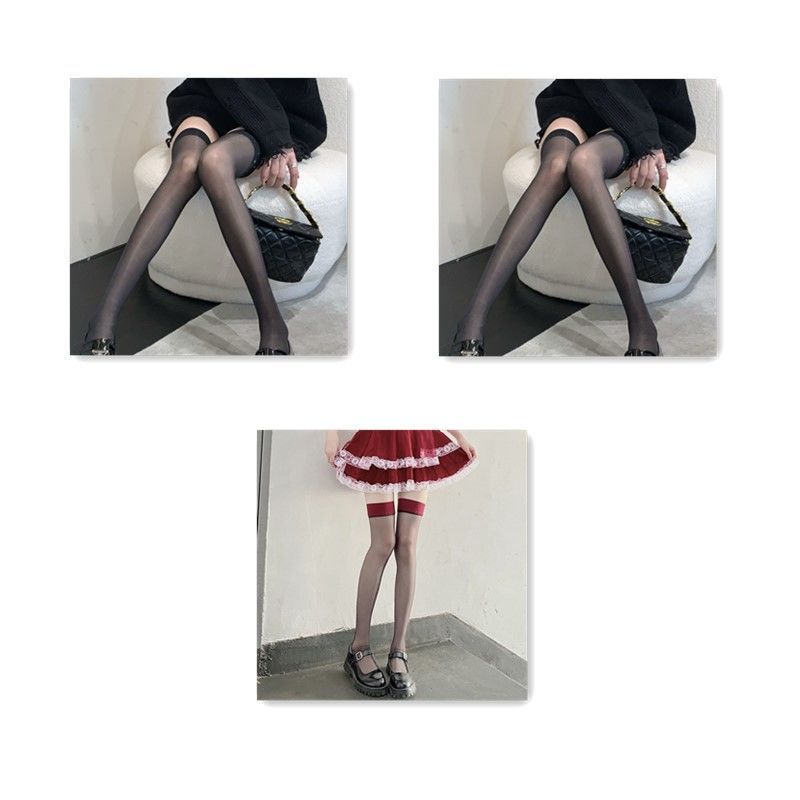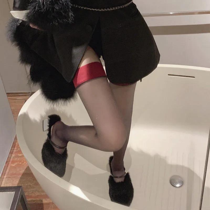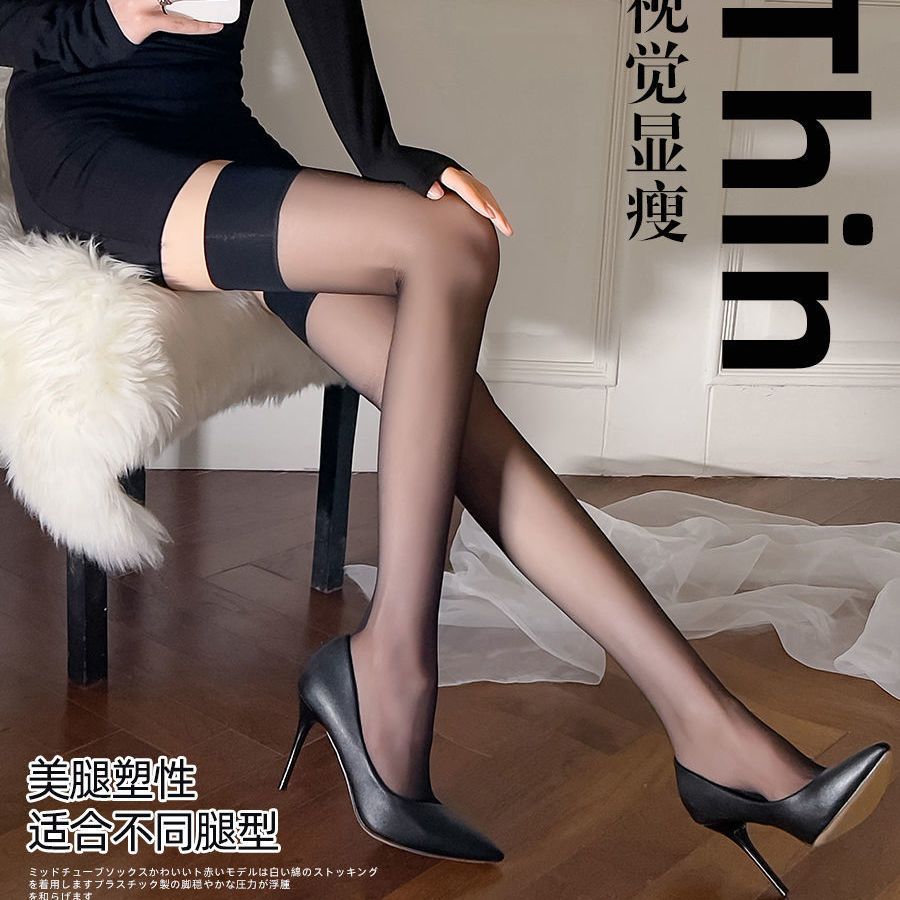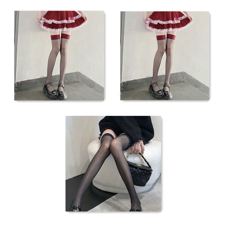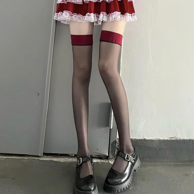 拼接性感大腿丝袜ins红色边黑色网红性感薄款黑丝纯欲长筒过膝袜