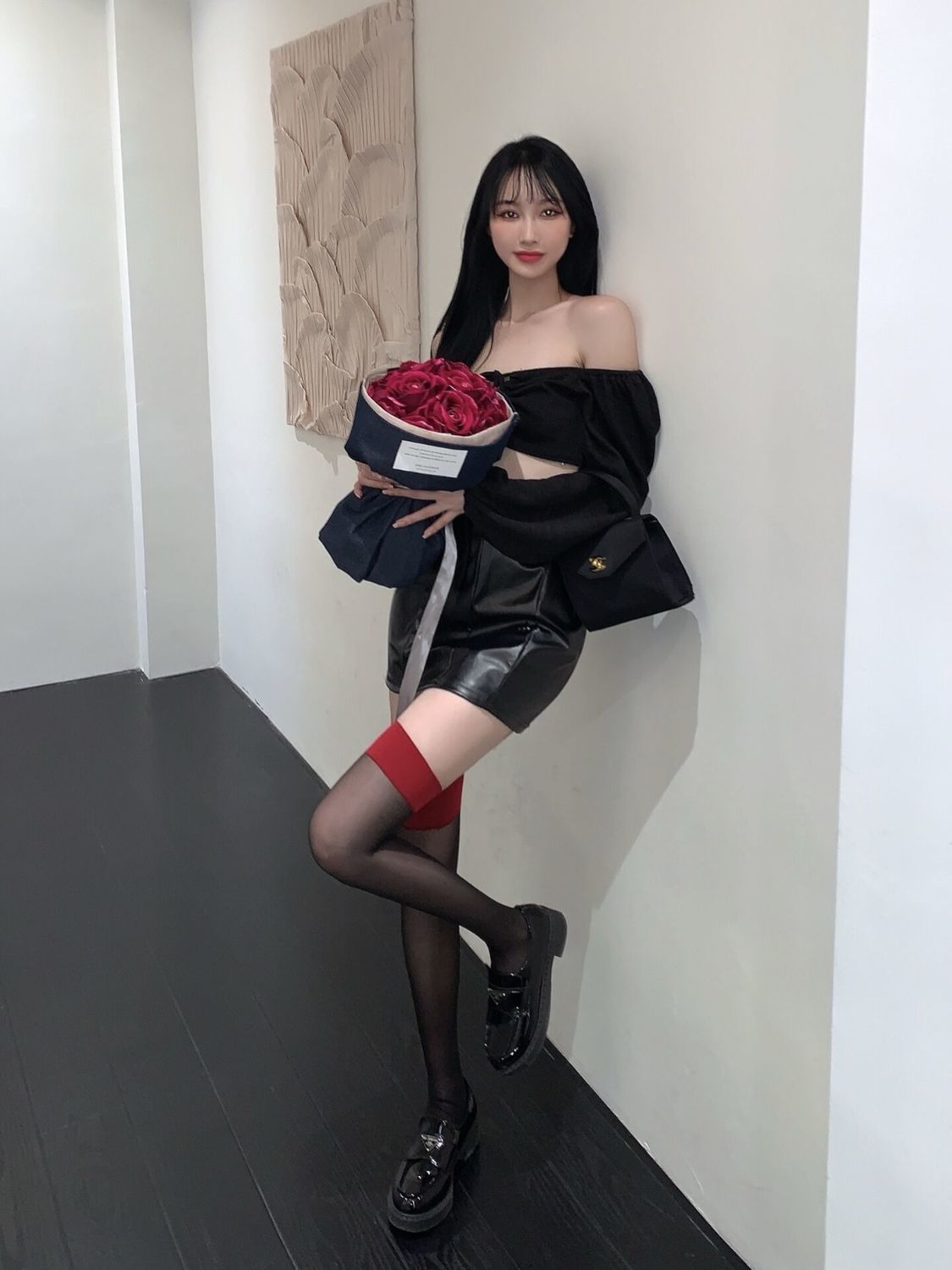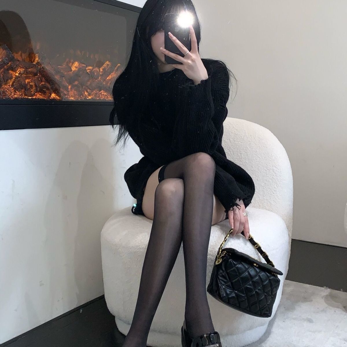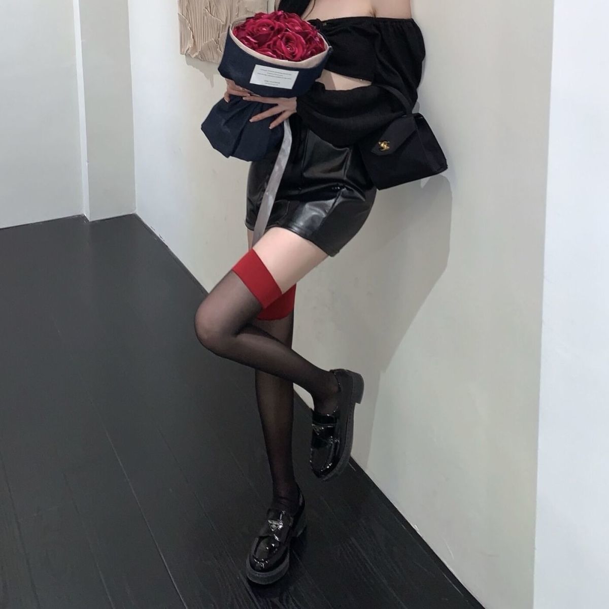 拼接性感大腿丝袜ins红色边黑色网红性感薄款黑丝纯欲长筒过膝袜