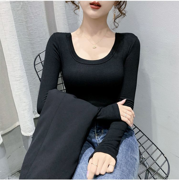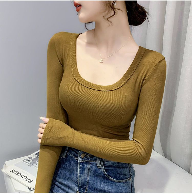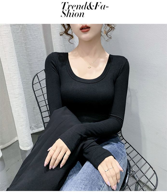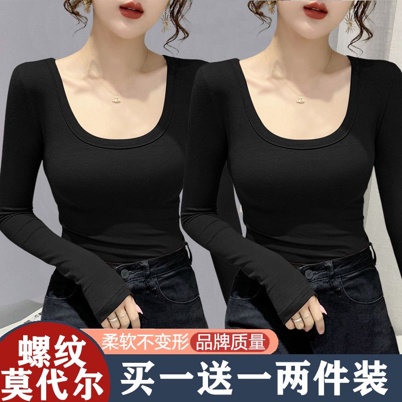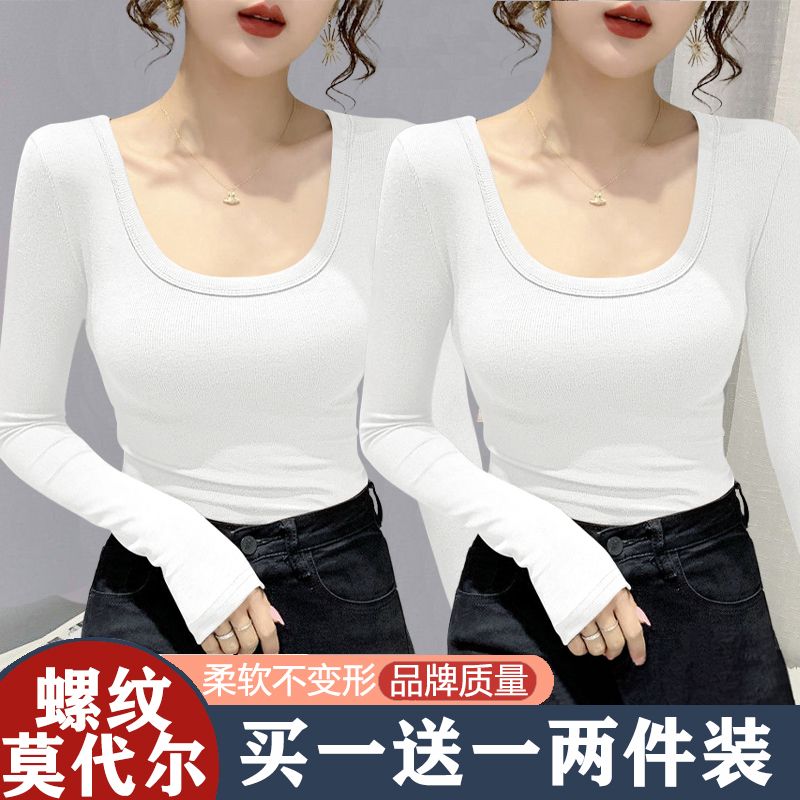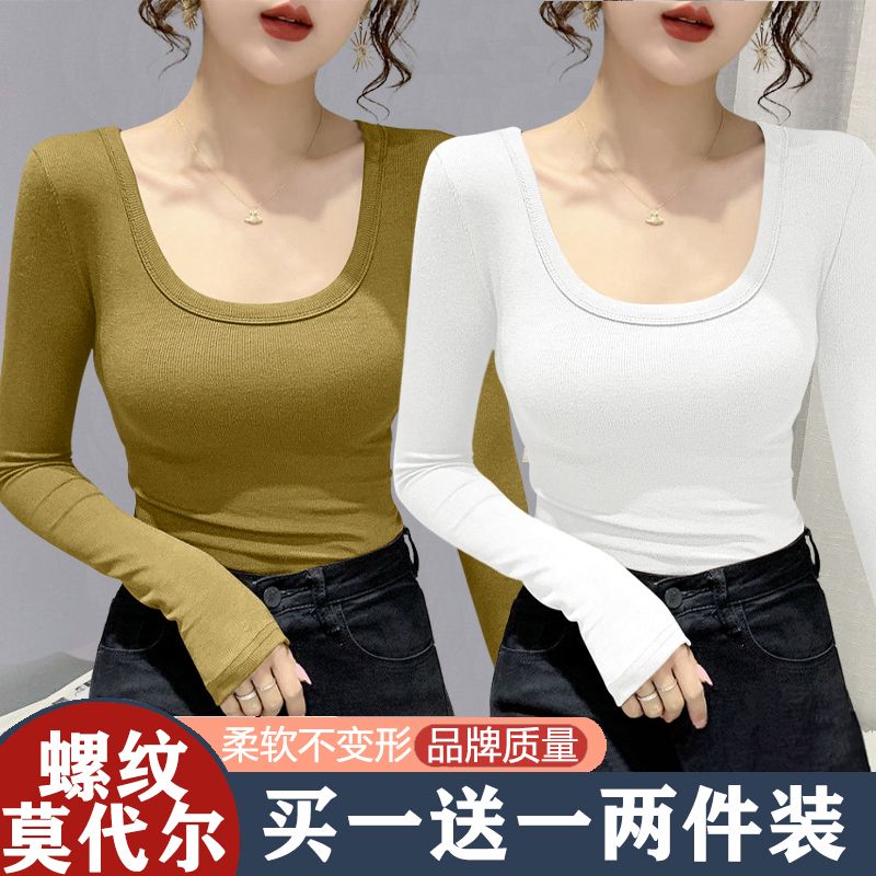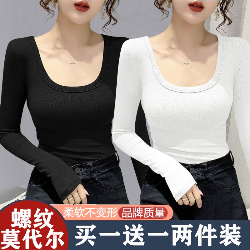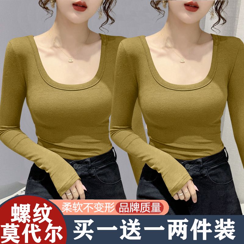 aimilian莫代尔螺纹圆领长袖打底衫女春秋洋气修身显瘦内搭上衣服