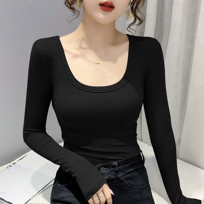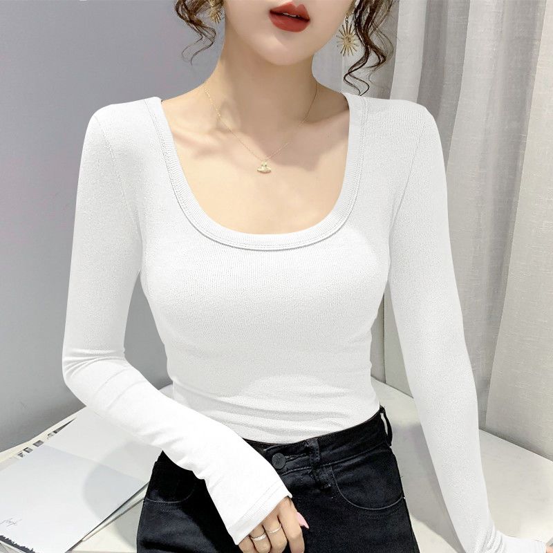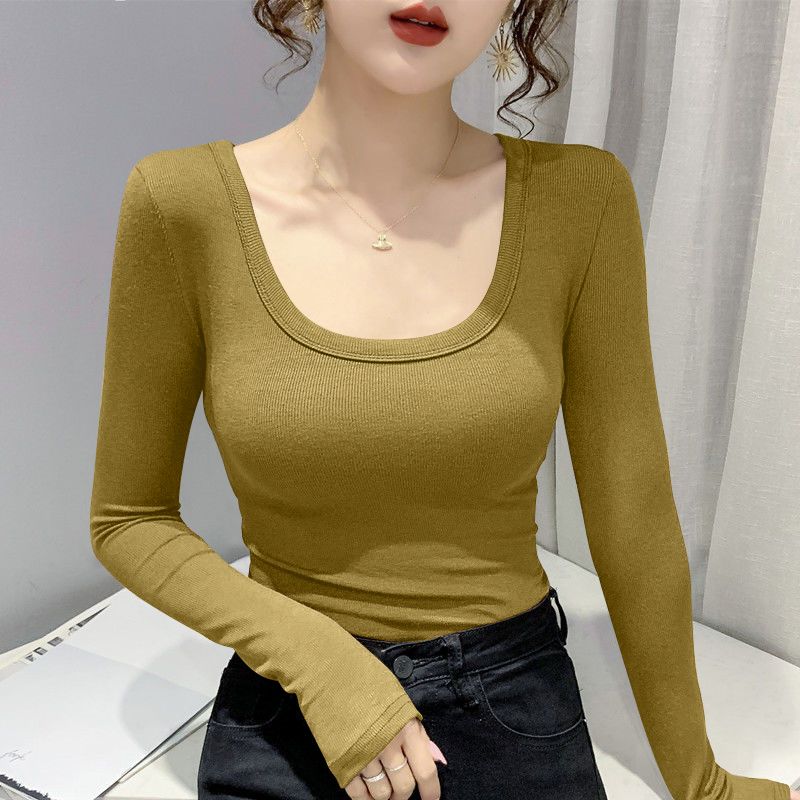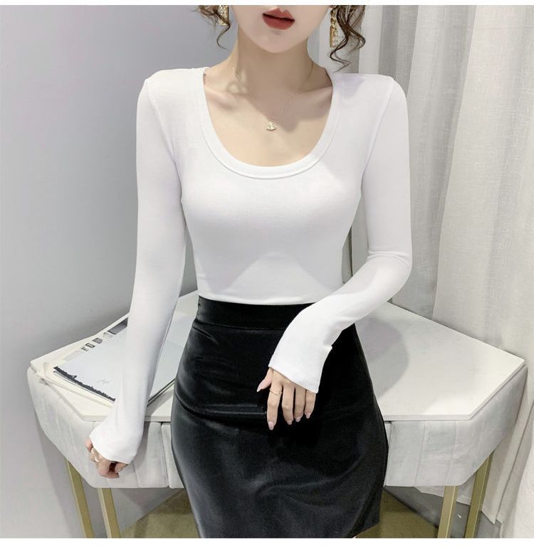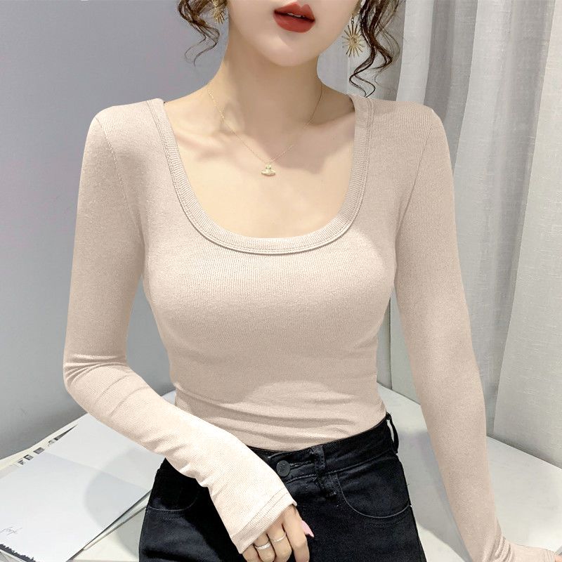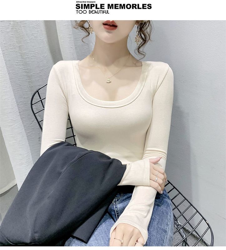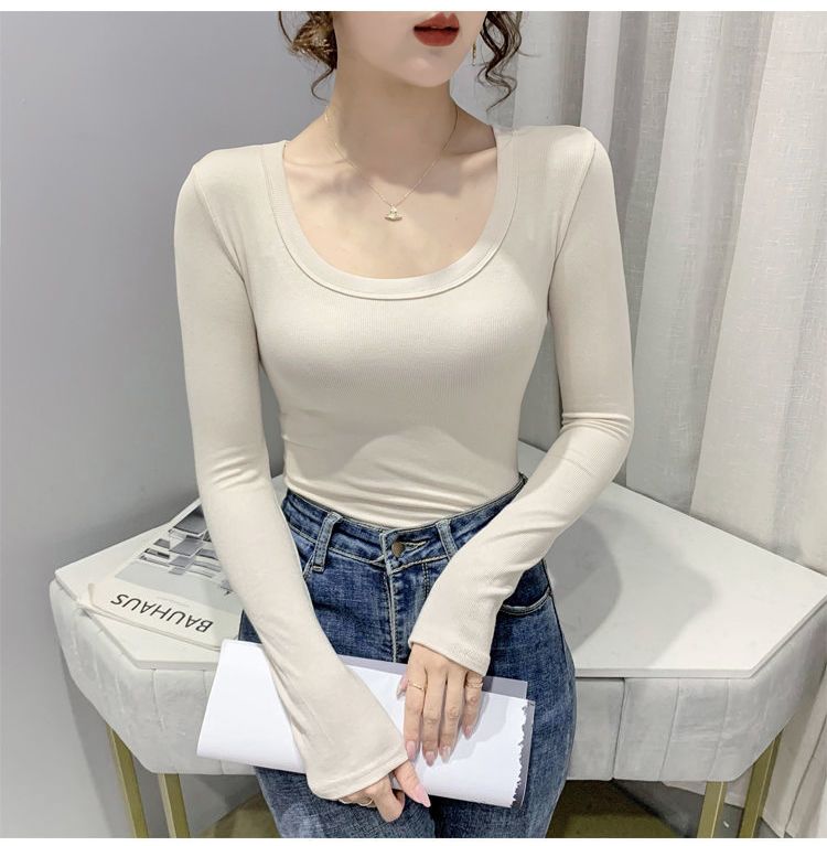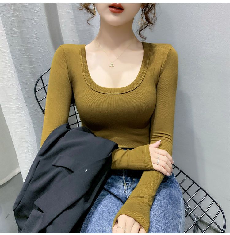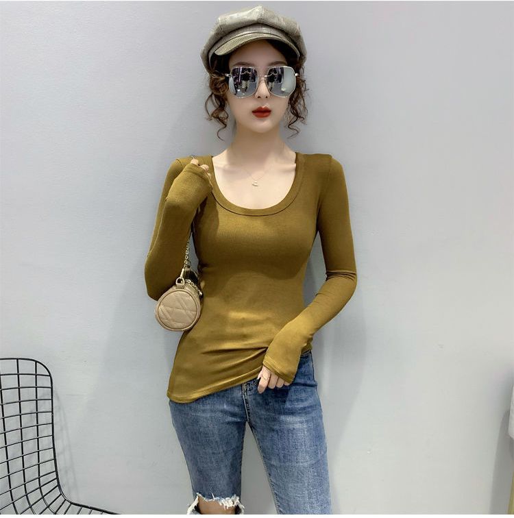 aimilian莫代尔螺纹圆领长袖打底衫女春秋洋气修身显瘦内搭上衣服