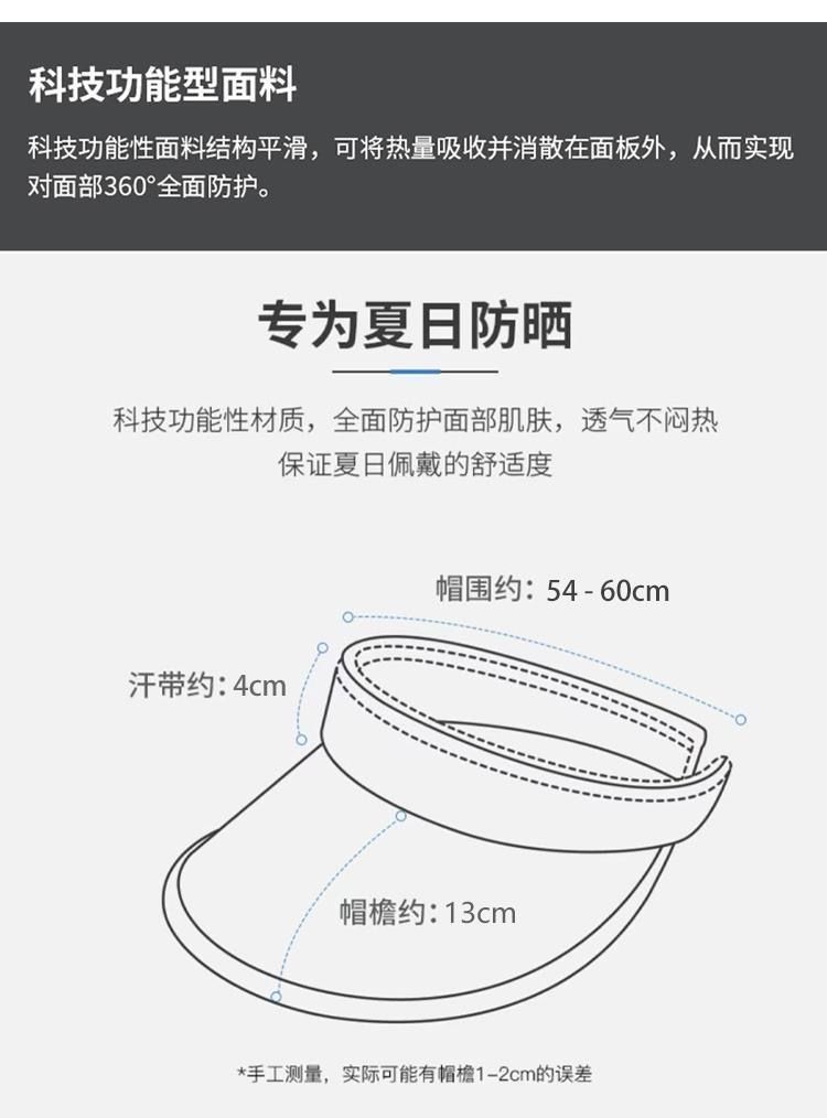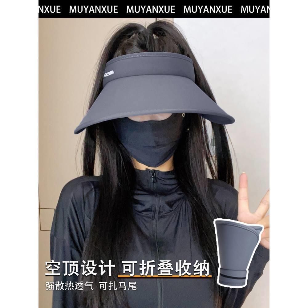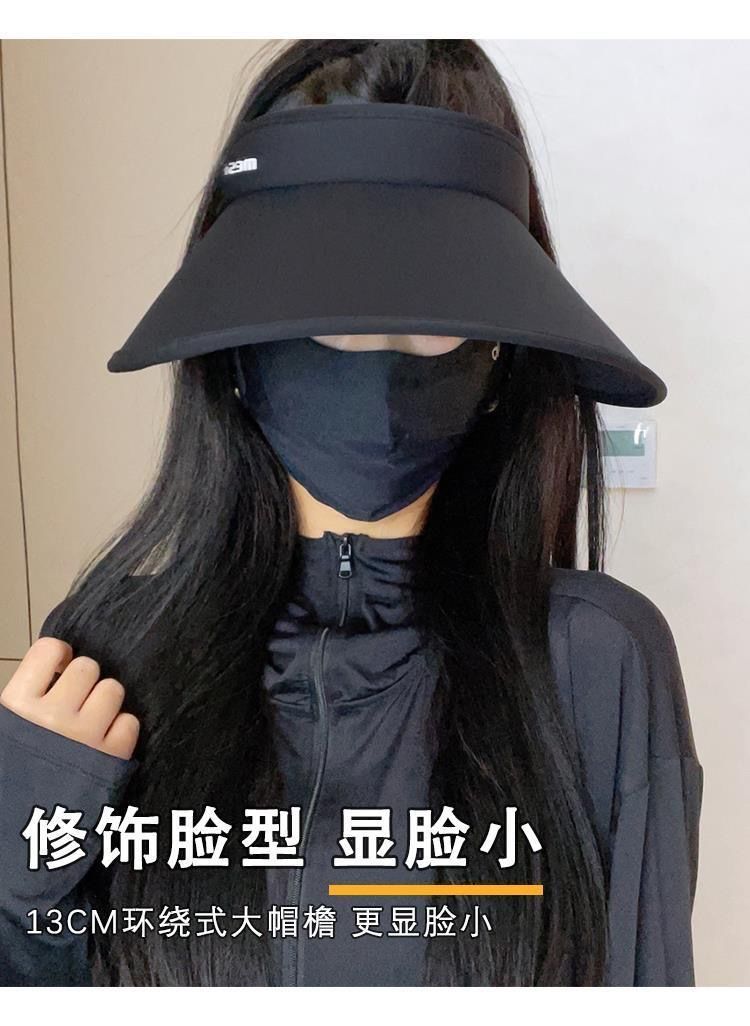 UPF50+空顶防晒帽女遮阳帽防紫外线夏季骑车加大帽檐冰丝太阳帽子