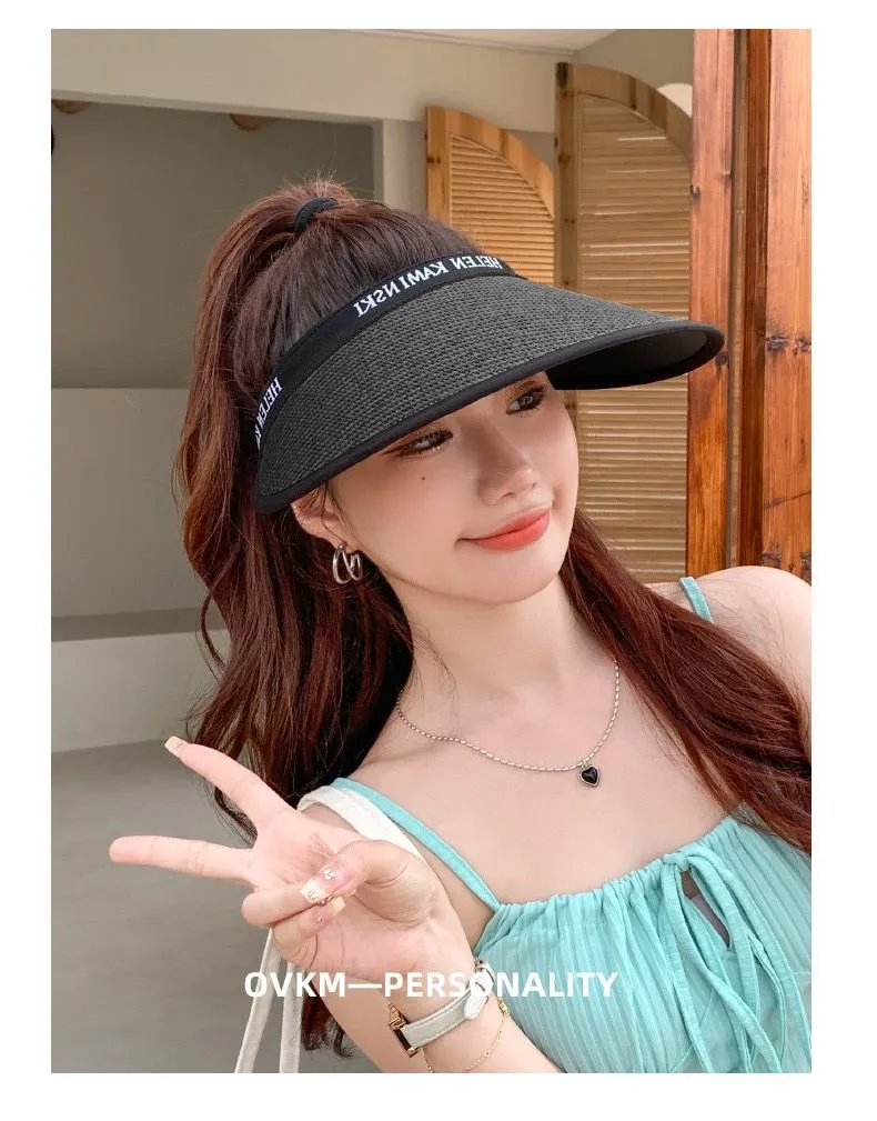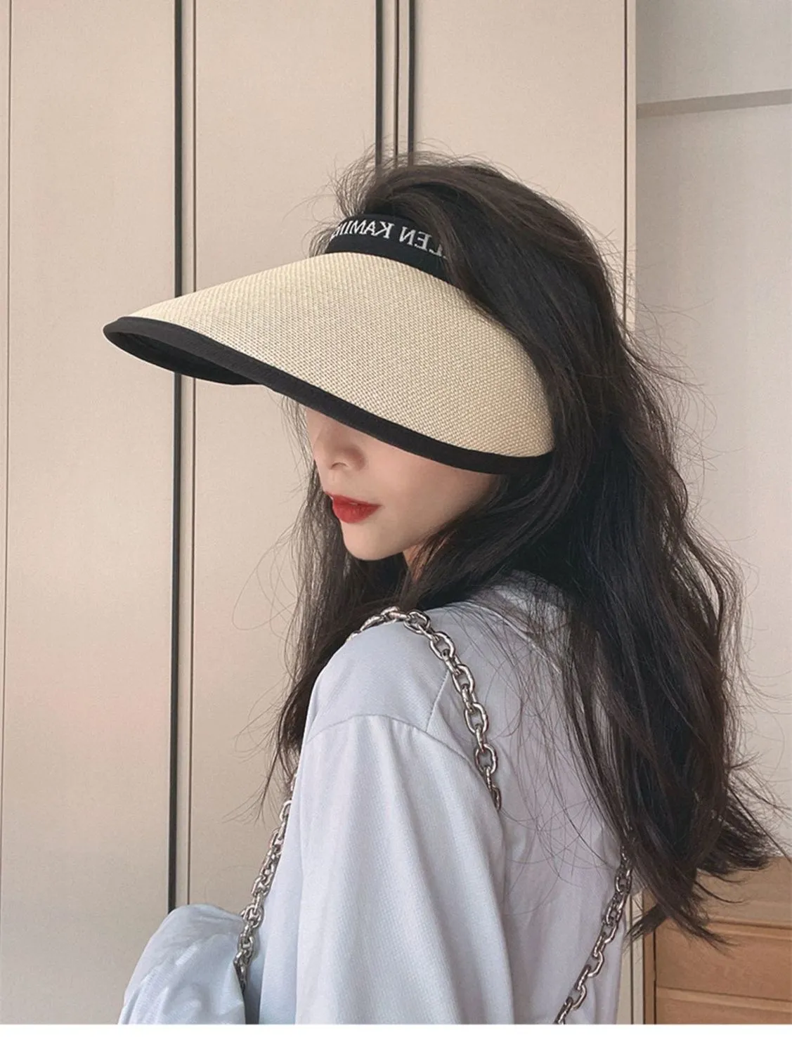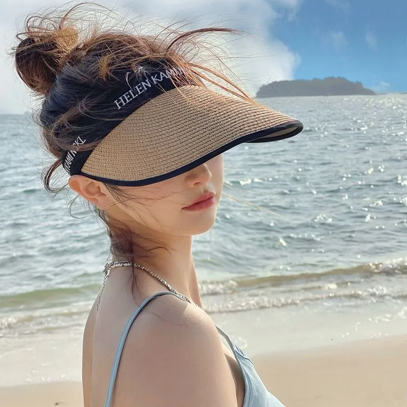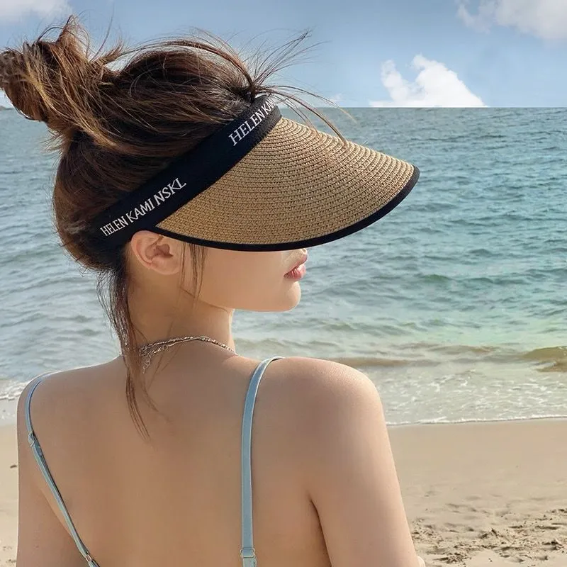 防晒遮阳帽度假空顶豪华休闲ins太阳帽子遮阳帽草编大檐沙滩遮阳