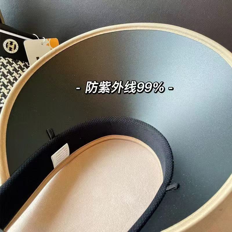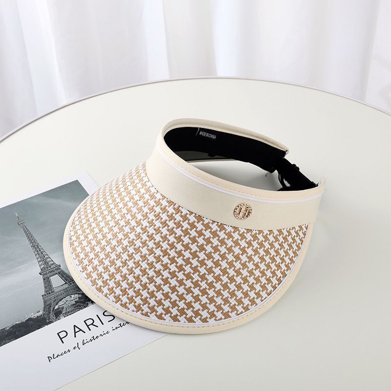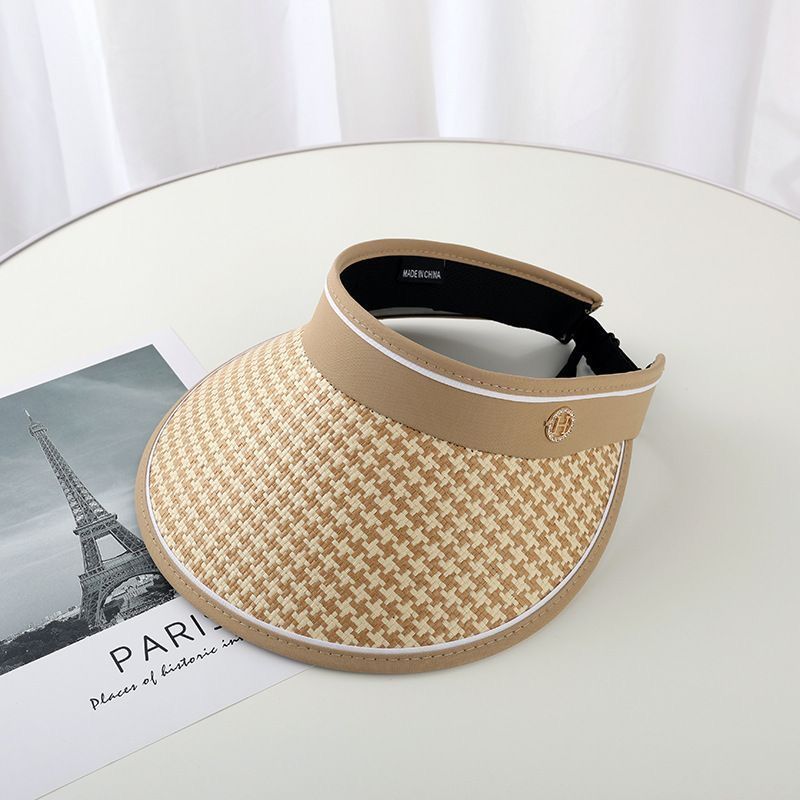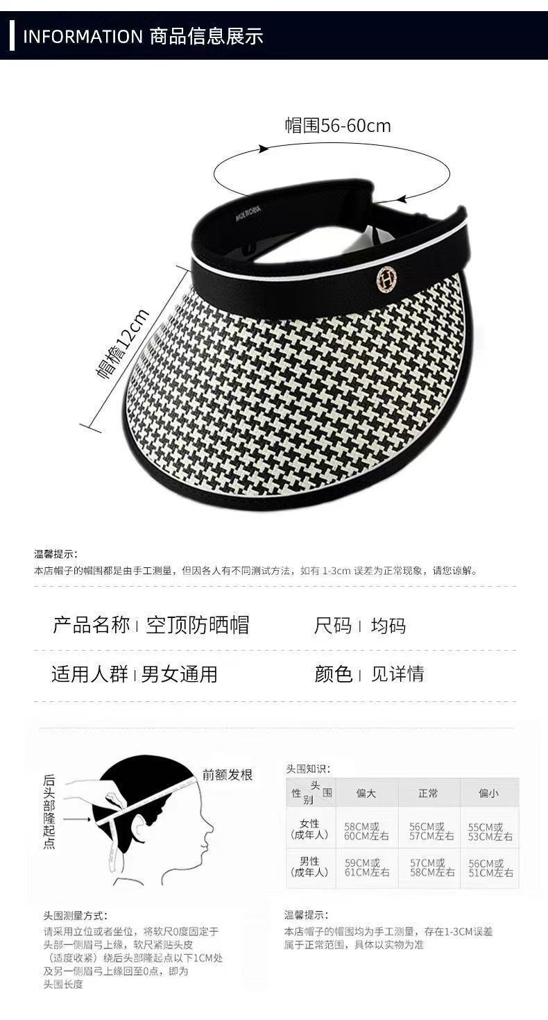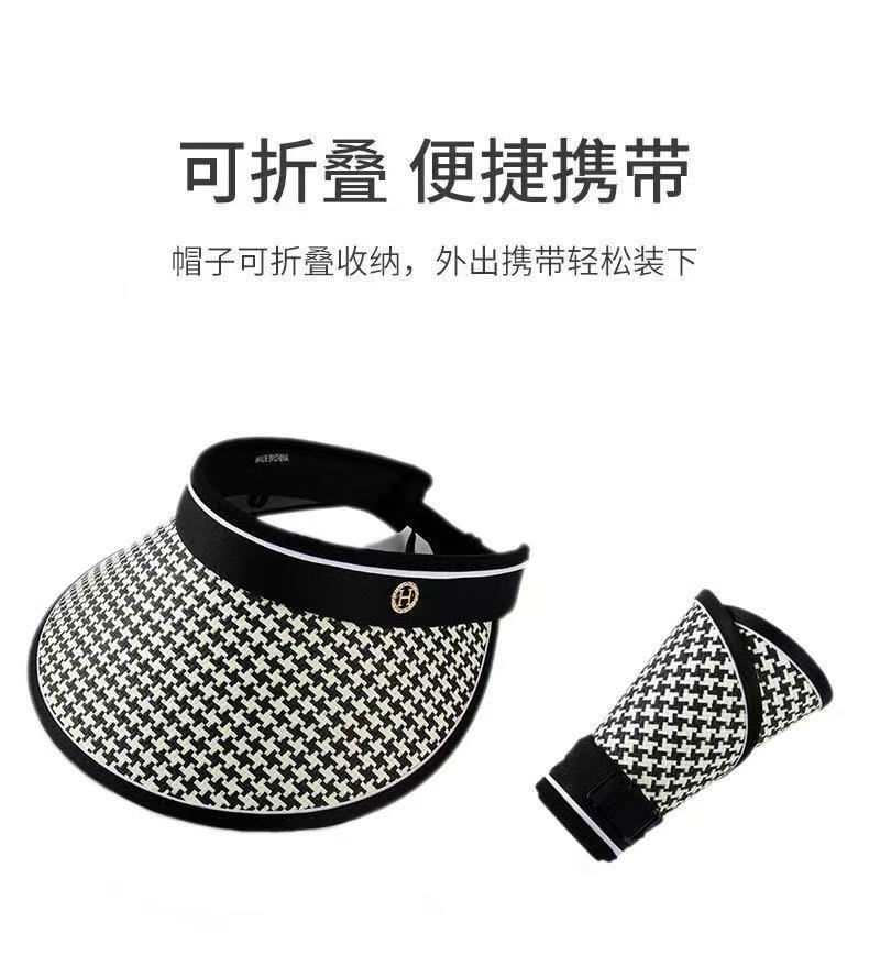 夏季大檐千鸟格太阳帽户外遮阳帽空顶防晒帽子草编防紫外线遮阳帽