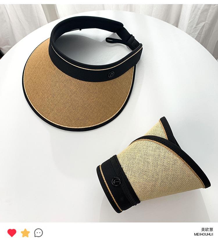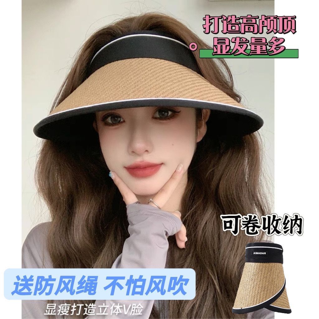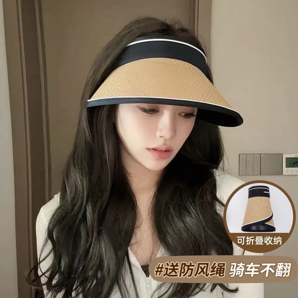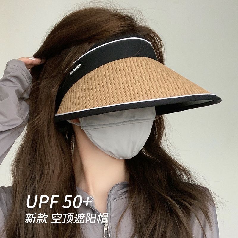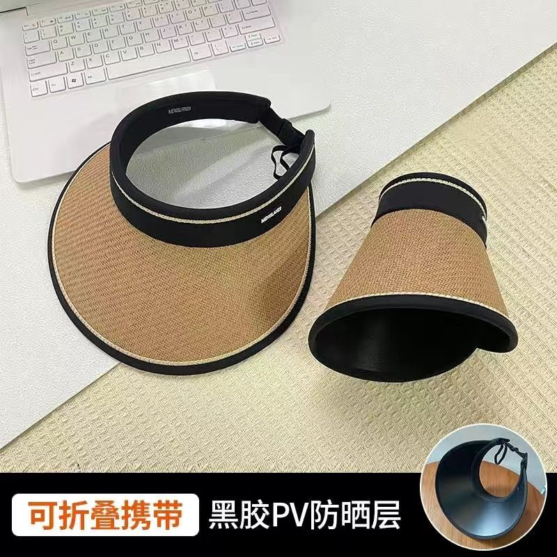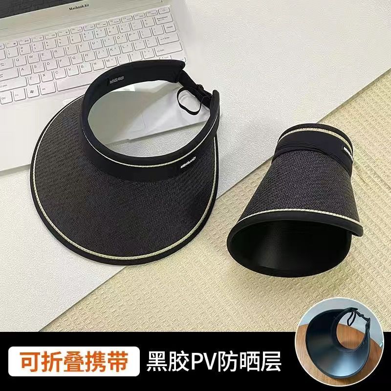 大帽檐防晒帽女夏出游防紫外线太阳帽遮脸黑胶空顶草帽骑车遮阳帽
