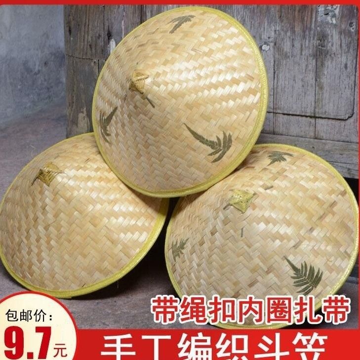 斗笠竹编防雨防晒草帽男士钓鱼遮阳竹编斗笠帽农民户外凉帽采茶帽