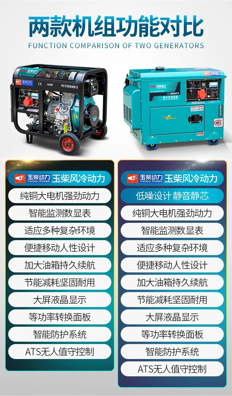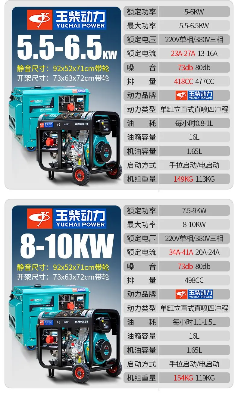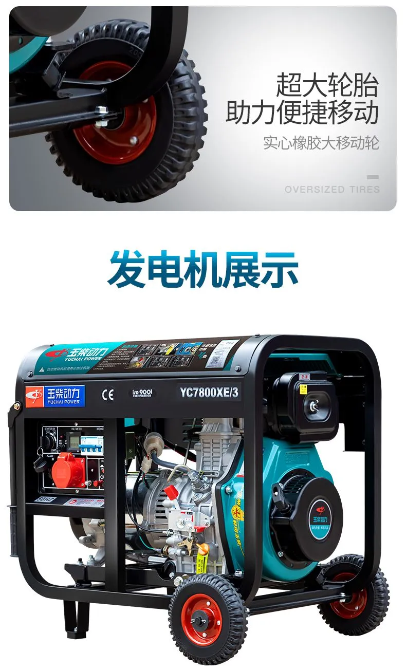 玉柴动力柴油发电机5KW/6/8/10千瓦小型单相220V三380V家用双电压
