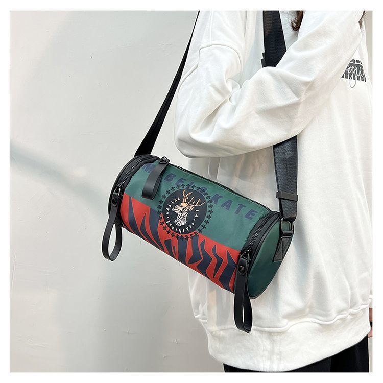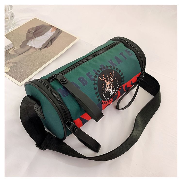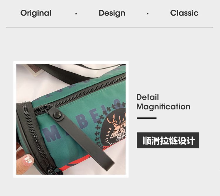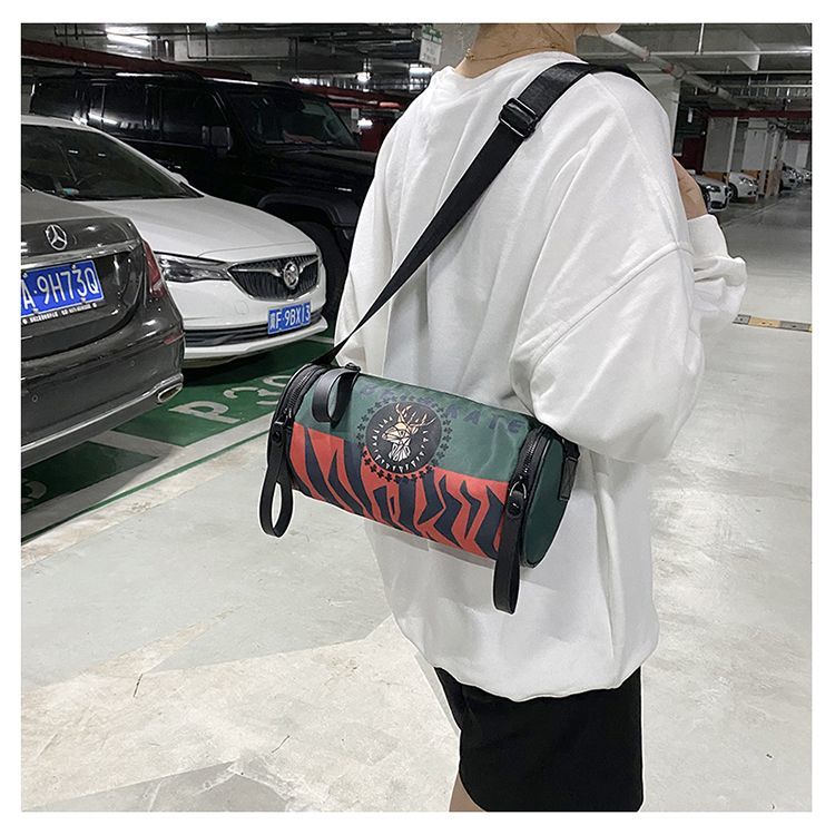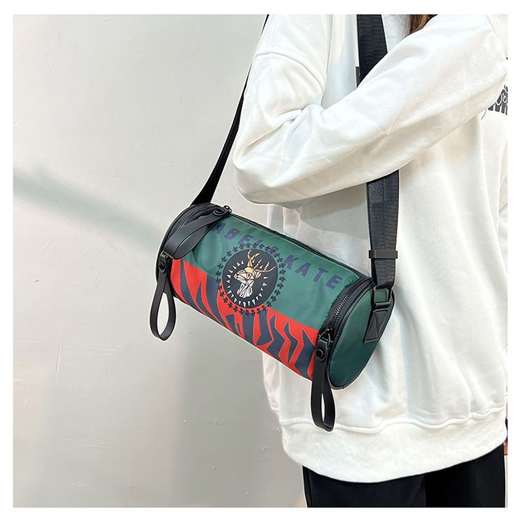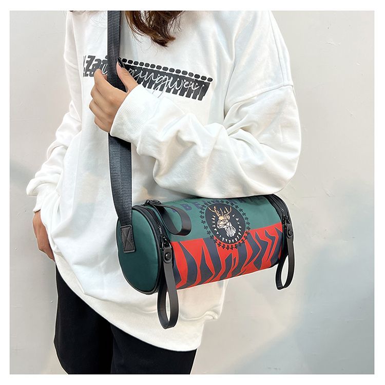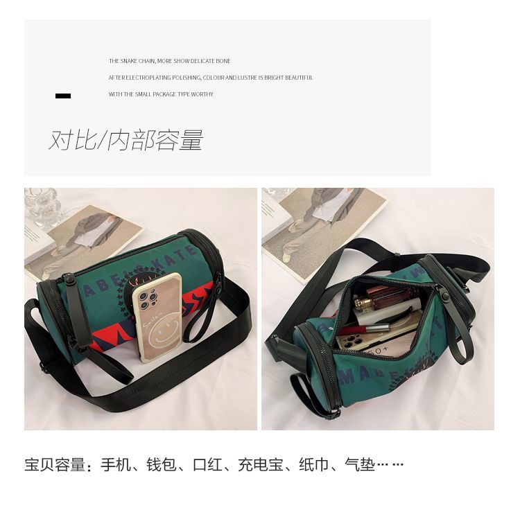 2022新款潮牌爆款包包女时尚帆布斜挎包胸包休闲大容量尼龙圆筒包
