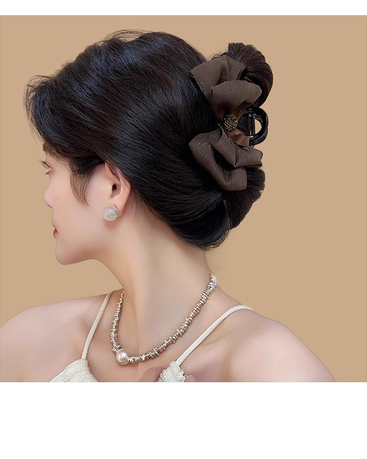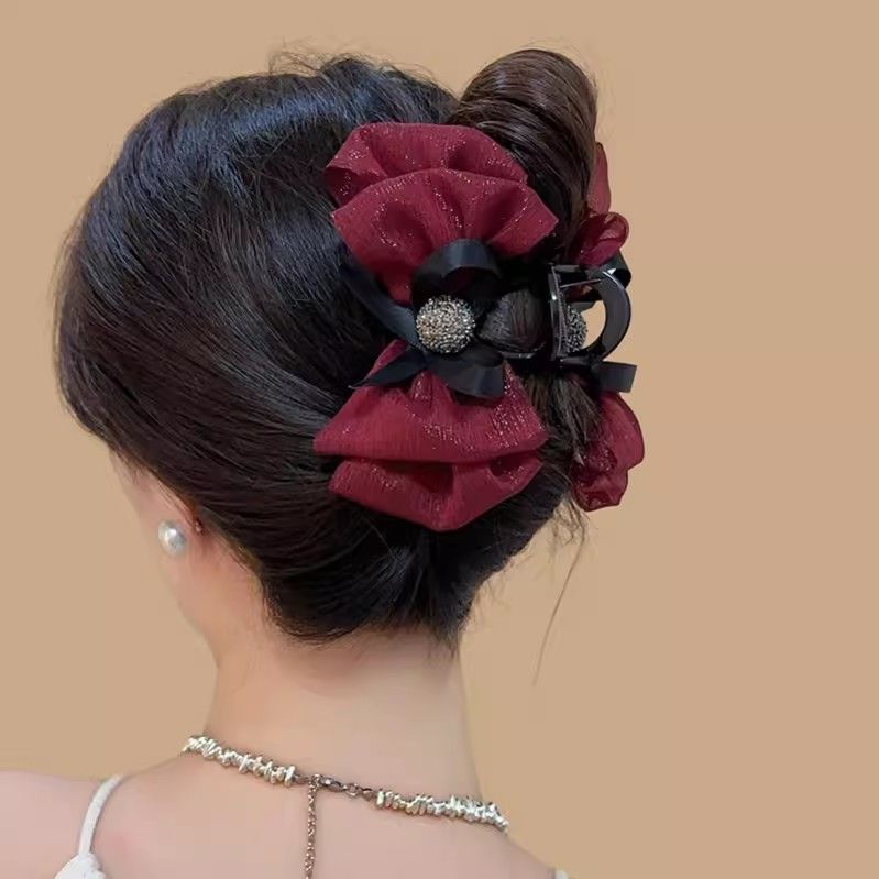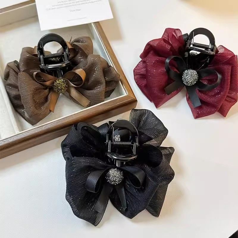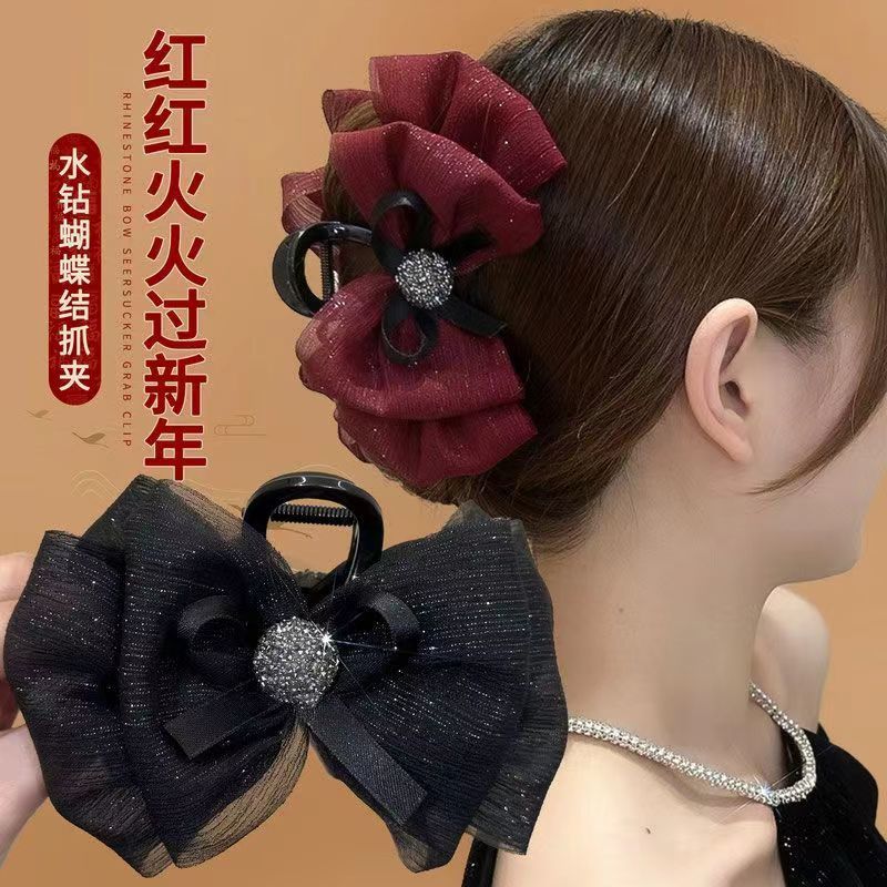 2024新款蝴蝶结抓夹女高级感泡泡纱发夹发卡后脑勺丸子头夹子发饰