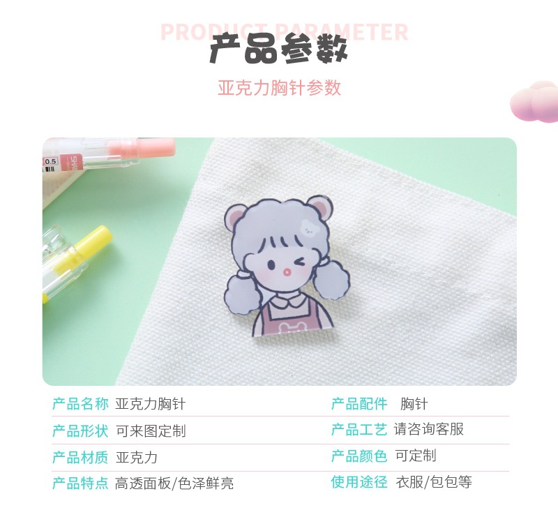 学生配饰亚克力胸针 创意可爱卡通胸针 个性包包服饰配饰徽章批发