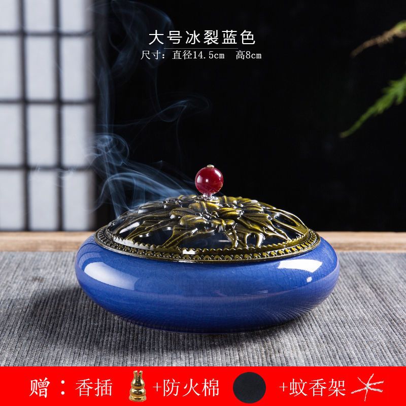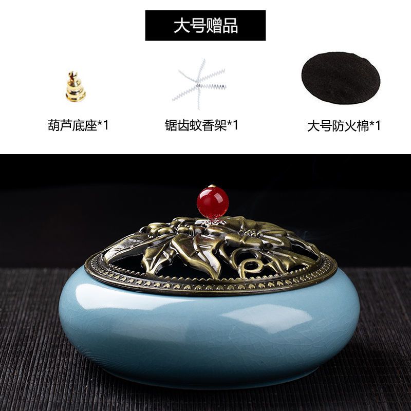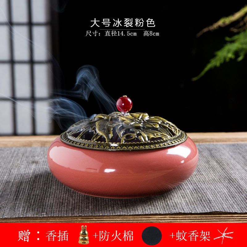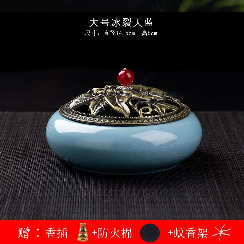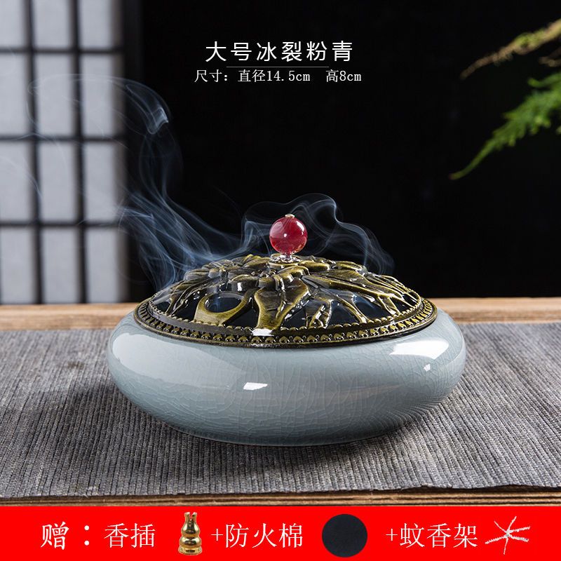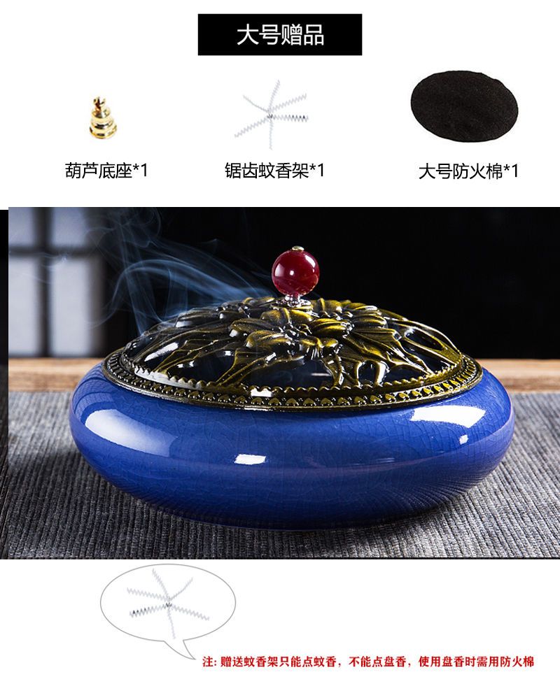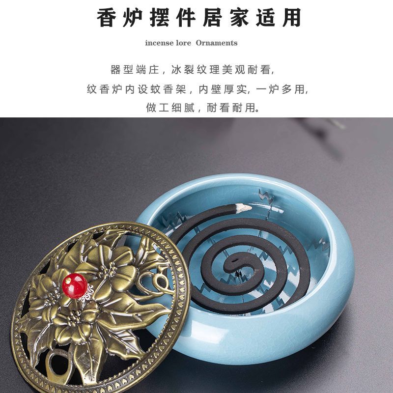 蚊香炉家用大号陶瓷创意底座仿古冰裂窑变盘香檀香线香炉蚊香摆件