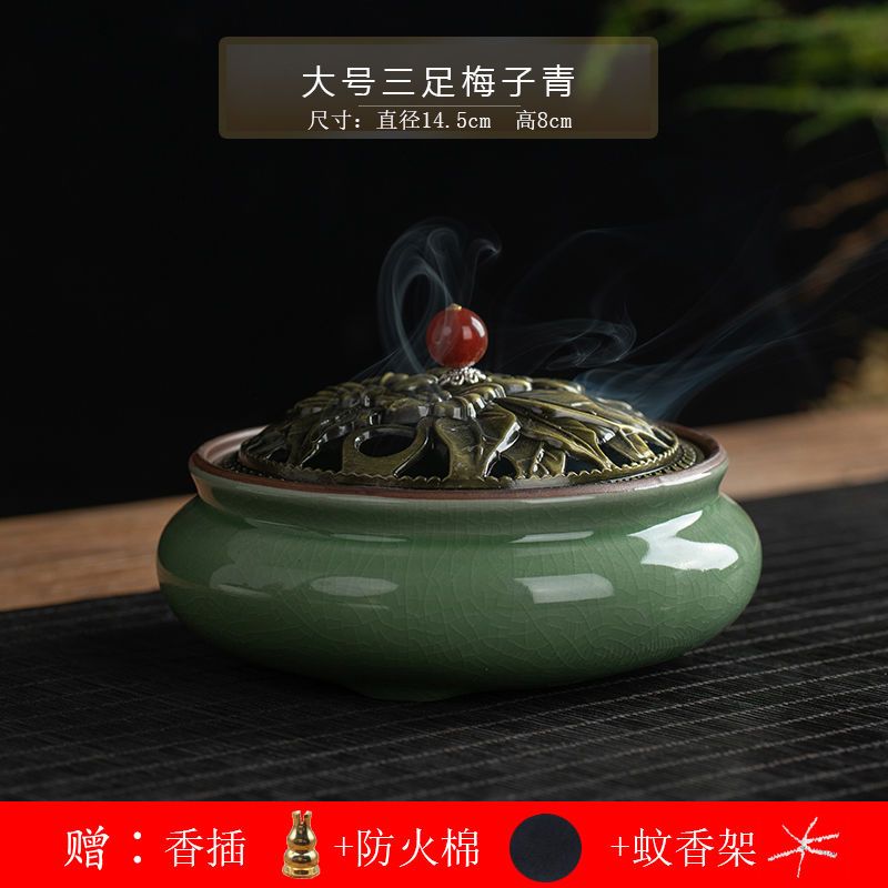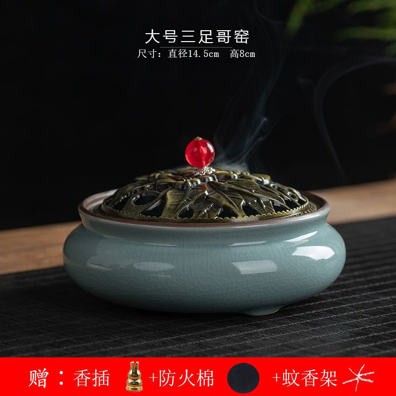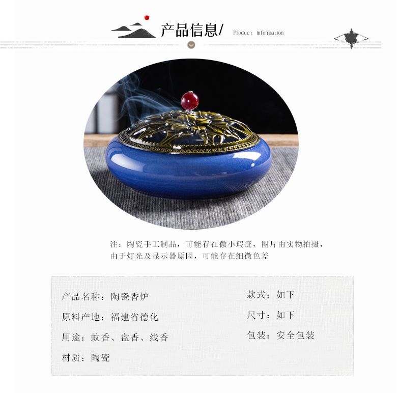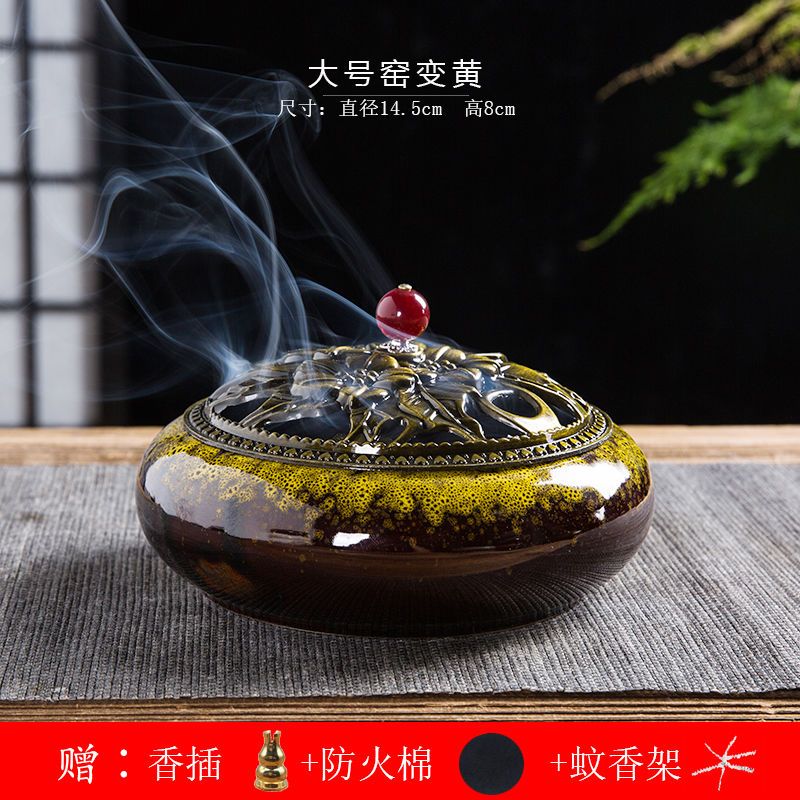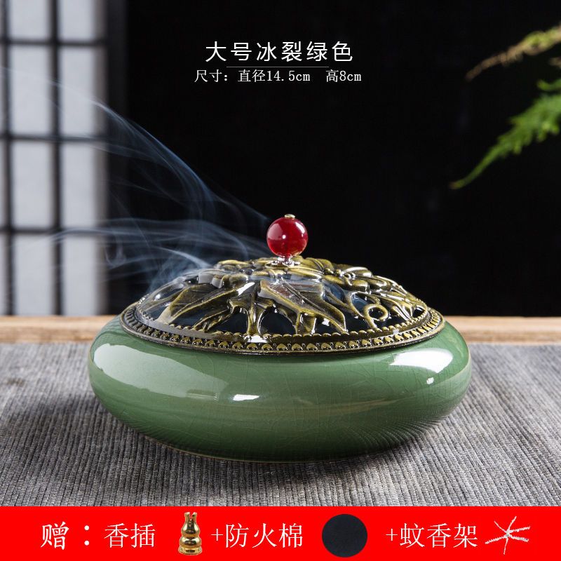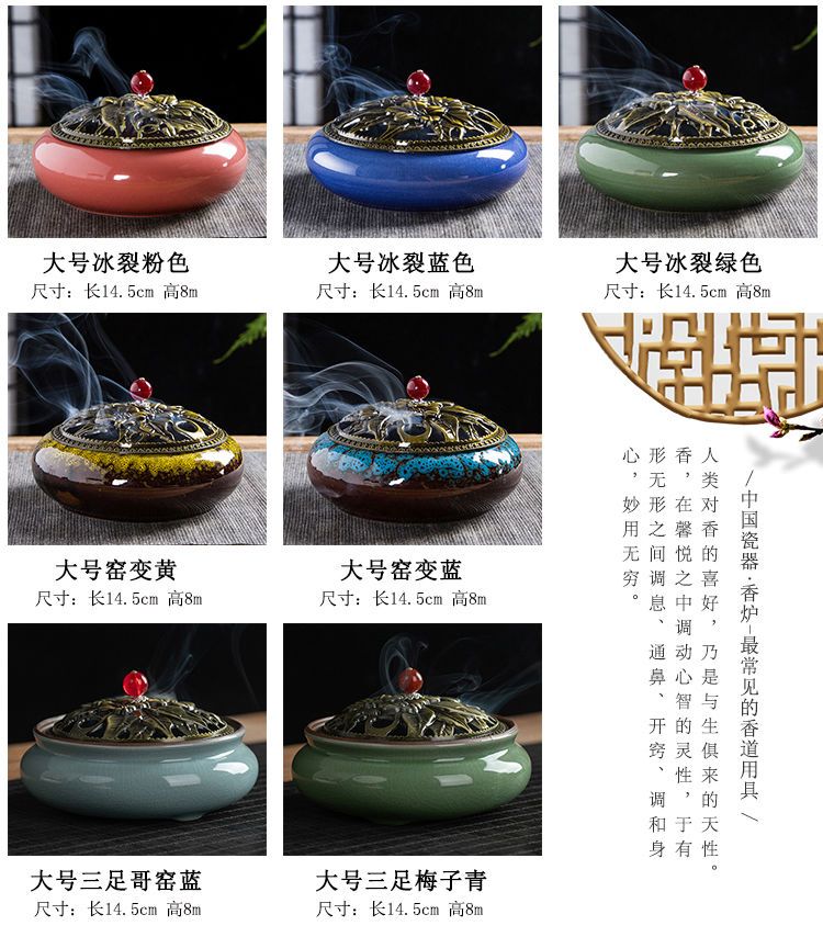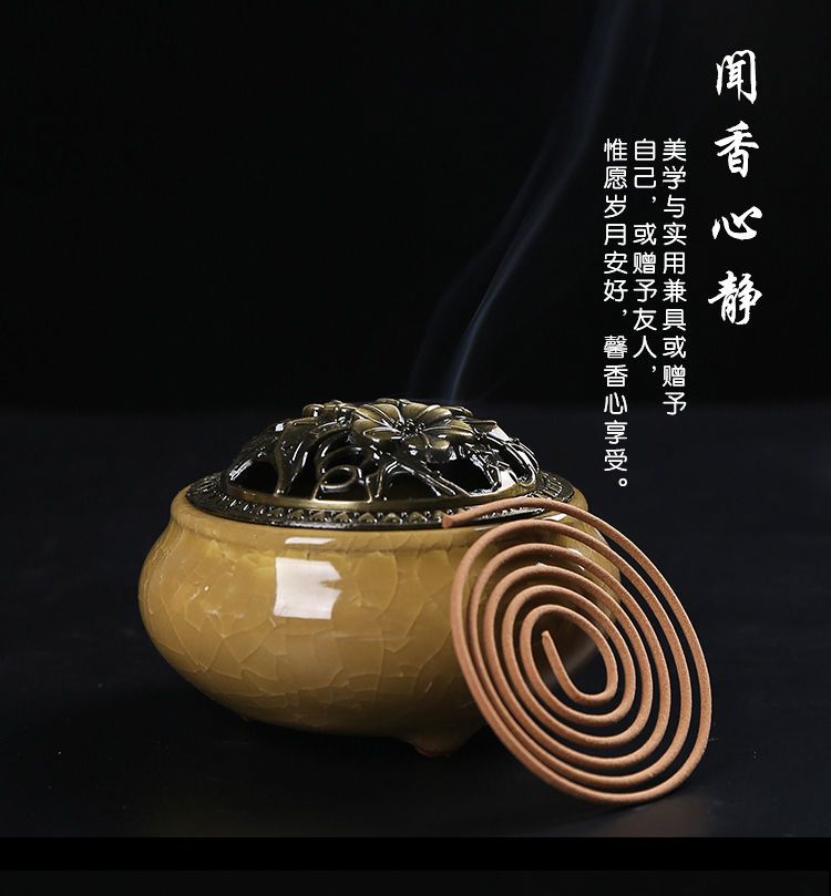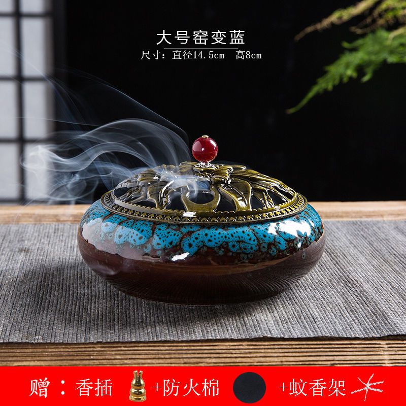 蚊香炉家用大号陶瓷创意底座仿古冰裂窑变盘香檀香线香炉蚊香摆件