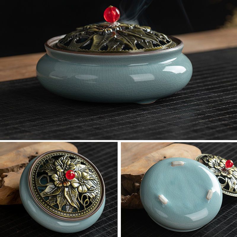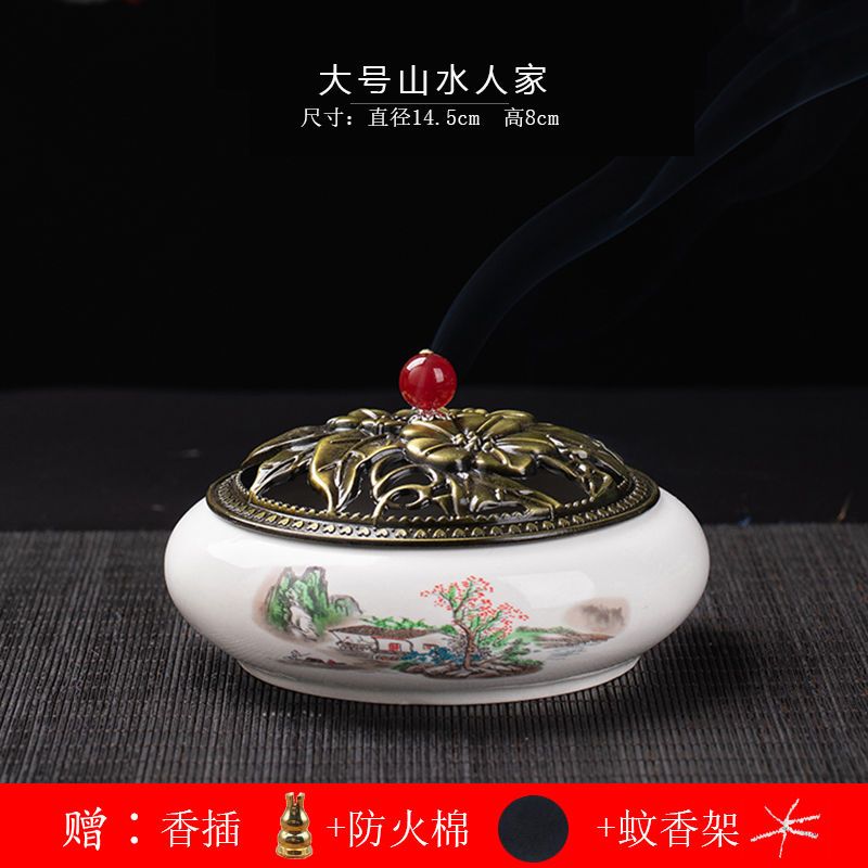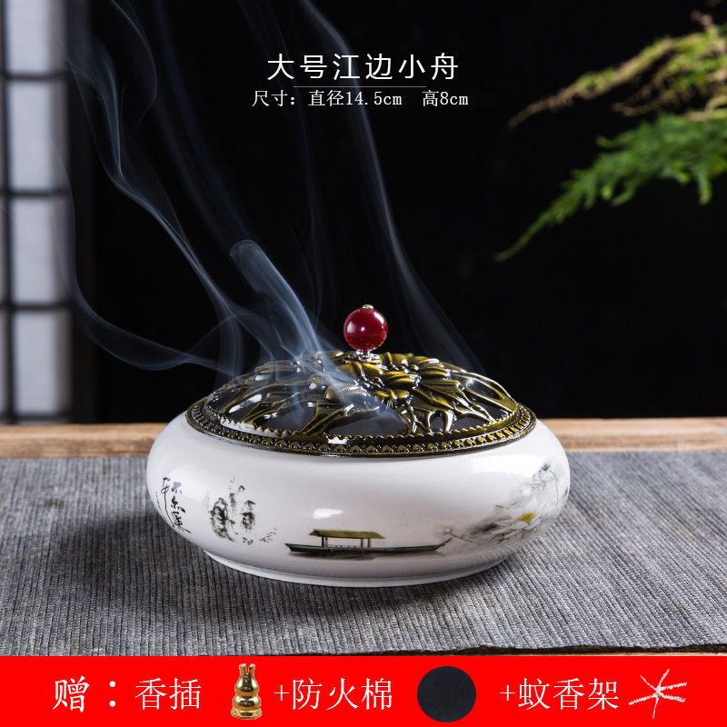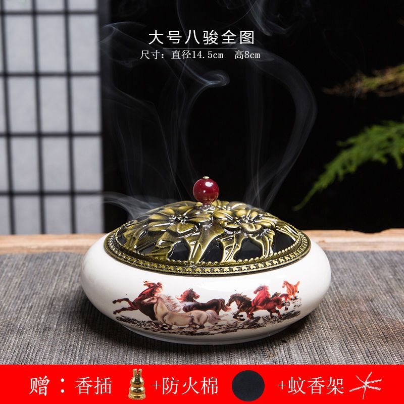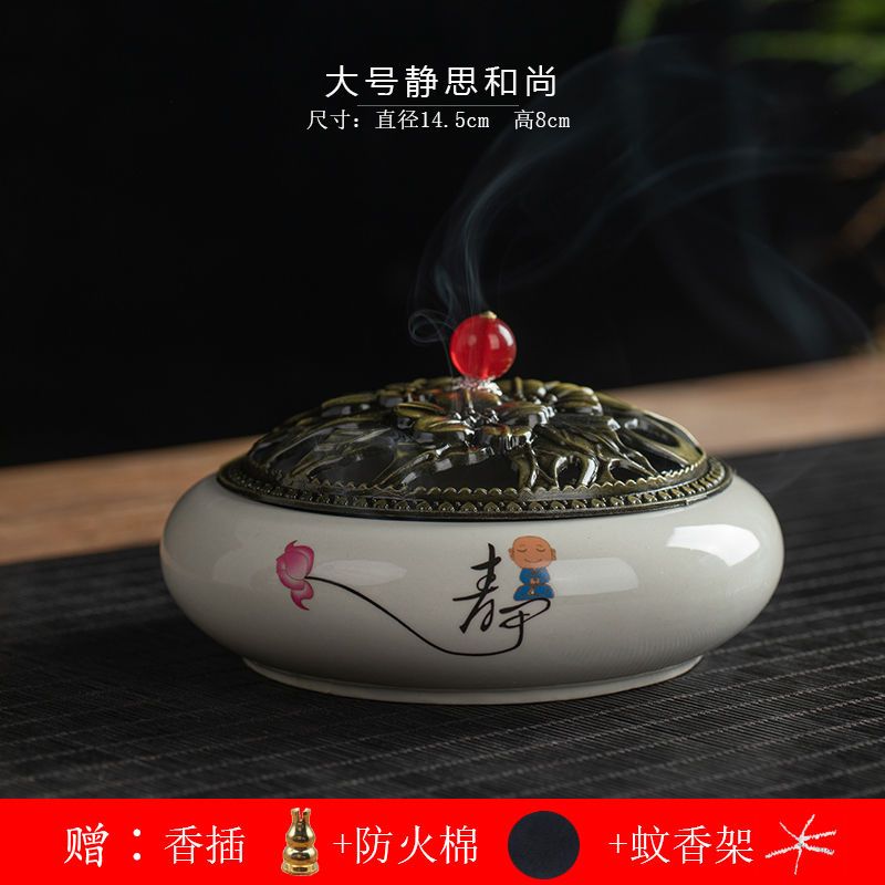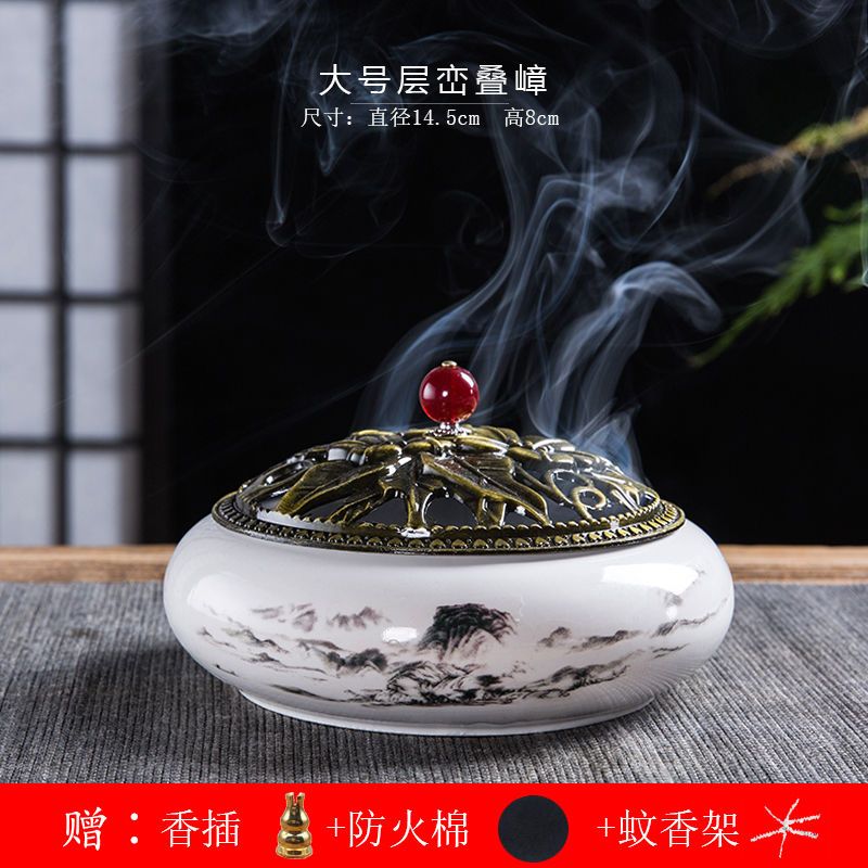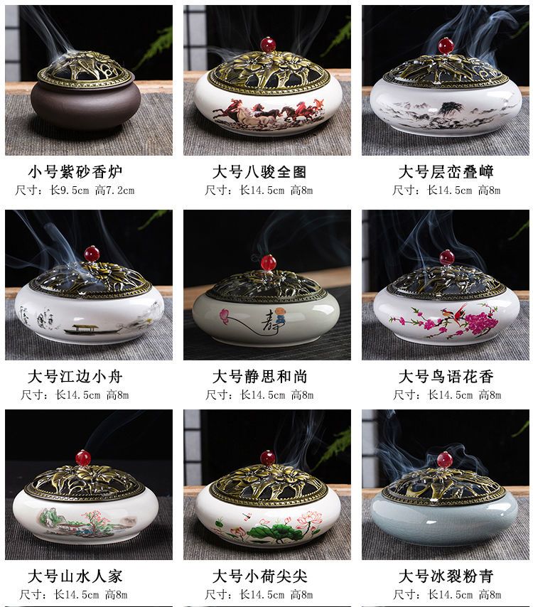 蚊香炉家用大号陶瓷创意底座仿古冰裂窑变盘香檀香线香炉蚊香摆件