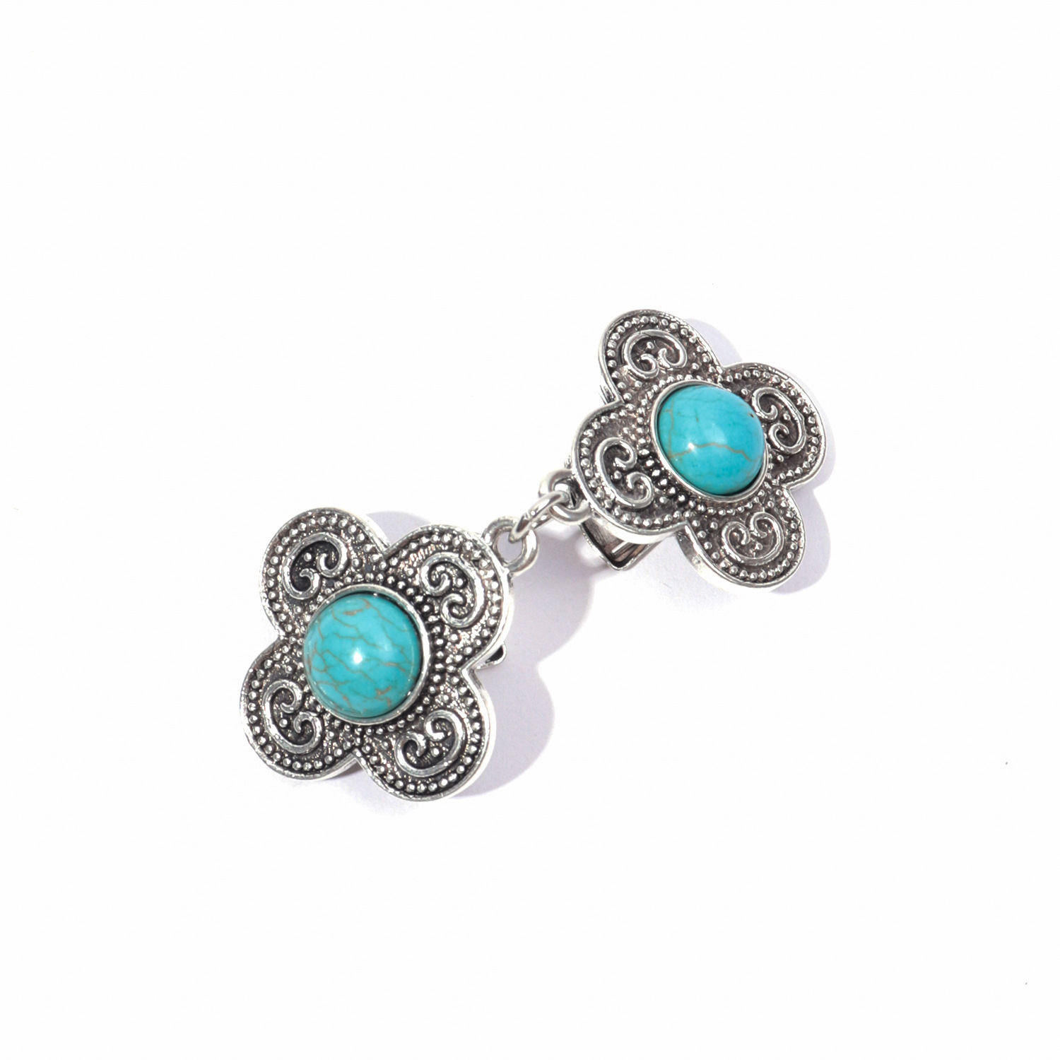 跨境时尚绿松石披肩夹复古几何形丝巾夹古风包包衣领夹套装现货