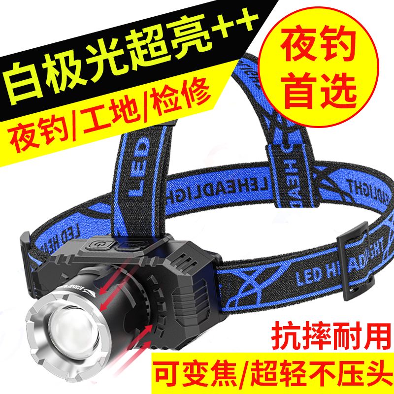 LED疝气头灯强光可充电防水远射头戴式手电筒超亮工作钓鱼矿灯
