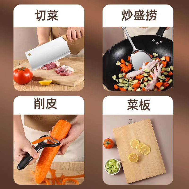 菜刀菜板全套厨房刀具不锈钢家用菜刀竹木菜板锋利水果刀菜板套装