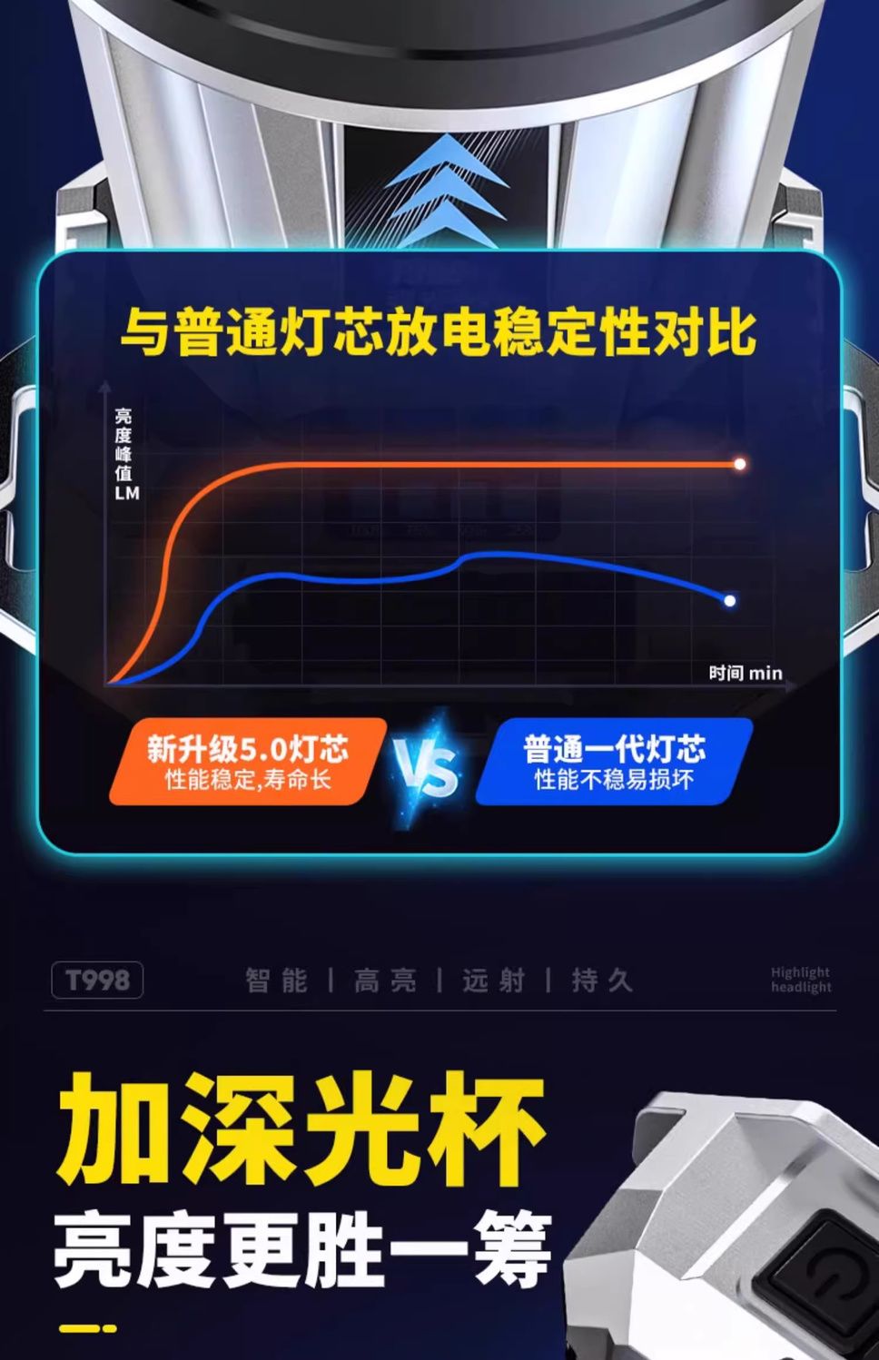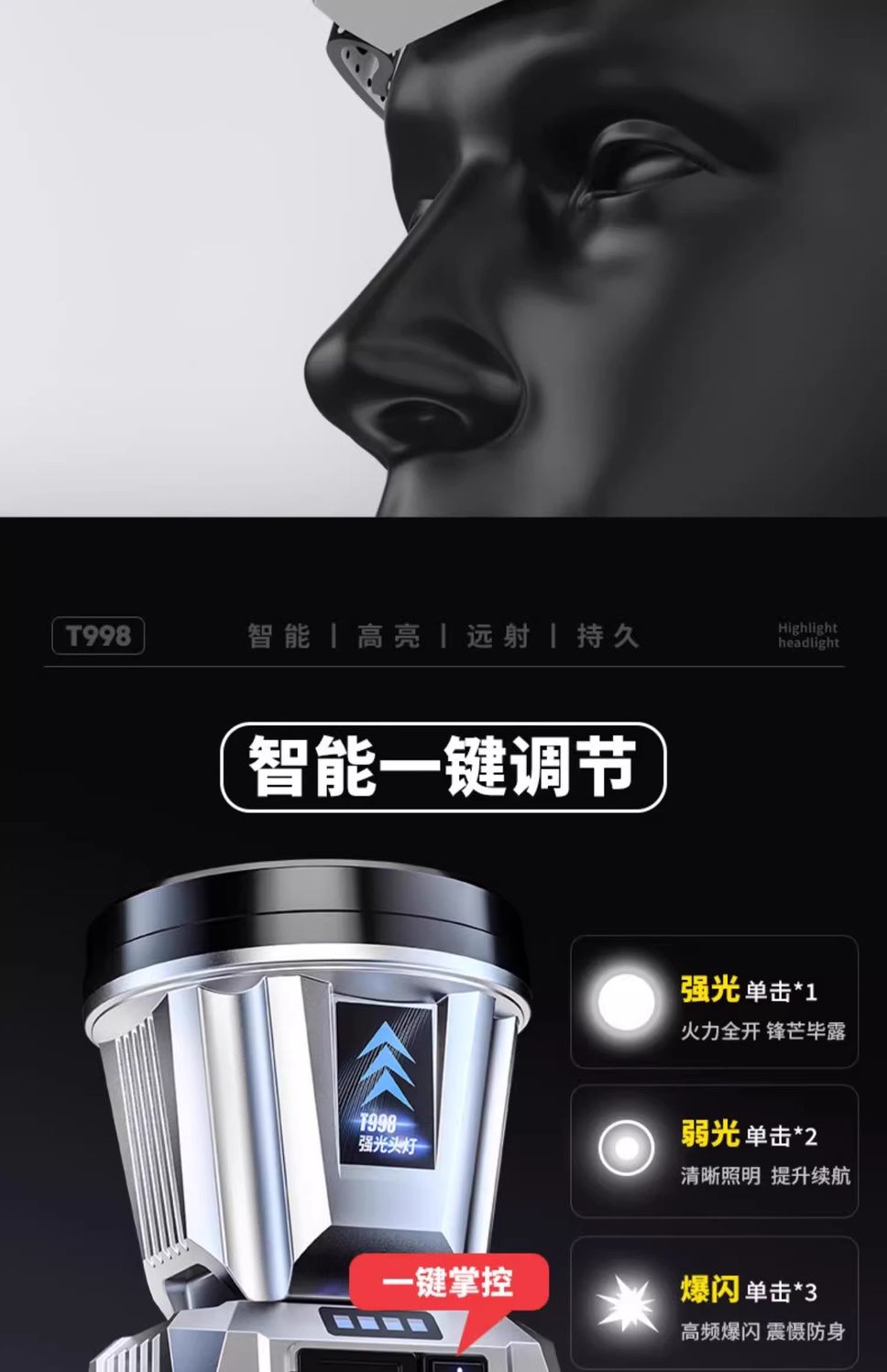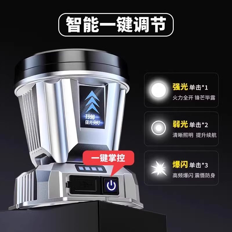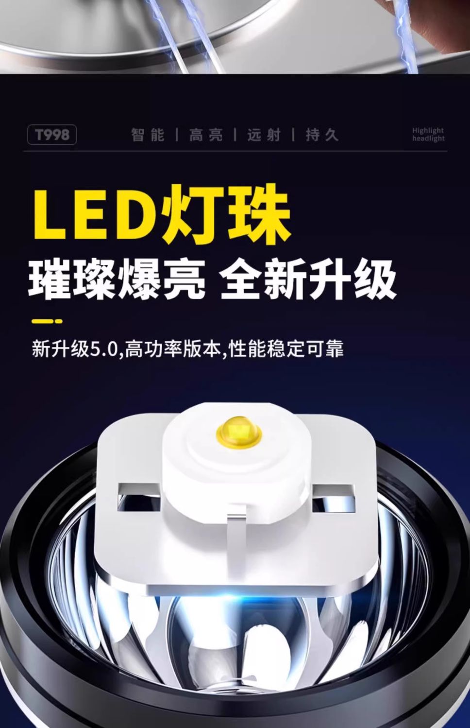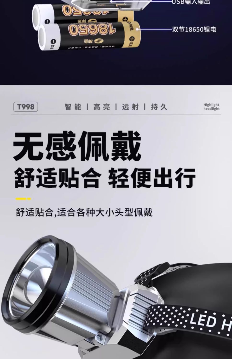 LED头灯强光远射可充电防水超亮头戴式户外矿灯超长续航手电筒