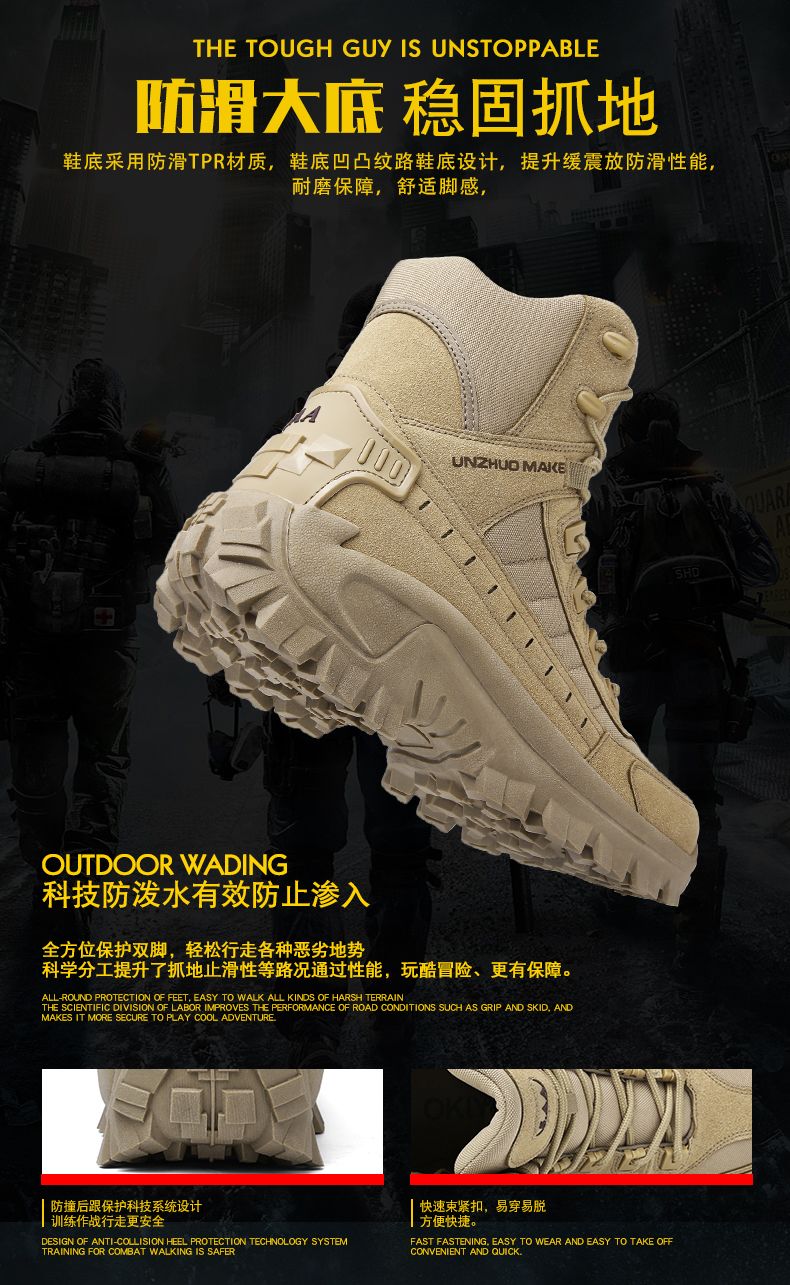 户外登山鞋男新款徒步鞋透气高帮防滑防撞减震耐磨战术沙漠靴