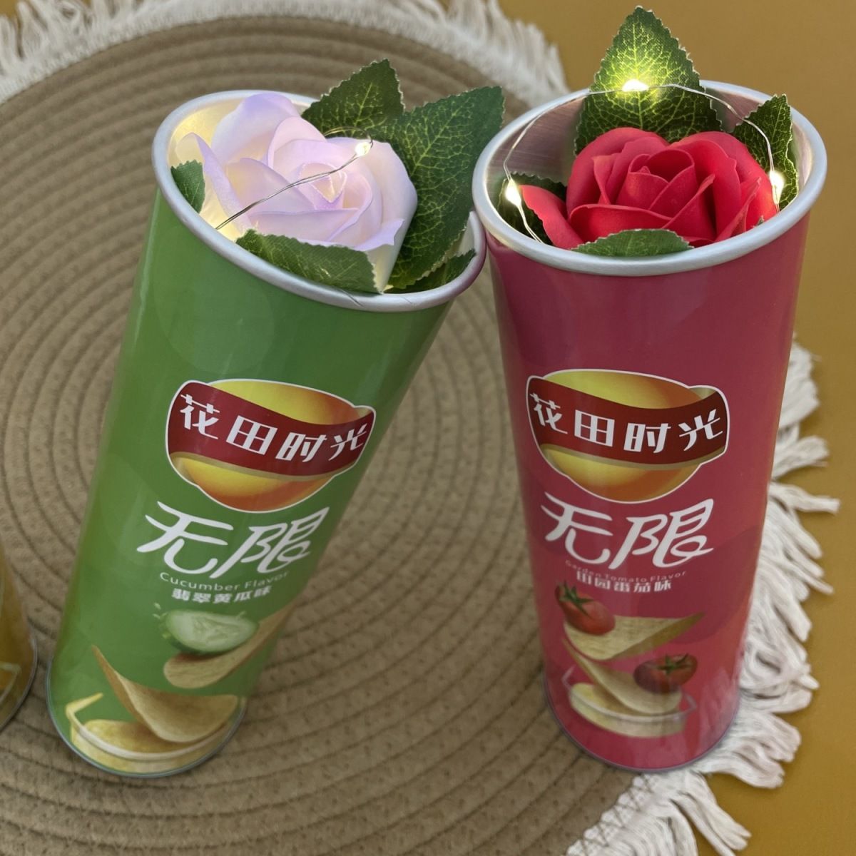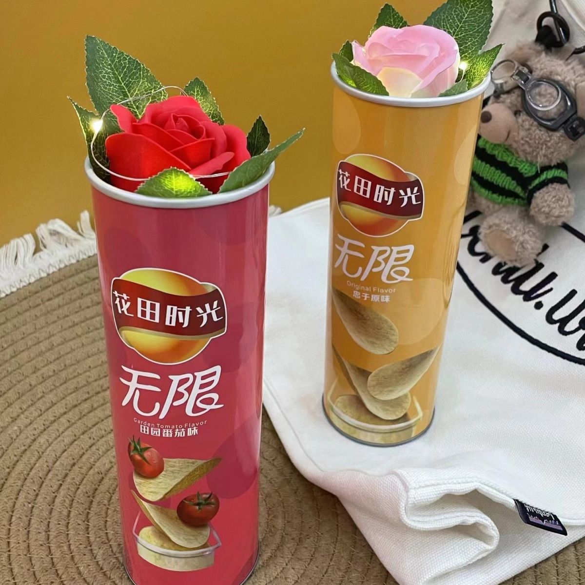 薯片罐装花永不凋零的花生日礼物送女生长辈节日礼物圣诞惊喜礼盒