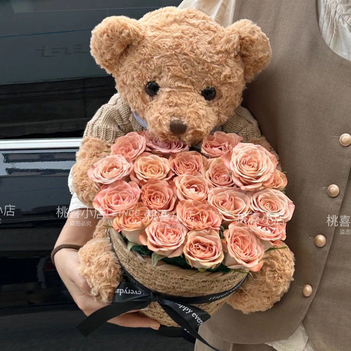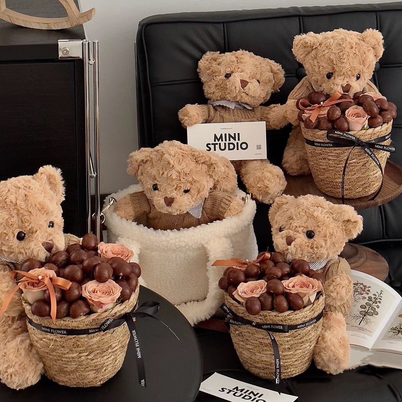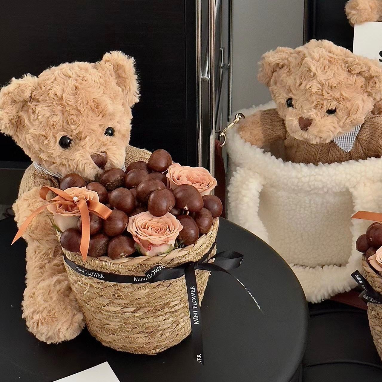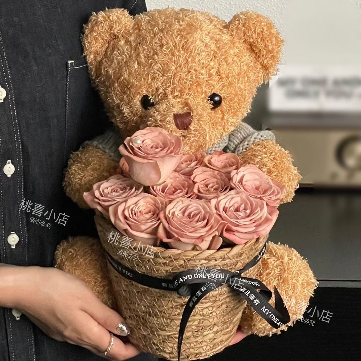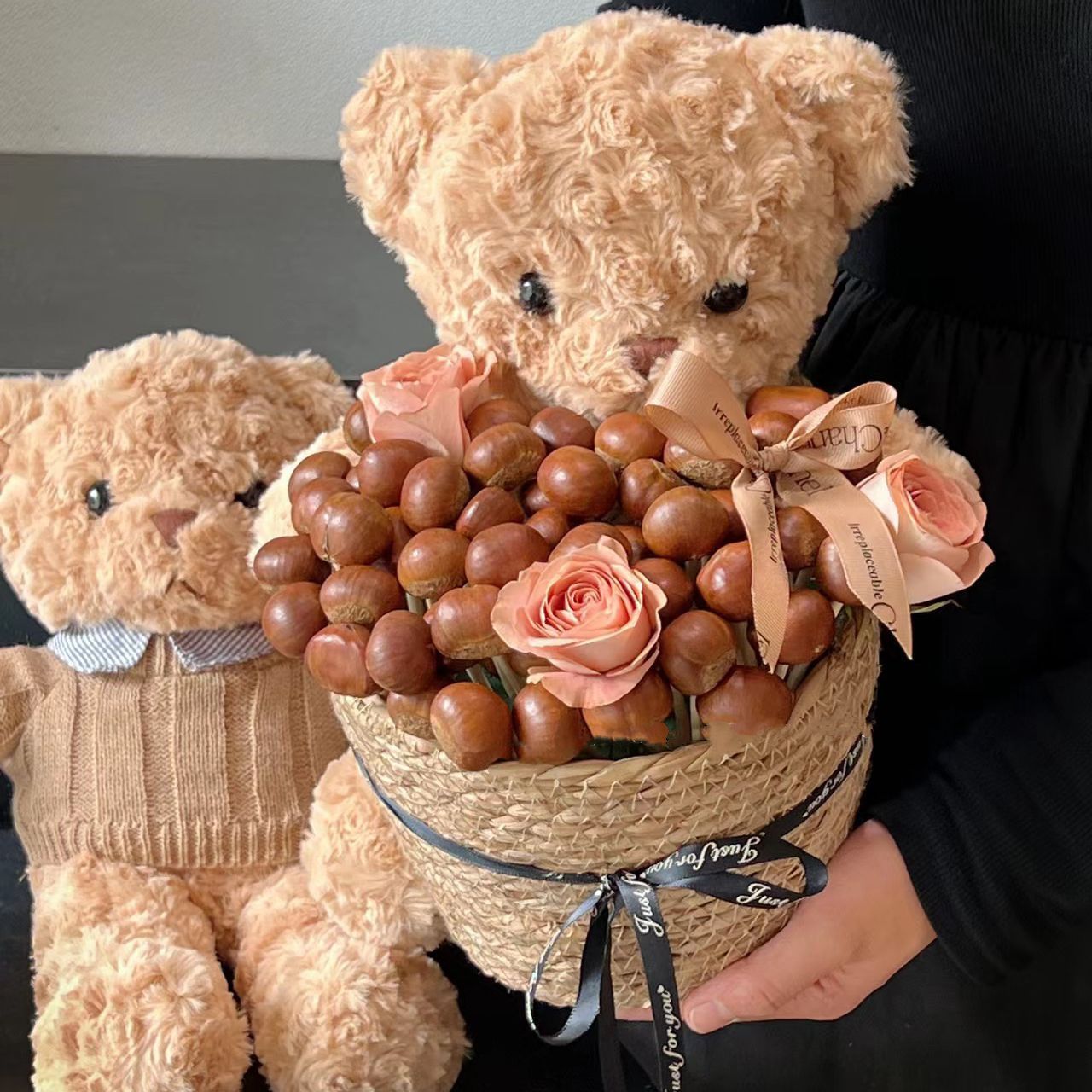 圣诞节礼物板栗小熊抱抱桶玩偶花束永生花送闺蜜生日礼物女生朋友