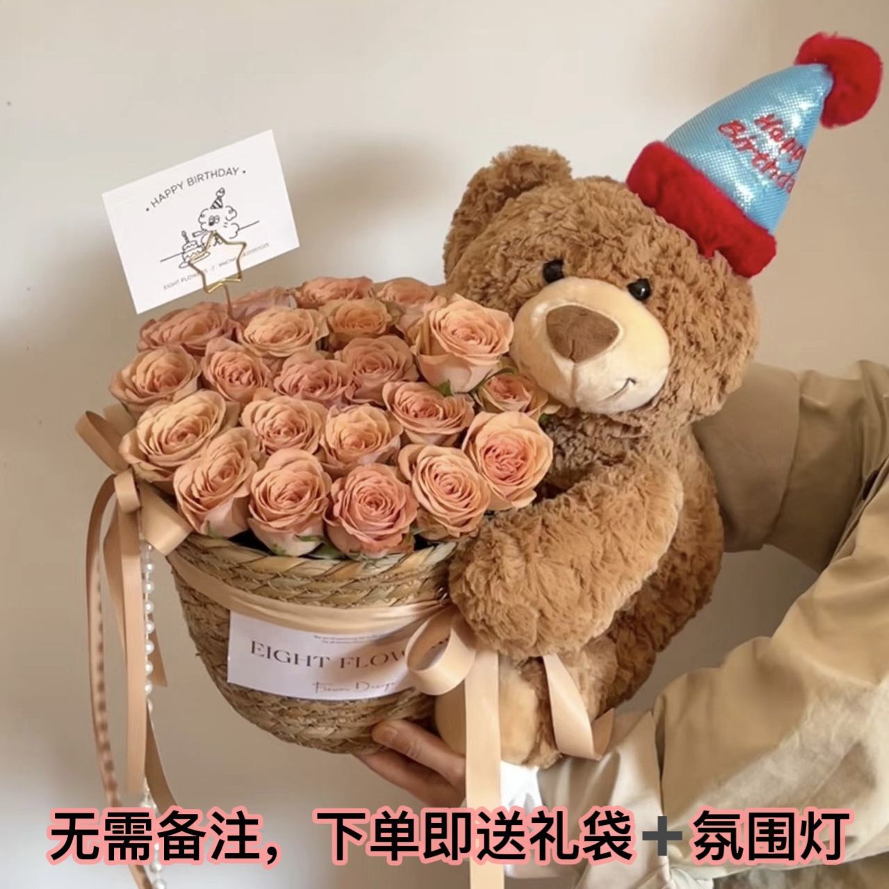 | 28cm birthday bear +11 flower baskets + gift bag lights(28cm生日小熊+11朵花篮+礼袋灯) | USD $7.16 | 999999 piece available |