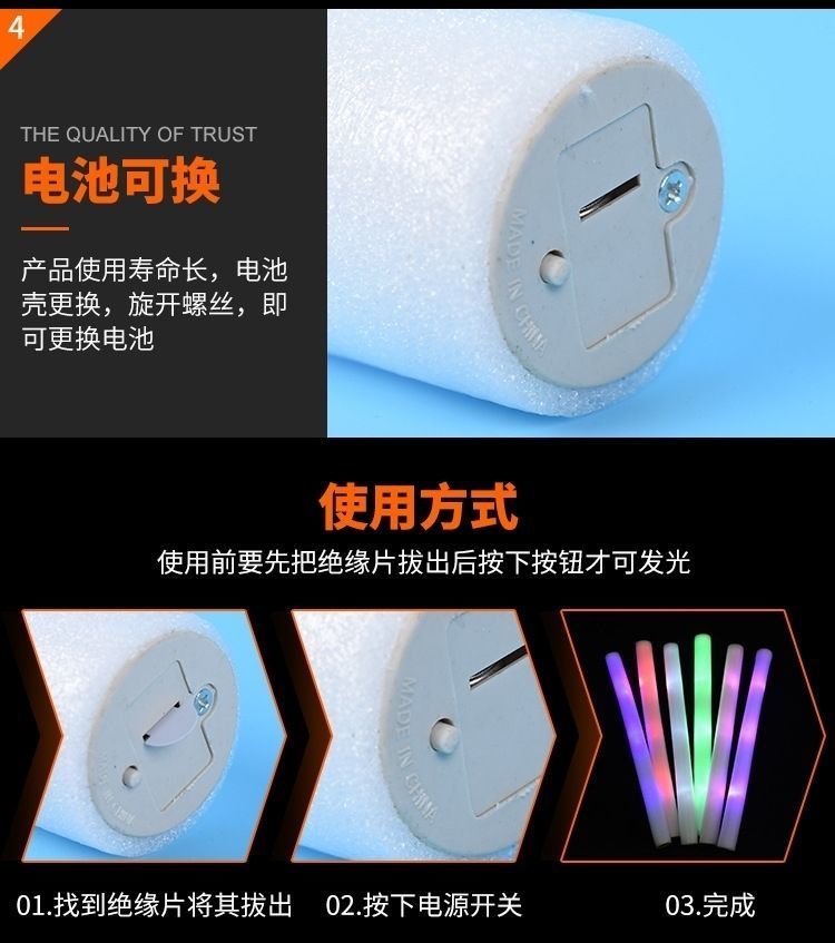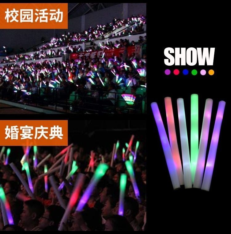 七彩海绵荧光棒批发大号演唱会酒吧道具闪光棒夜光棒应援棒定制款