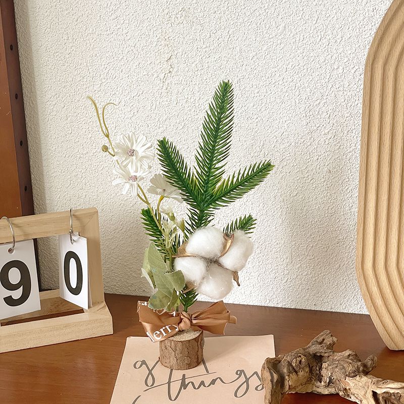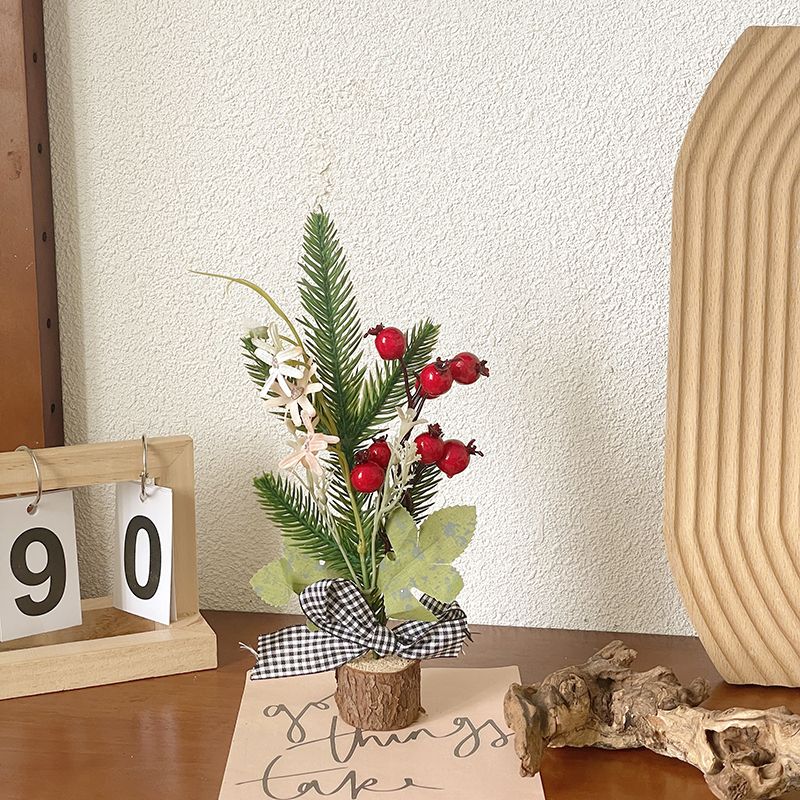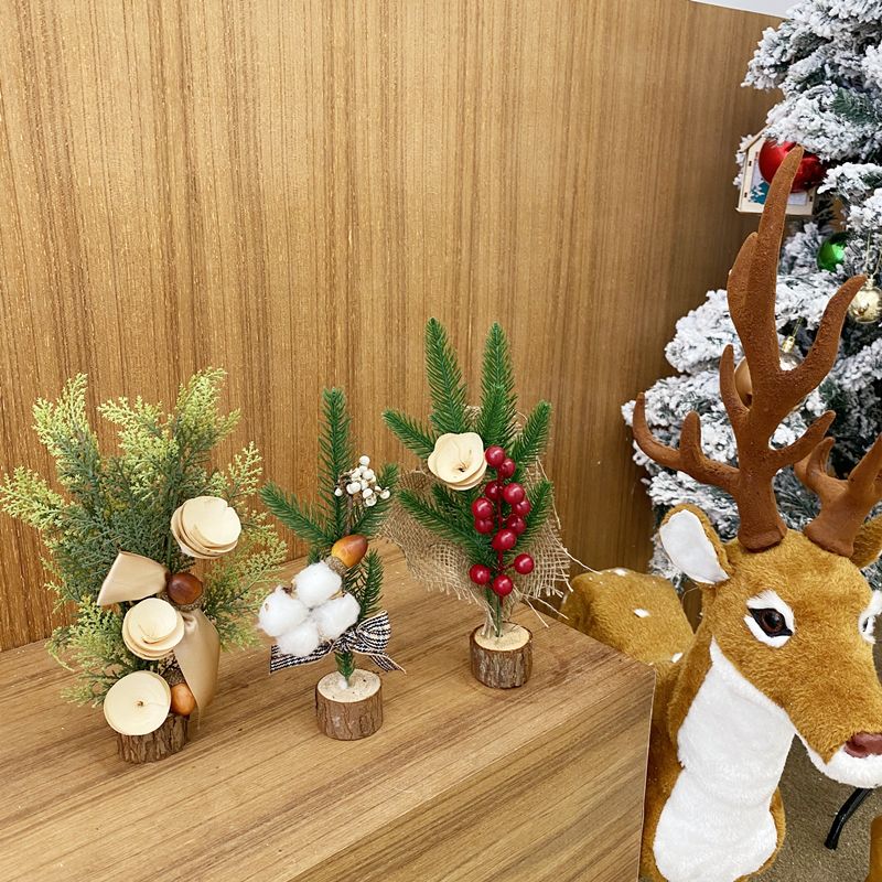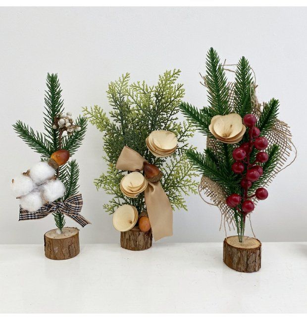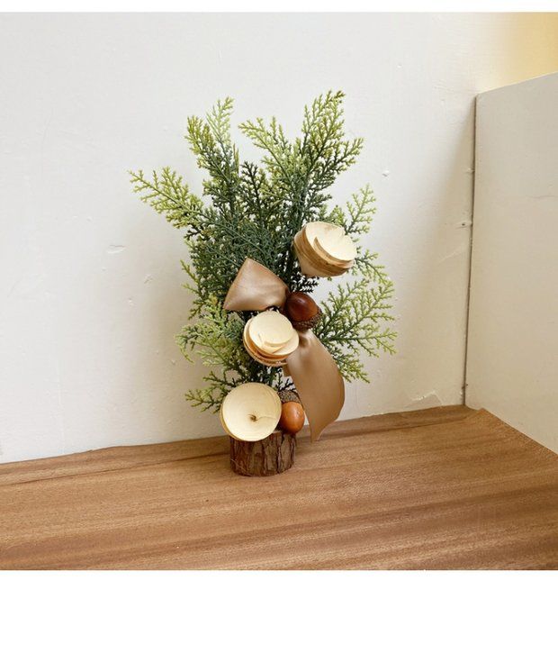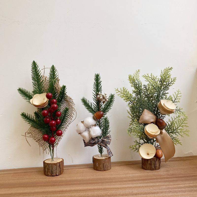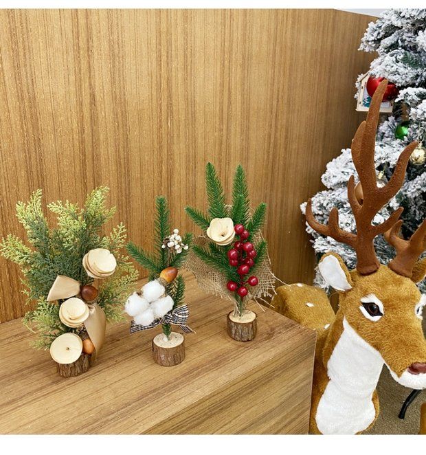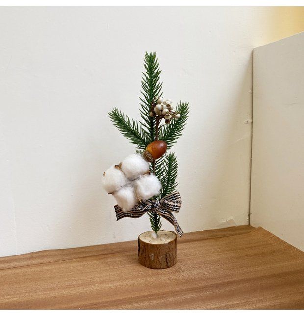 ins复古松果干花木质圣诞树摆件圣诞节礼物办公室桌面装饰品礼品