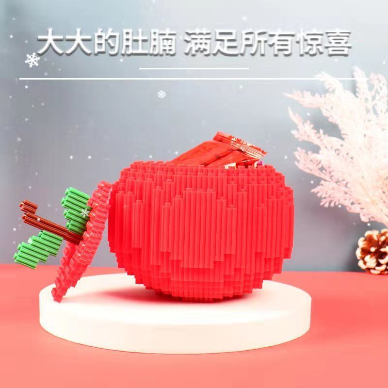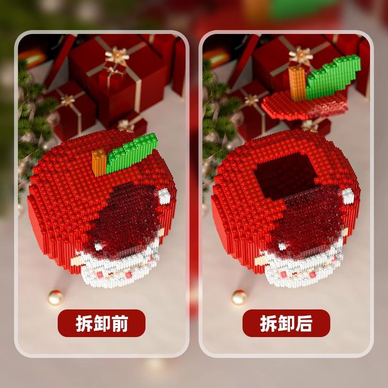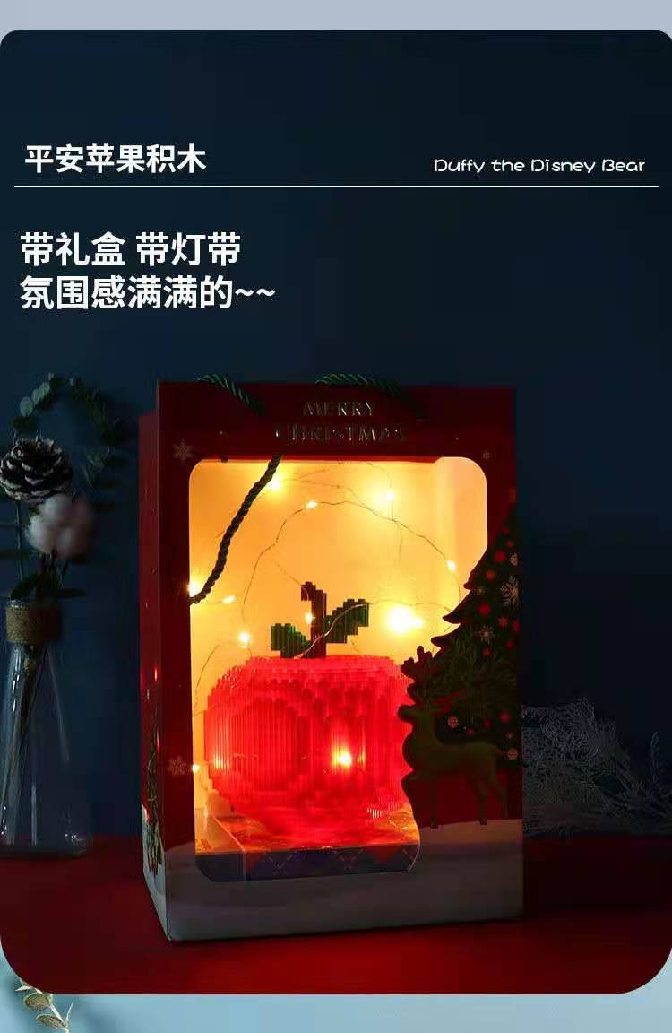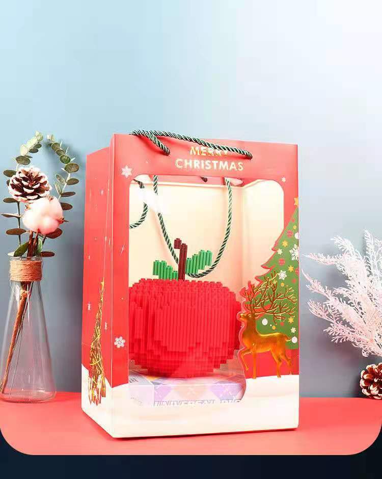 平安夜苹果积木兼容乐高积木拼插小颗粒造型钻石男女圣诞节小礼物