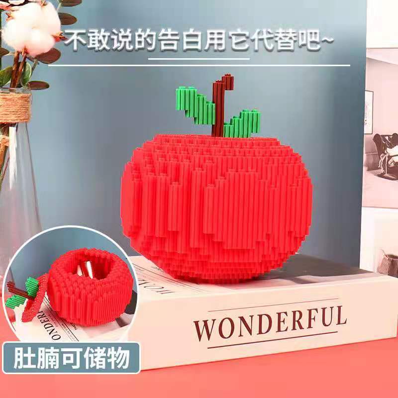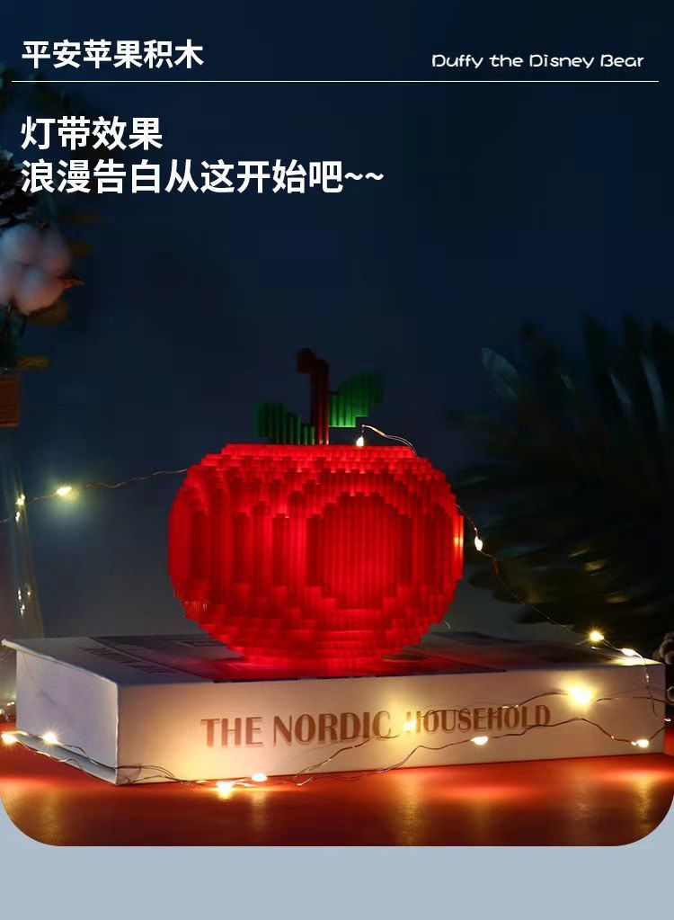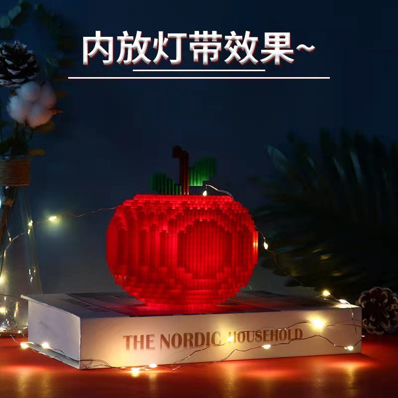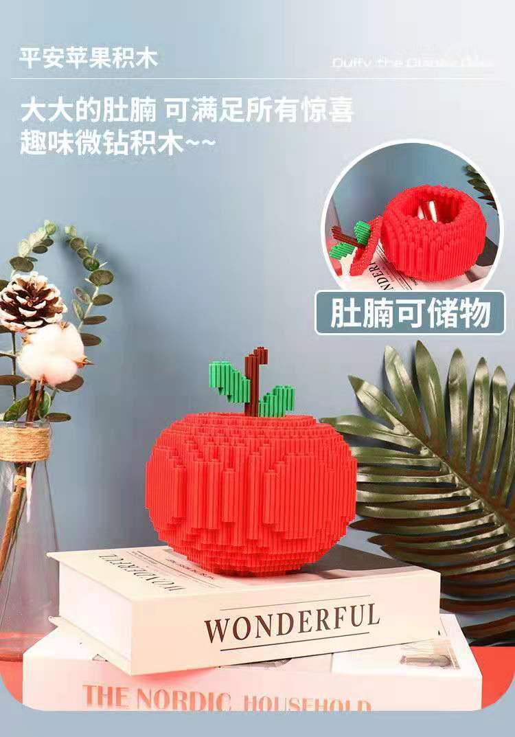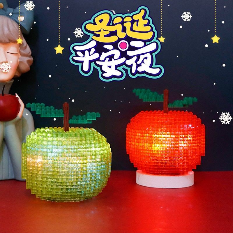 平安夜苹果积木兼容乐高积木拼插小颗粒造型钻石男女圣诞节小礼物