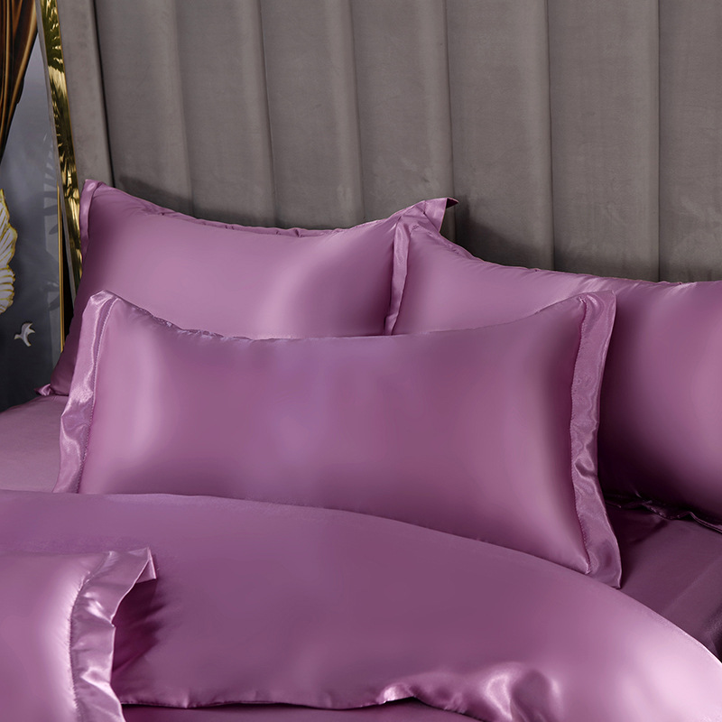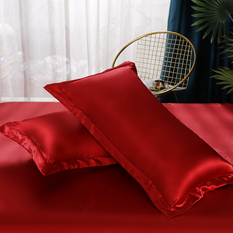 跨境外贸双面水洗仿真丝枕套人造丝色丁冰丝缎纯色仿真丝枕头套罩