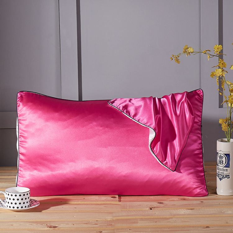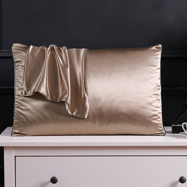 出口外贸纯色仿真丝枕头套单人丝绸枕巾色丁冰丝绸缎枕套