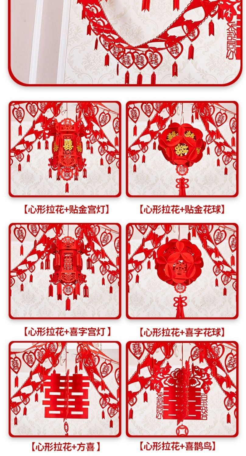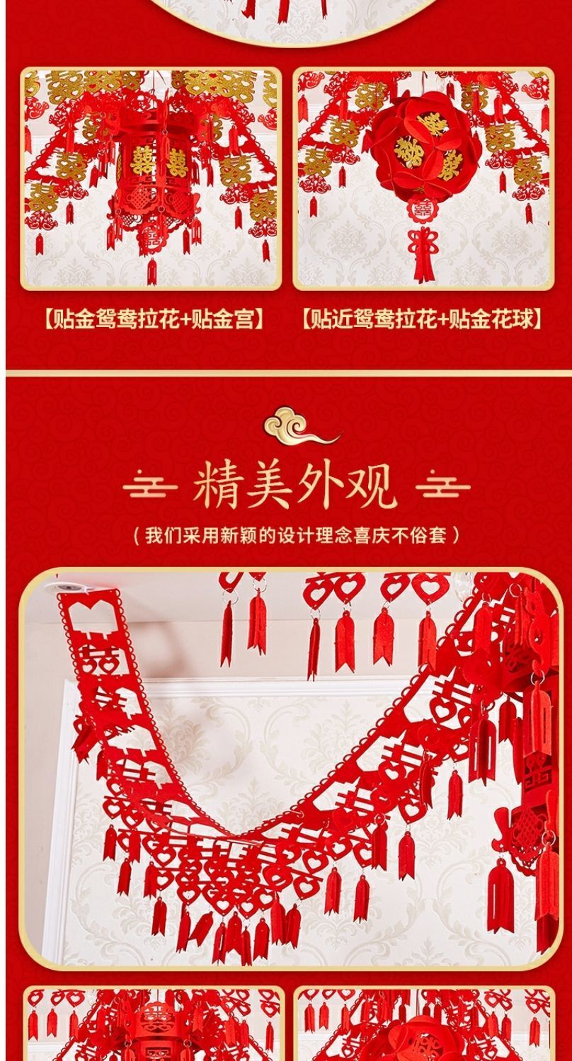 婚庆用品婚房顶客厅房间装饰拉花创意新房婚礼布置套装婚庆大喜字