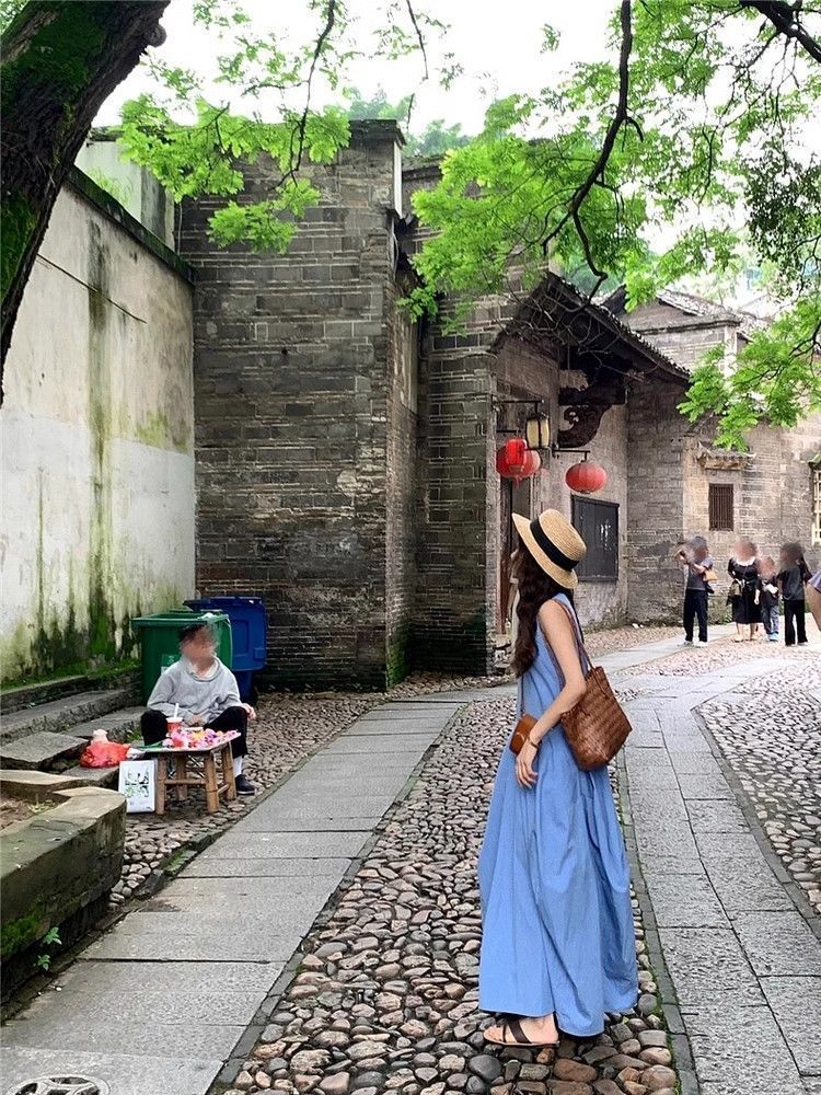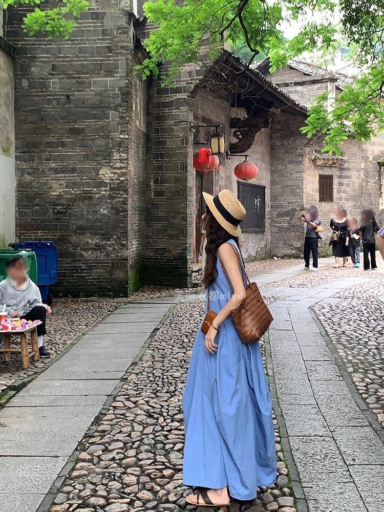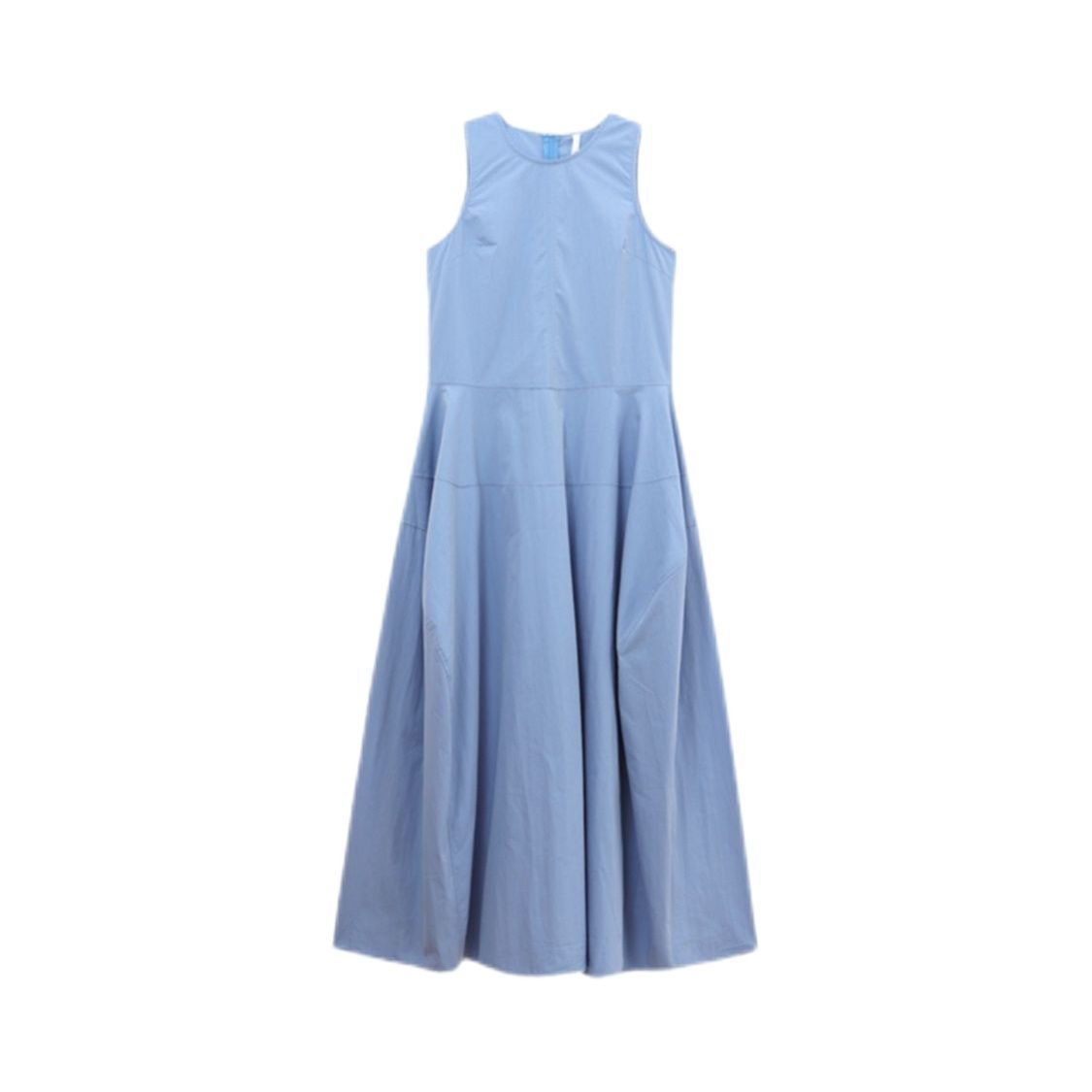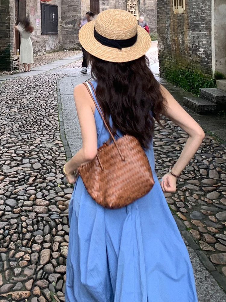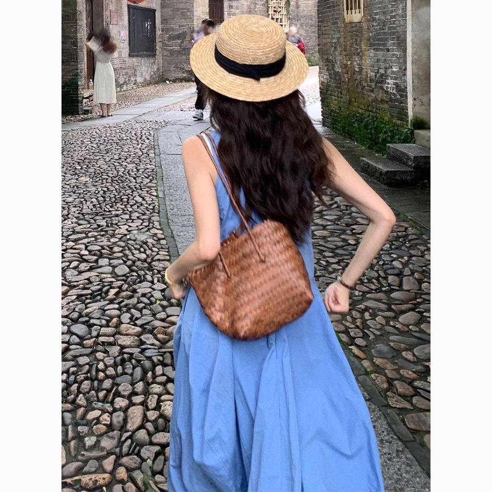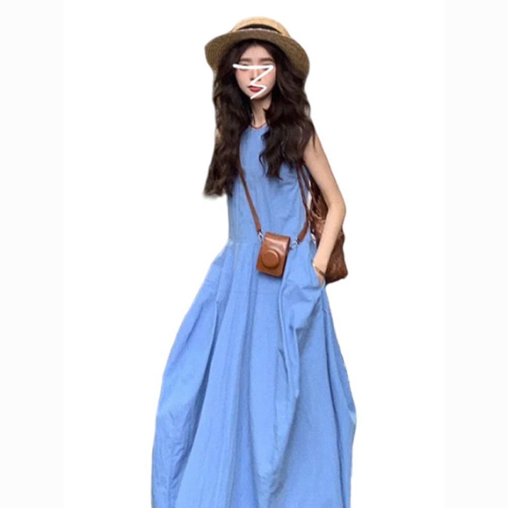 超好看小众大码法式气质蓝色连衣裙女夏宽松显瘦度假风无袖背心裙