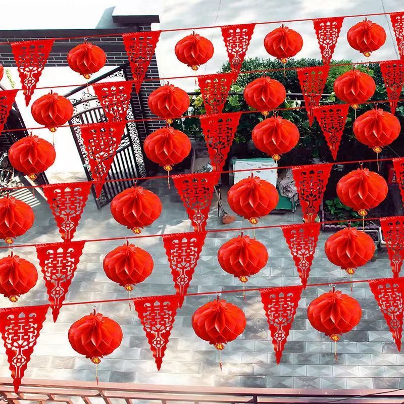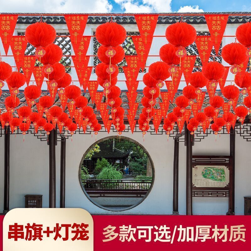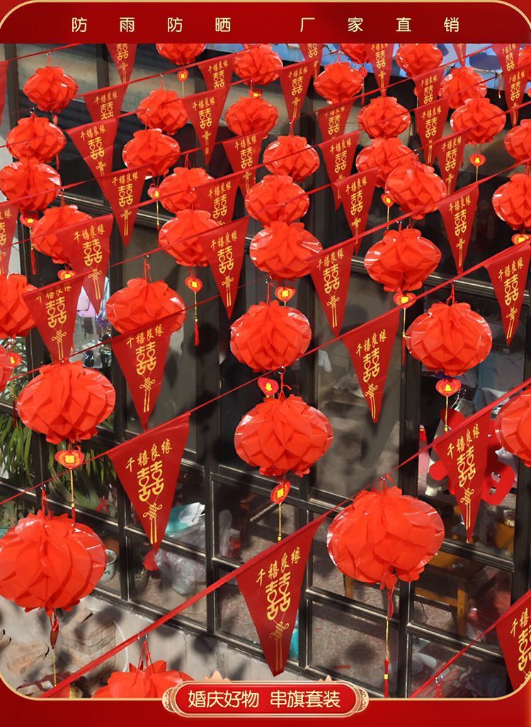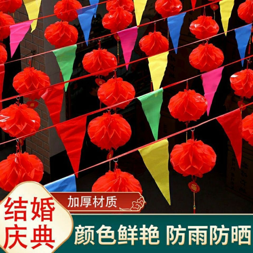 院子装饰彩旗三角旗灯笼小吊旗婚庆串旗结婚彩旗用品春节喜字拉花