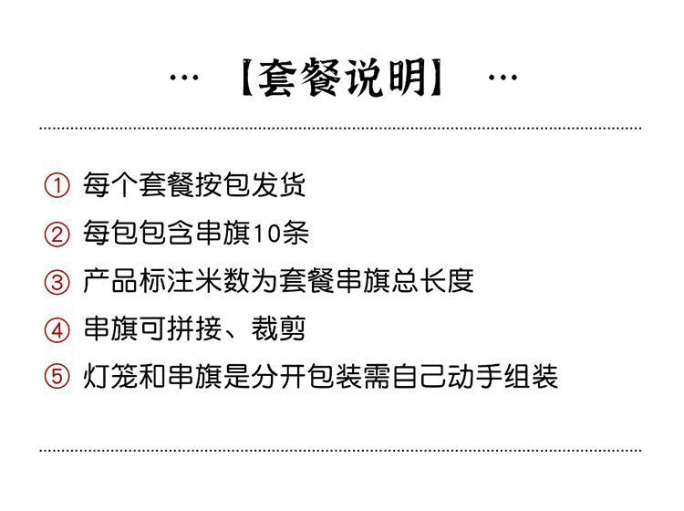 | 90米【加厚镂空喜旗】+50个大灯笼 | USD $3.6 | 999999 piece available |